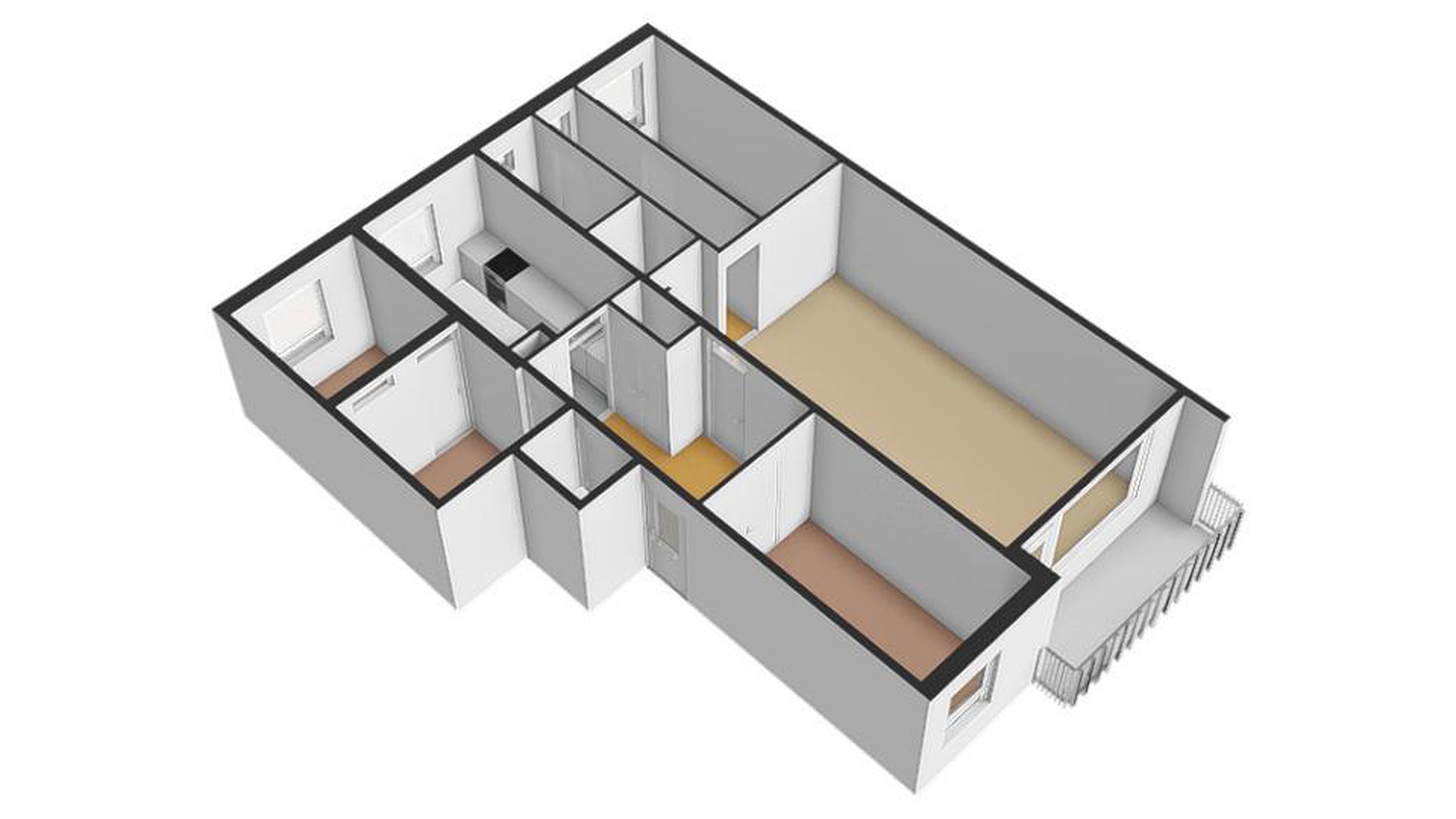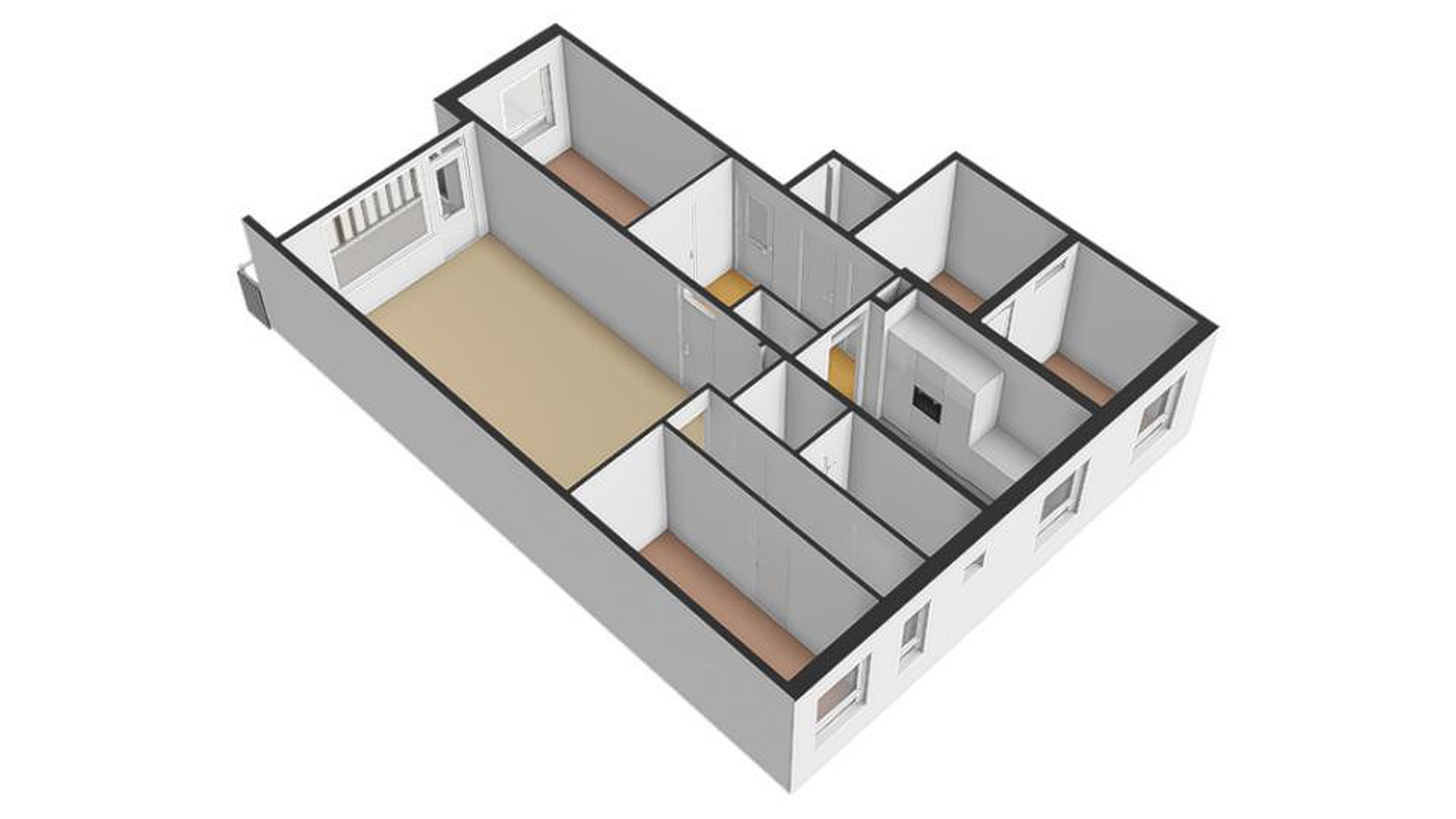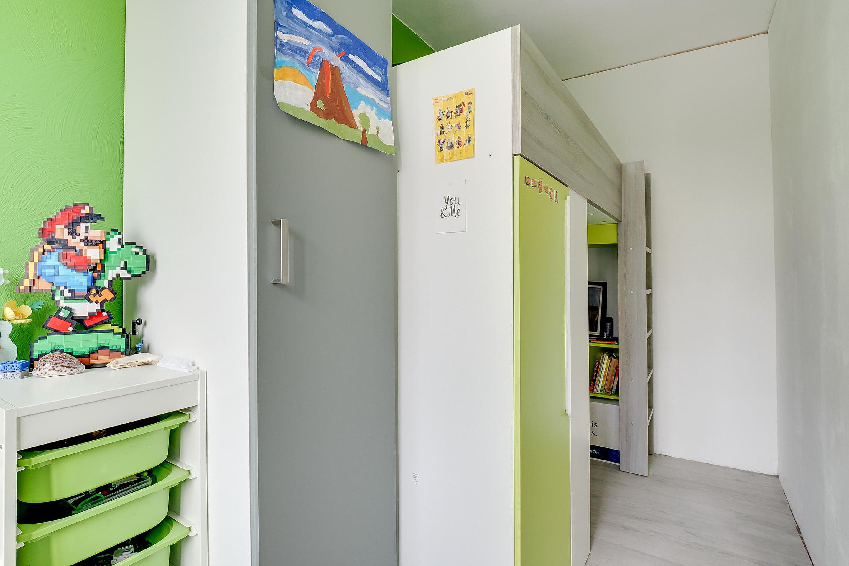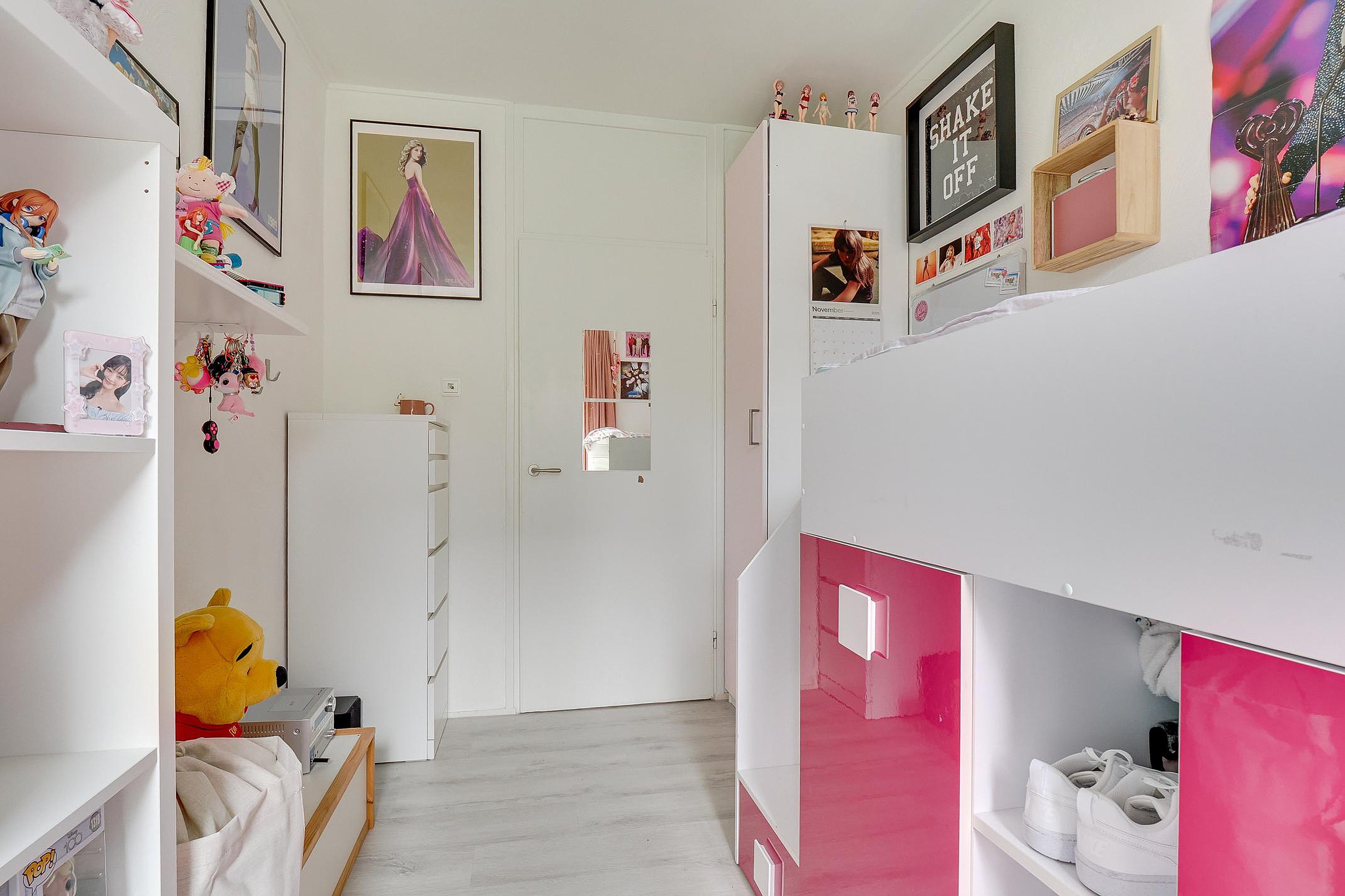 Het appartement beschikt verder over in totaal vier slaapkamers, waarvan er één is opgedeeld in twee kleinere kamers. Perfect voor een gezin, thuiswerkplek of logeerkamer. Daarnaast zijn er een mooi afgewerkte badkamer, een separaat toilet en twee vaste bergkasten aanwezig. De indeling zorgt overal voor een praktische en efficiënte benutting van de ruimte.