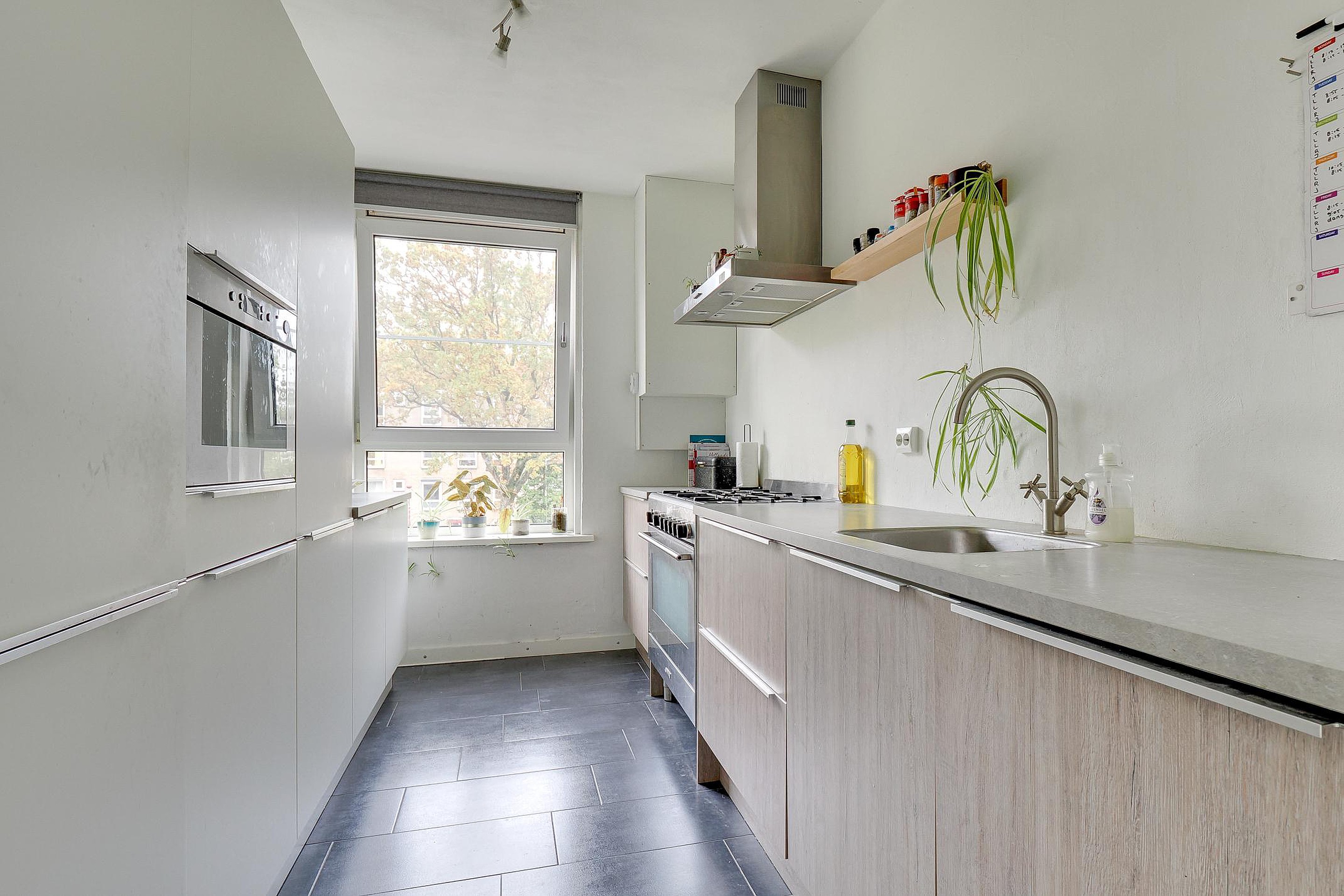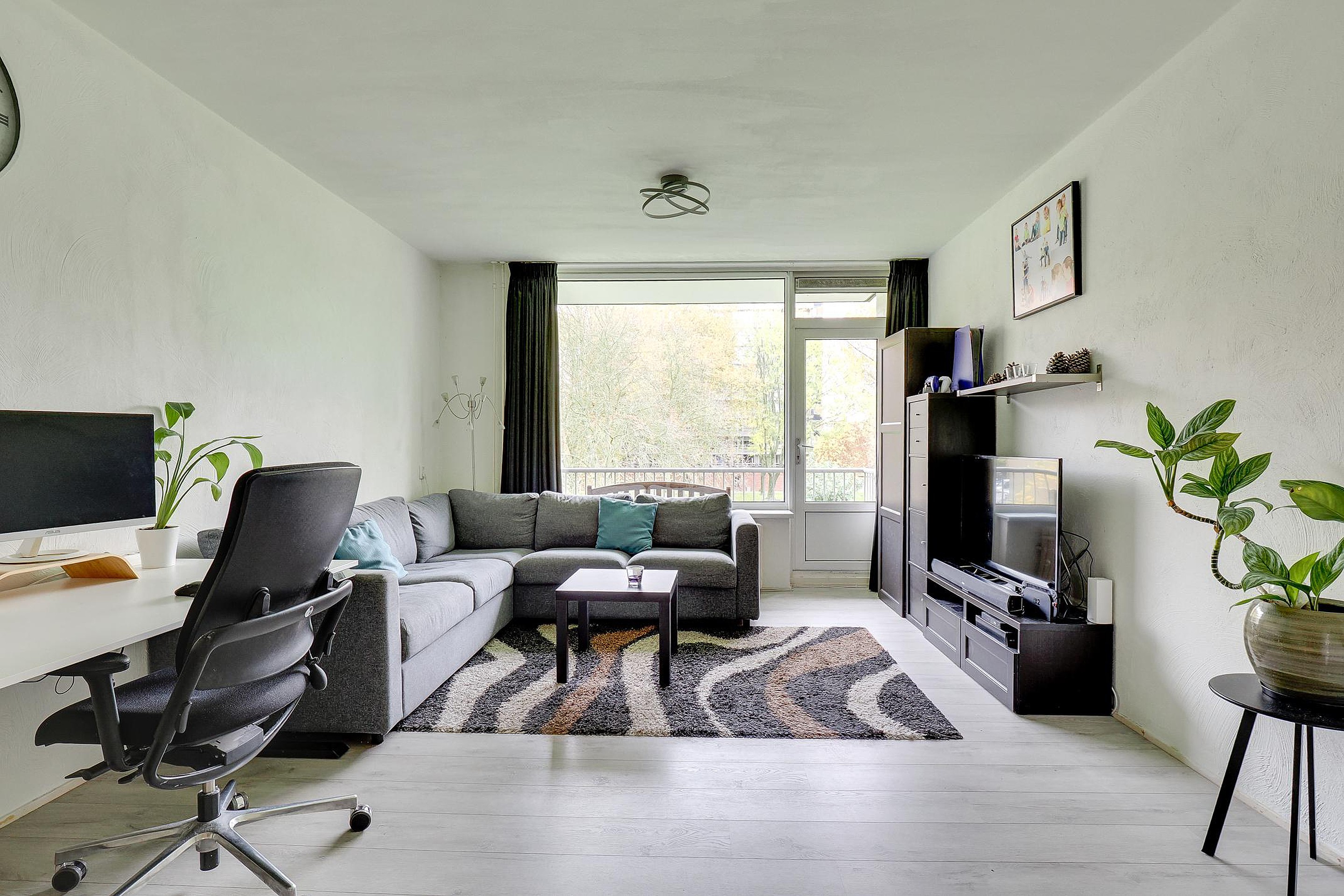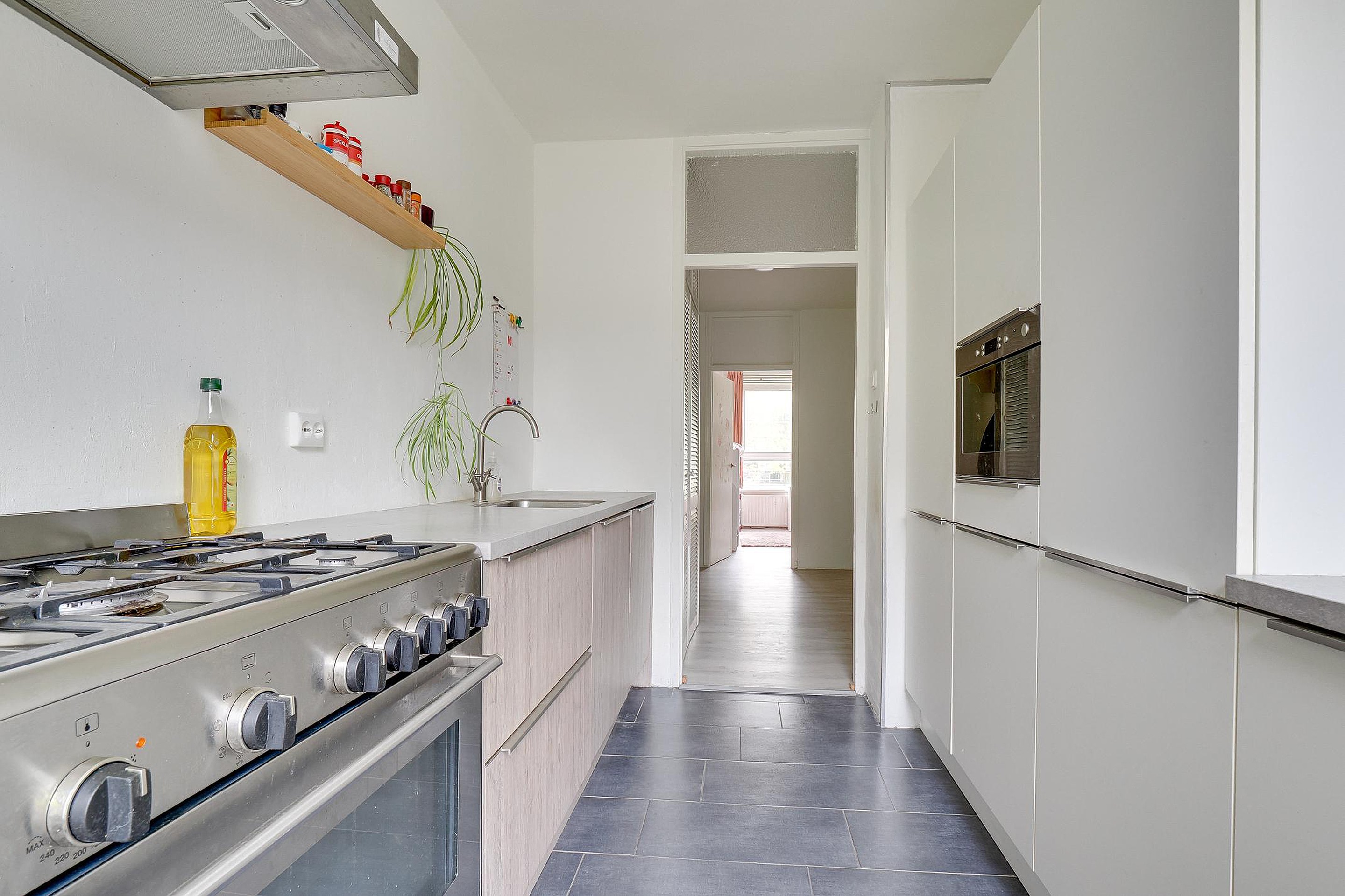 Bij binnenkomst word je verwelkomd door een lichte hal die alle vertrekken met elkaar verbindt. De ruime woonkamer biedt veel natuurlijk licht en voldoende plek voor zowel een comfortabele zithoek als een eethoek. Vanuit de woonkamer aan de westzijde gelegen heb je toegang tot het balkon< ideaal voor een ochtendkoffie of om aan het einde van de dag te ontspannen. De separate keuken is modern en functioneel ingericht en voorzien van alle benodigde inbouw apparatuur en beschikt over veel kastruimte.