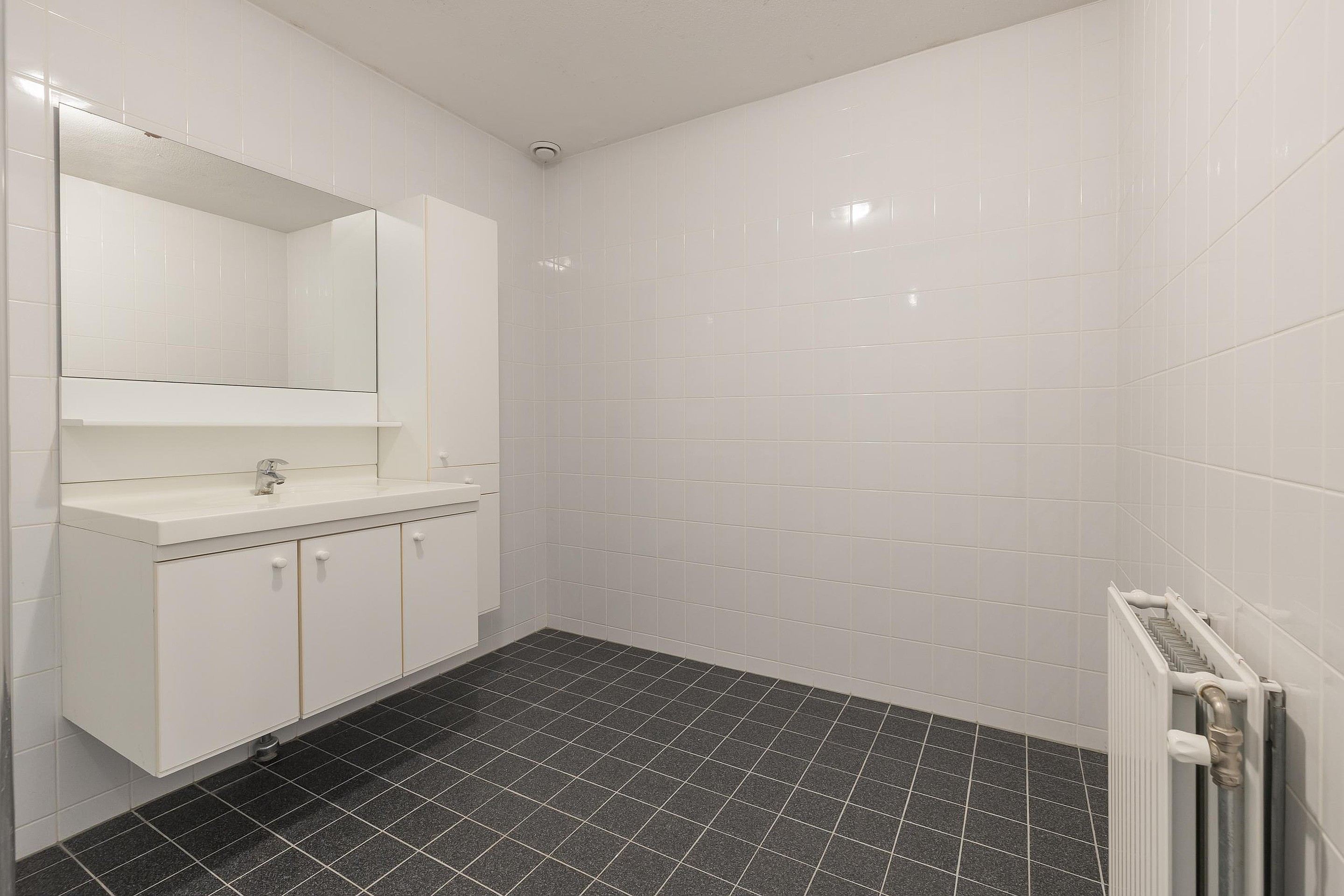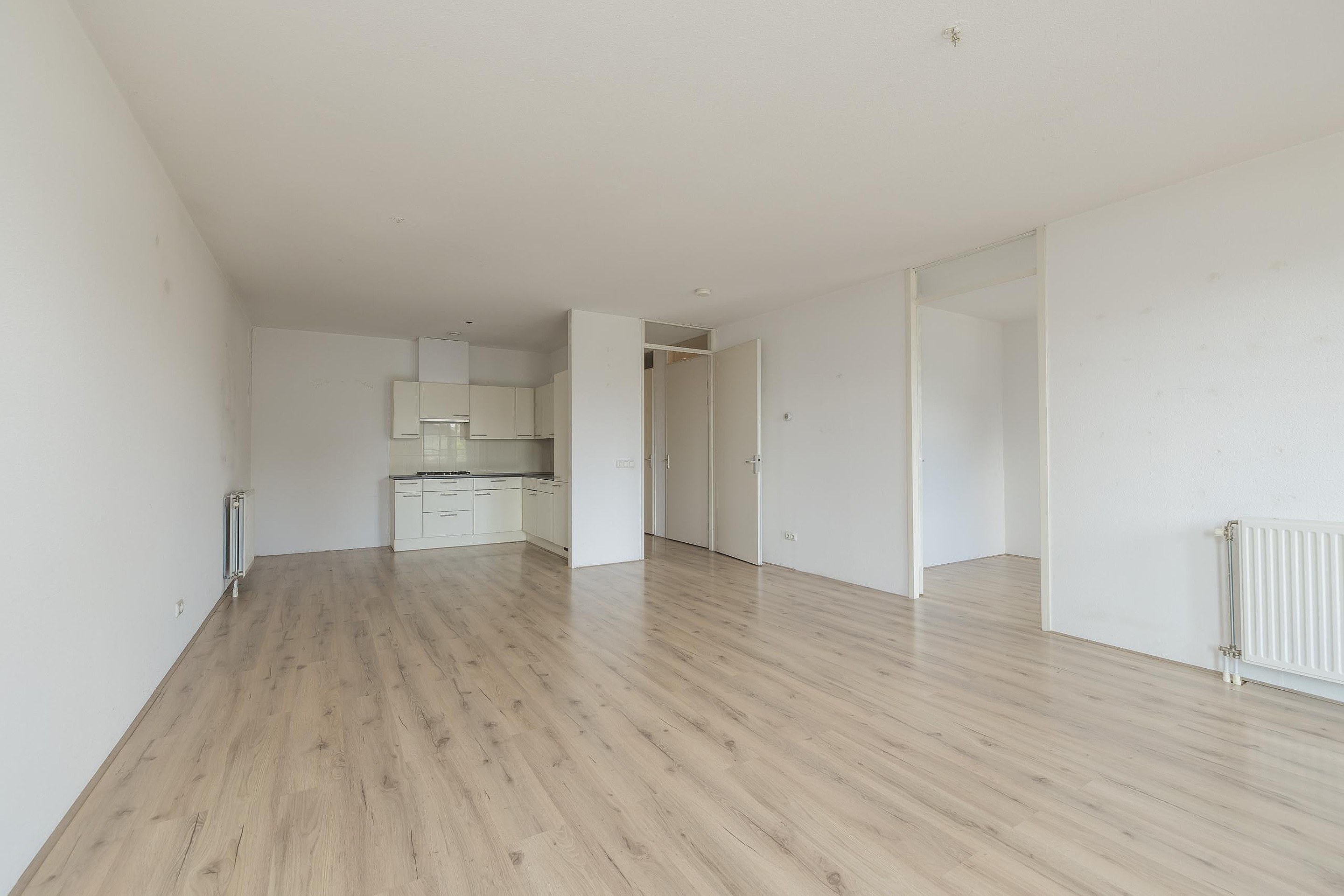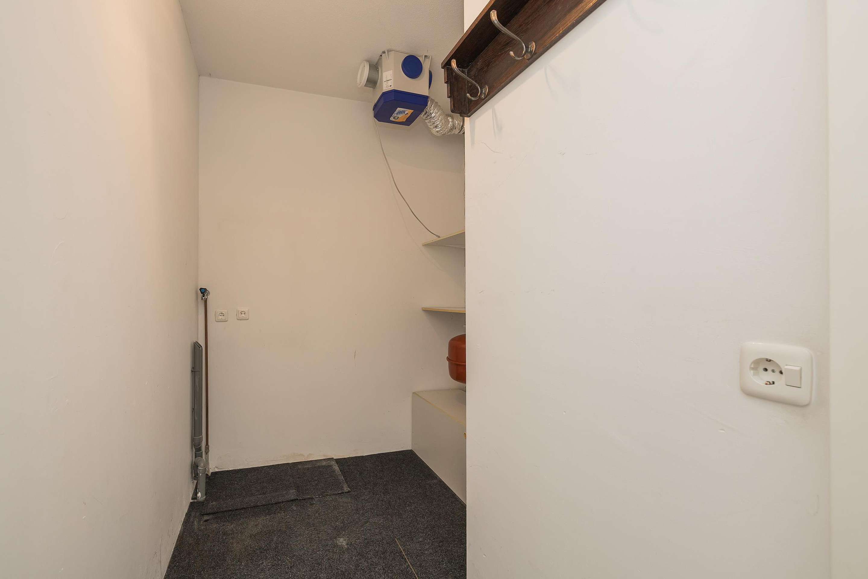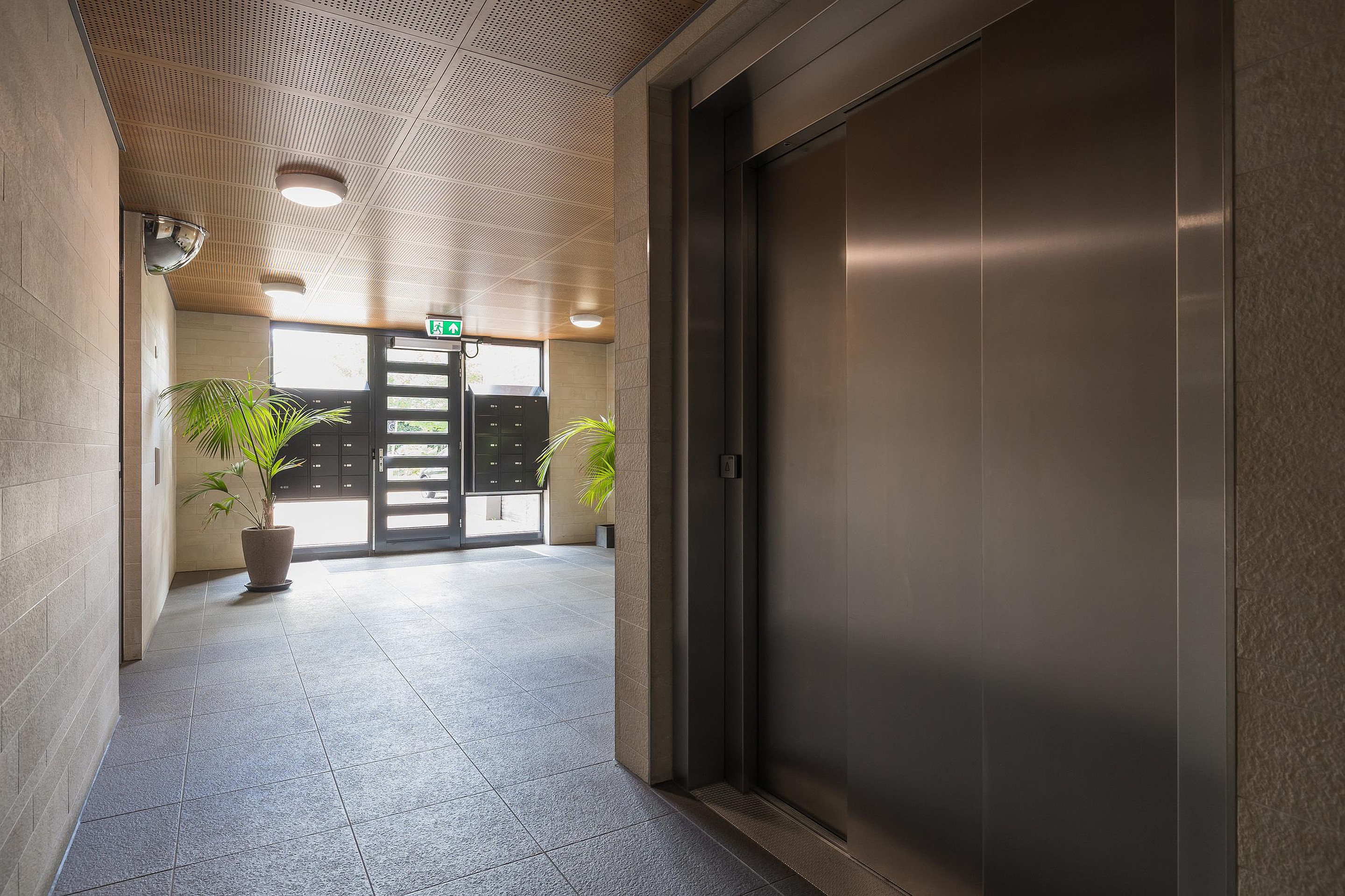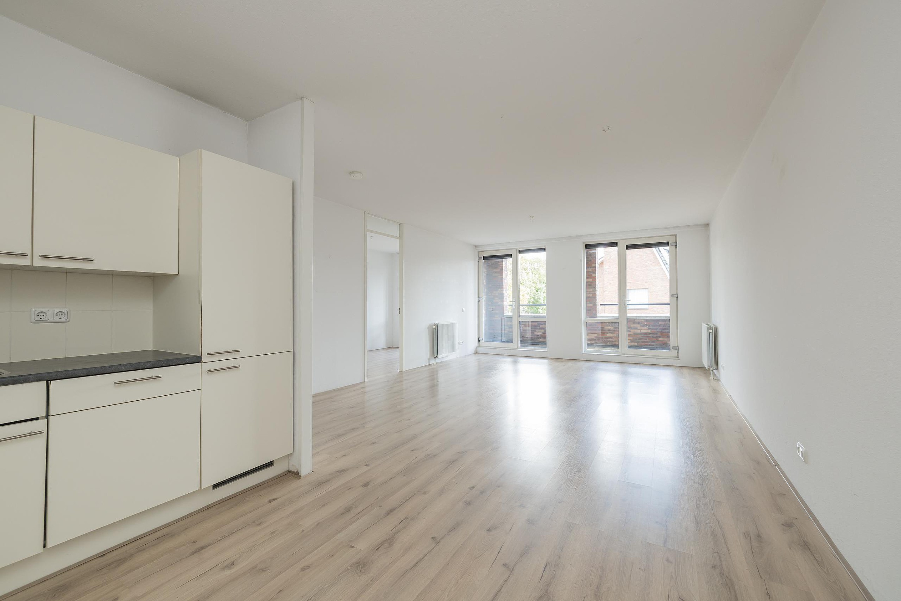 Centrale entree, een ruime hal met de lift en de het trappenhuis, via de hal is de parkeergarage te bereiken en de berging. Het appartement ligt op de eerste woonlaag en is zowel met de lift als het trappenhuis te bereiken. Entree appartement, een ruime hal met de meterkast, de intercom en de toiletruimte met een wandcloset en een fonteitje. De eerste slaapkamer is gelegen aan de galerijzijde en is voorzien van een suskast. Via de hal is de inpandige berging bereikbaar met de opstelling van de CV-ketel (Intergas), het expansievat en de ventilatie-unit. De badkamer is aangenaam ruim en voorzien van een douchcabine en een wastafelmeubel. De woonkamer heeft een lichte laminaatvloer en een open keuken met diverse inbouwapparatuur zoals een 4-pits gaskookplaat, een vaatwasser, een spoelbak, een koelkast en een vriezer. Via de woonkamer is het balkon te bereiken. De tweede volwaardige slaapkamer is gelegen aan de voorzijde.