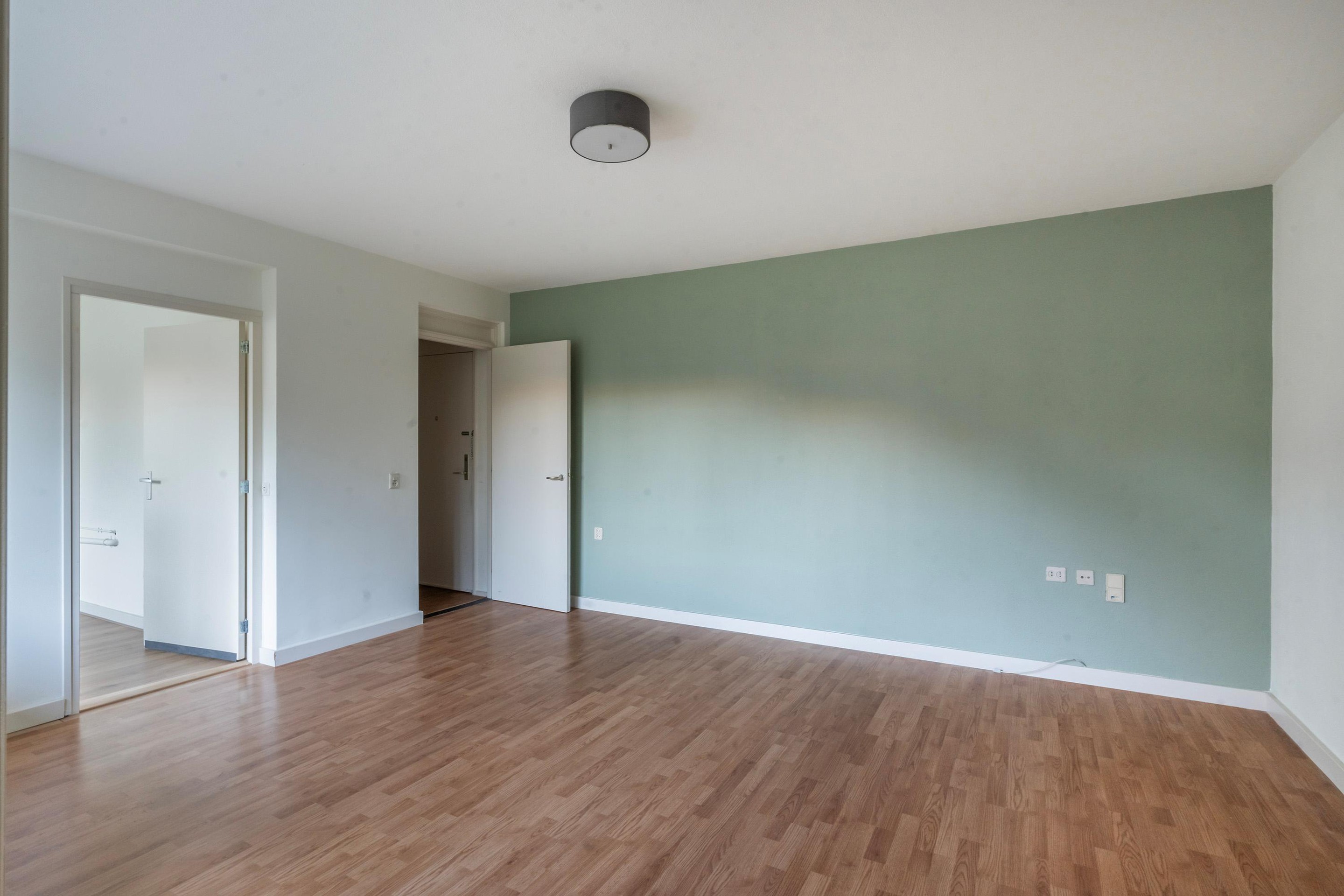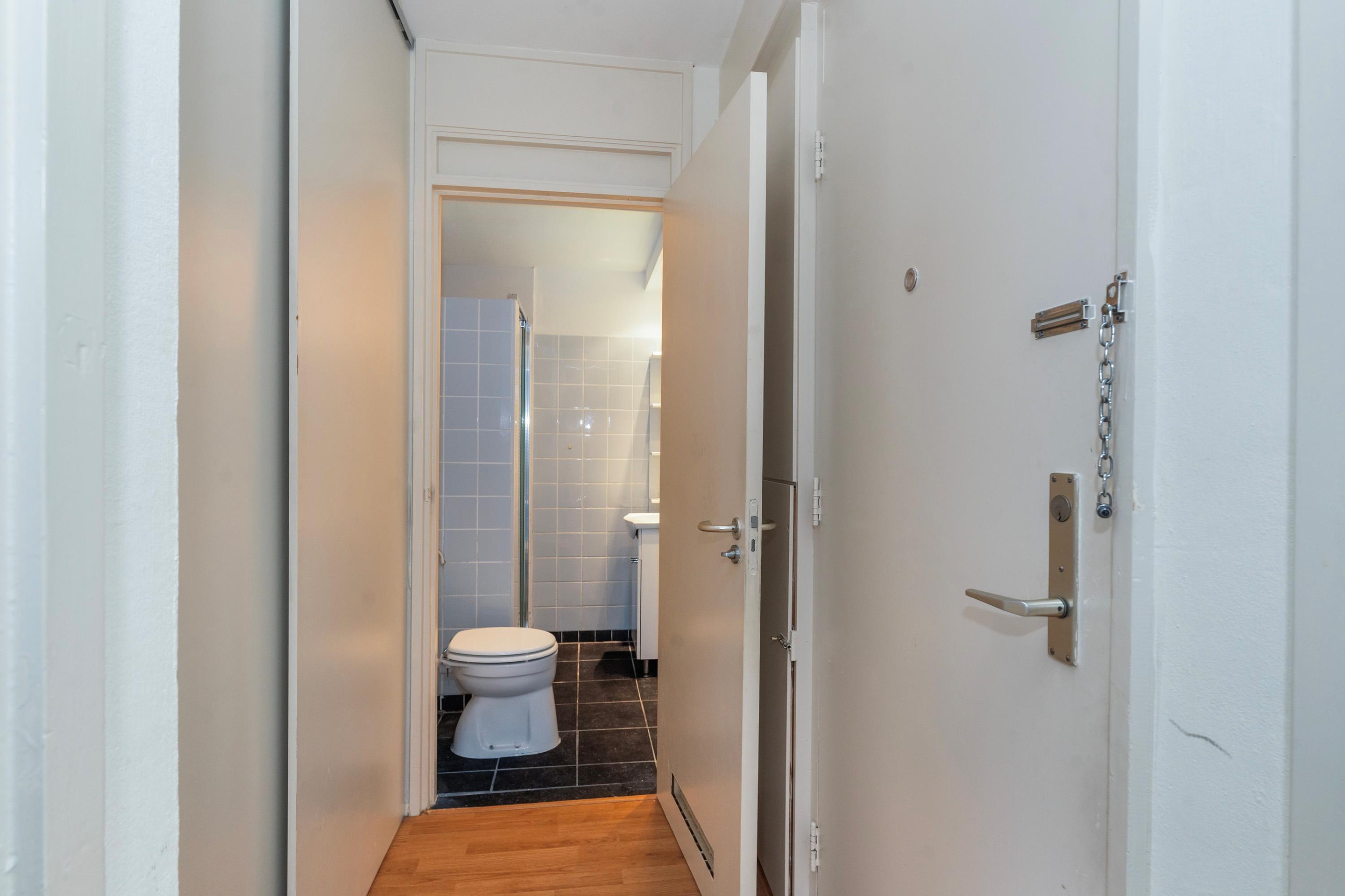 Het appartement is in de hal, woonkamer en de slaapkamer voorzien van een zeer nette laminaatvloer.
