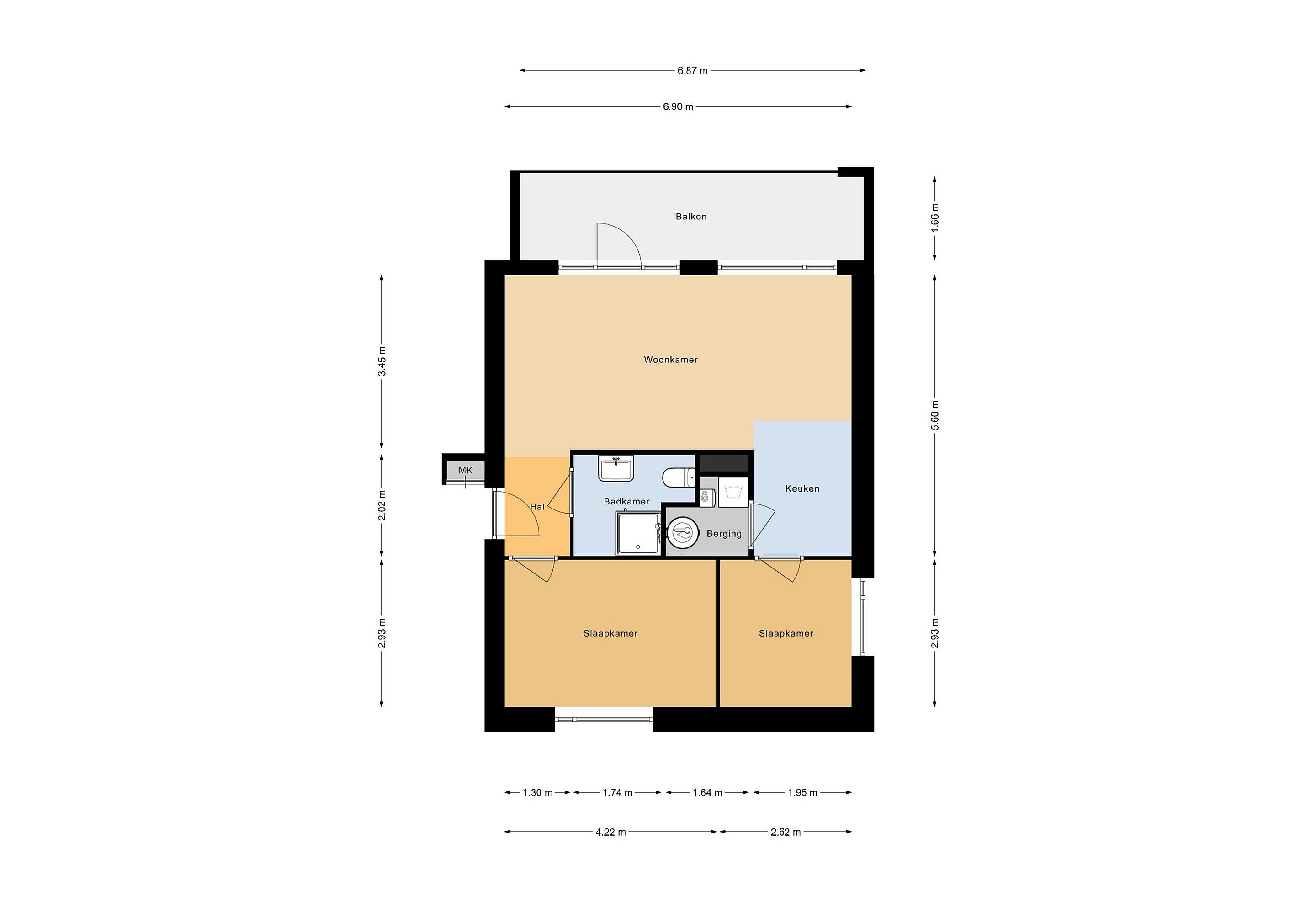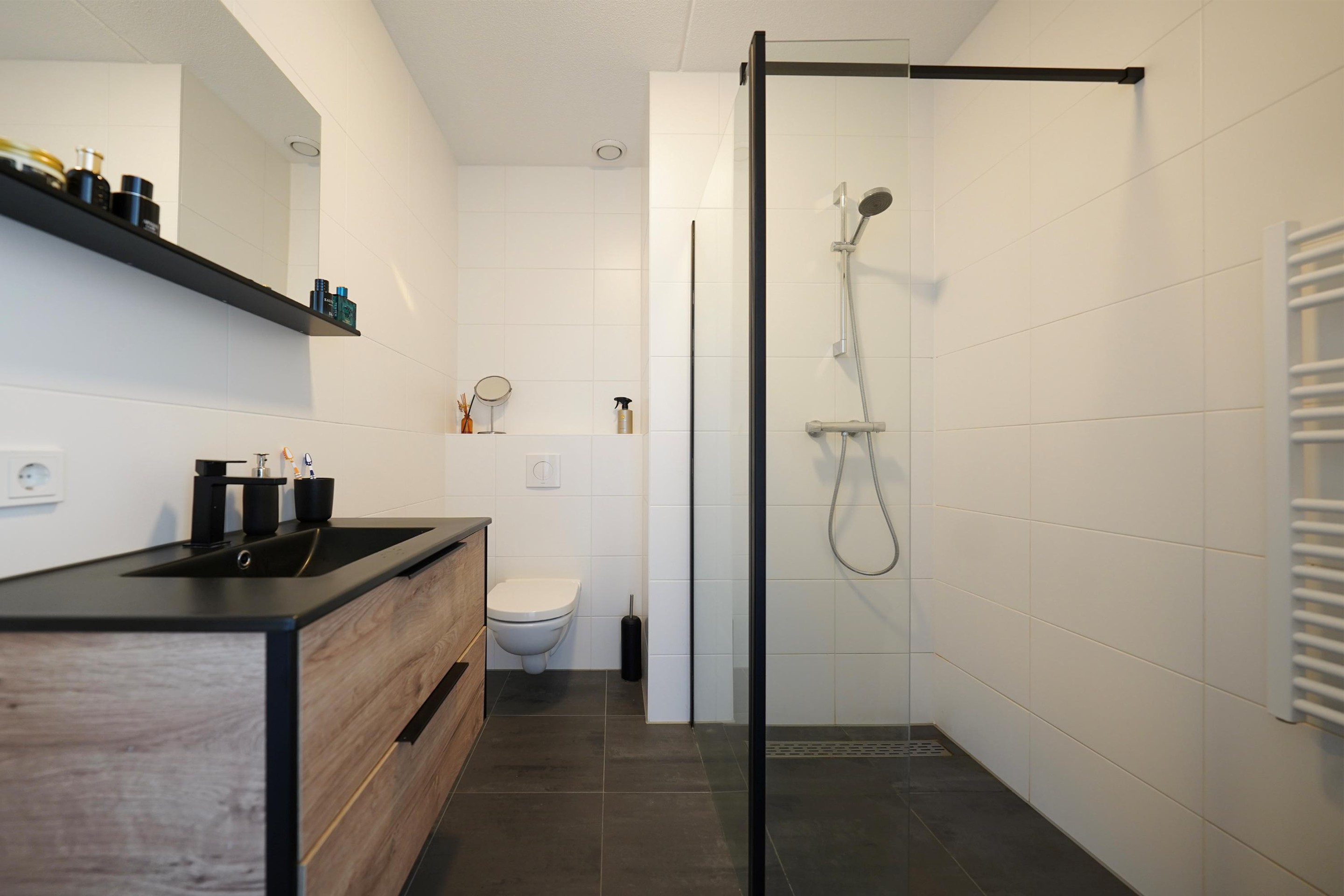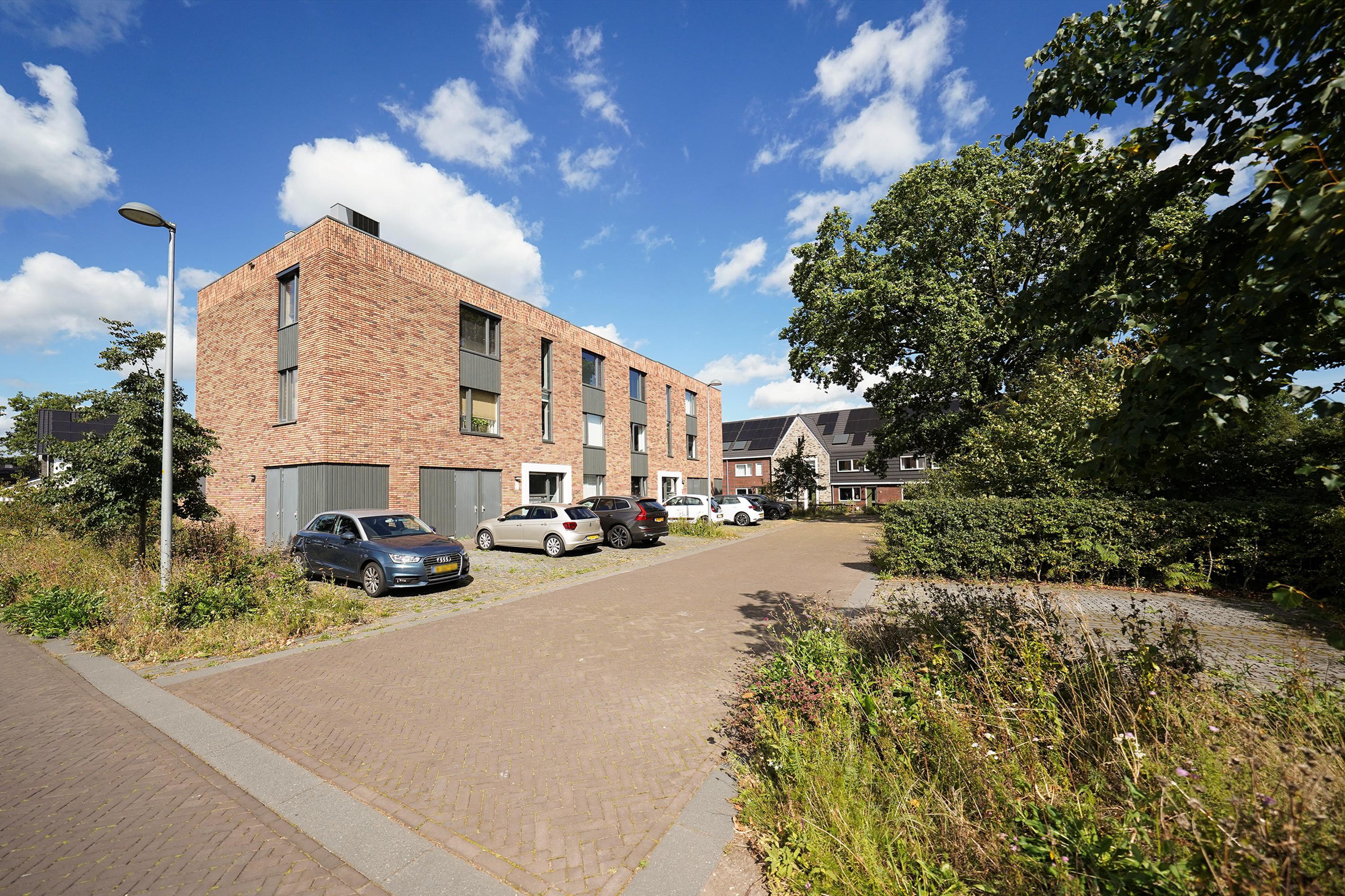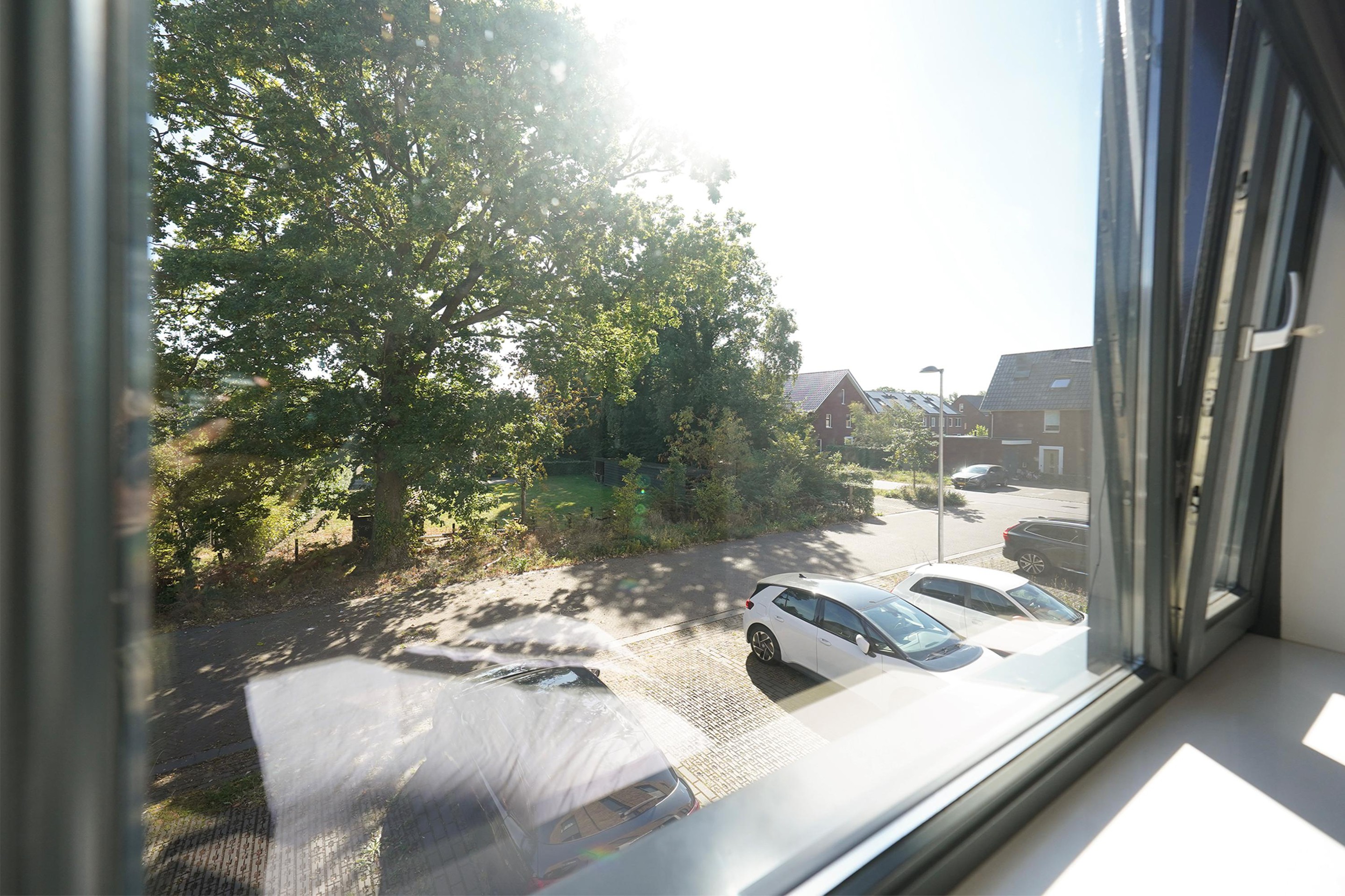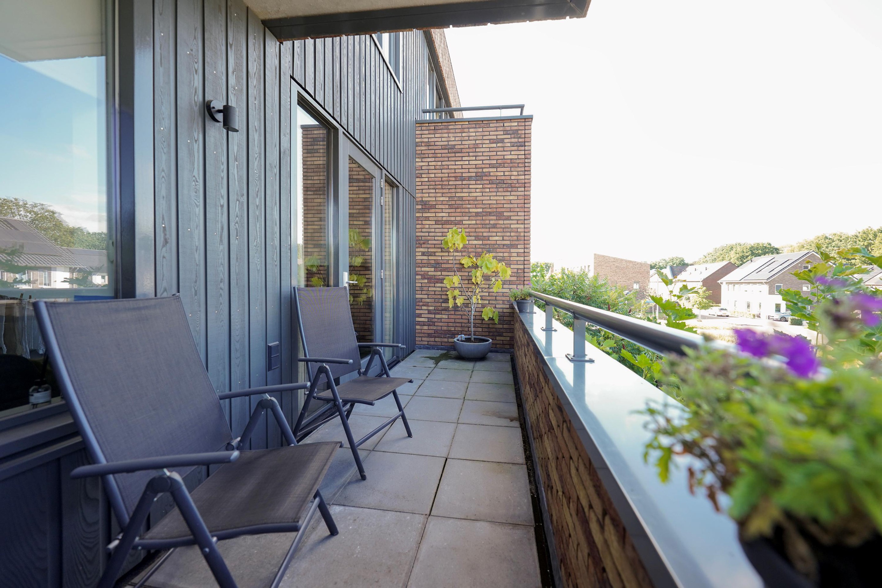 Allereerst kan je gemakkelijk parkeren direct bij je appartement. Het betreft een kleinschalig gebouw met totaal 12 appartementen en 2 hoofdingangen. De ruime eigen berging is direct bij de entree op de begane grond gelegen. Het gebouw is voorzien van een mooie, warme steen en de entrees zijn prachtig omlijst met een witte, gestuukte rand. Via een open trap komen we op de eerste verdieping waar 2 woningen te bereiken zijn, waaronder dit mooie appartement. Het appartement is op een vrije hoek gelegen. Bij binnenkomst is er ruimte voor de jassen en de schoenen en we lopen dan ook direct de gezellige woonkamer in. Mij valt de grote raampartijen op die lekker veel daglicht binnen laten. Er is een fijne zithoek mogelijk waar zich ook de deur bevindt naar het ruime balkon van ruim 11 m2. Dit balkon heeft een gemetselde rand waardoor je dus ook lekker veel privacy in je appartement hebt. Op dit balkon kun je heerlijk genieten van de middag en de avondzon en kijk je vrij over de wijk. Weer binnen loop ik door naar de mooie, strakke hoekkeuken met verrassend veel opbergruimte. Deze keuken is voorzien van alle inbouwapparatuur en bij deze keuken is er ruimte voor een fijne eettafel. Vanuit de keuken is er toegang naar een afgesloten bergruimte waar ook de wasmachine en droger zich bevinden. Ook is hier ruimte voor wat extra voorraad en/of de stofzuiger etc. De 2 slaapkamers zijn aan de achterzijde gelegen aan de oostzijde. De grote slaapkamer is voorzien van een ruime inbouwkast. De tweede slaapkamer heeft een fijn groot raam aan de korte zijde van het gebouw. Het grote voordeel van een hoekappartement! De badkamer is bij de entree gelegen en deze is voorzien van een ruime inloopdouche met glazen wand, een mooi wastafelmeubel met een chique zwarte wastafel en kraan en het vrijhangende toilet. De gehele woning is voorzien van een strakke pvc-vloer met vloerwarming. Ideaal! Alle wanden zijn glad gestuct en gesausd. De verwarming wordt geregeld middels een warmtepomp en er zijn zonnepanelen aanwezig op het platte dak van het gebouw.