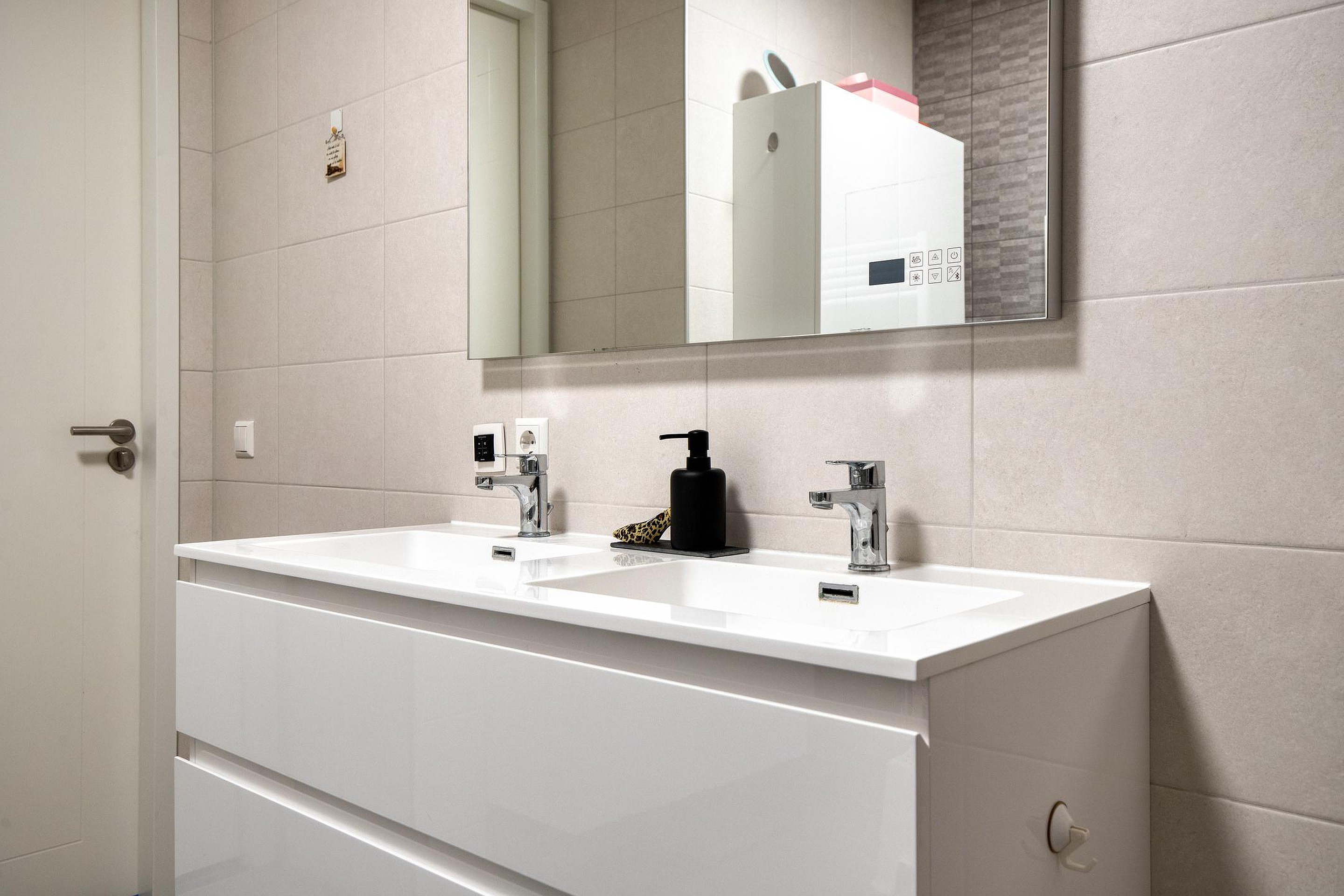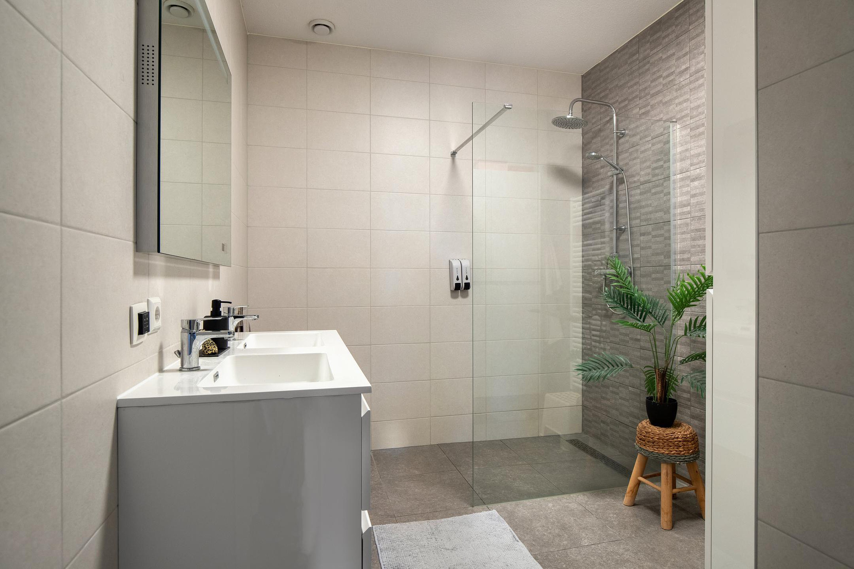 Het appartement beschikt over maar liefst drie slaapkamers. Ideaal voor gezinnen, thuiswerkers of wie gewoon extra ruimte wil. De kamers zijn praktisch ingedeeld en bieden voldoende mogelijkheden voor slapen, werken of hobby’s. De badkamer is modern en strak afgewerkt met een ruime inloopdouche en dubbel wastafelmeubel. Alles is fris, eigentijds en netjes onderhouden—precies wat je verwacht bij een instapklaar appartement.