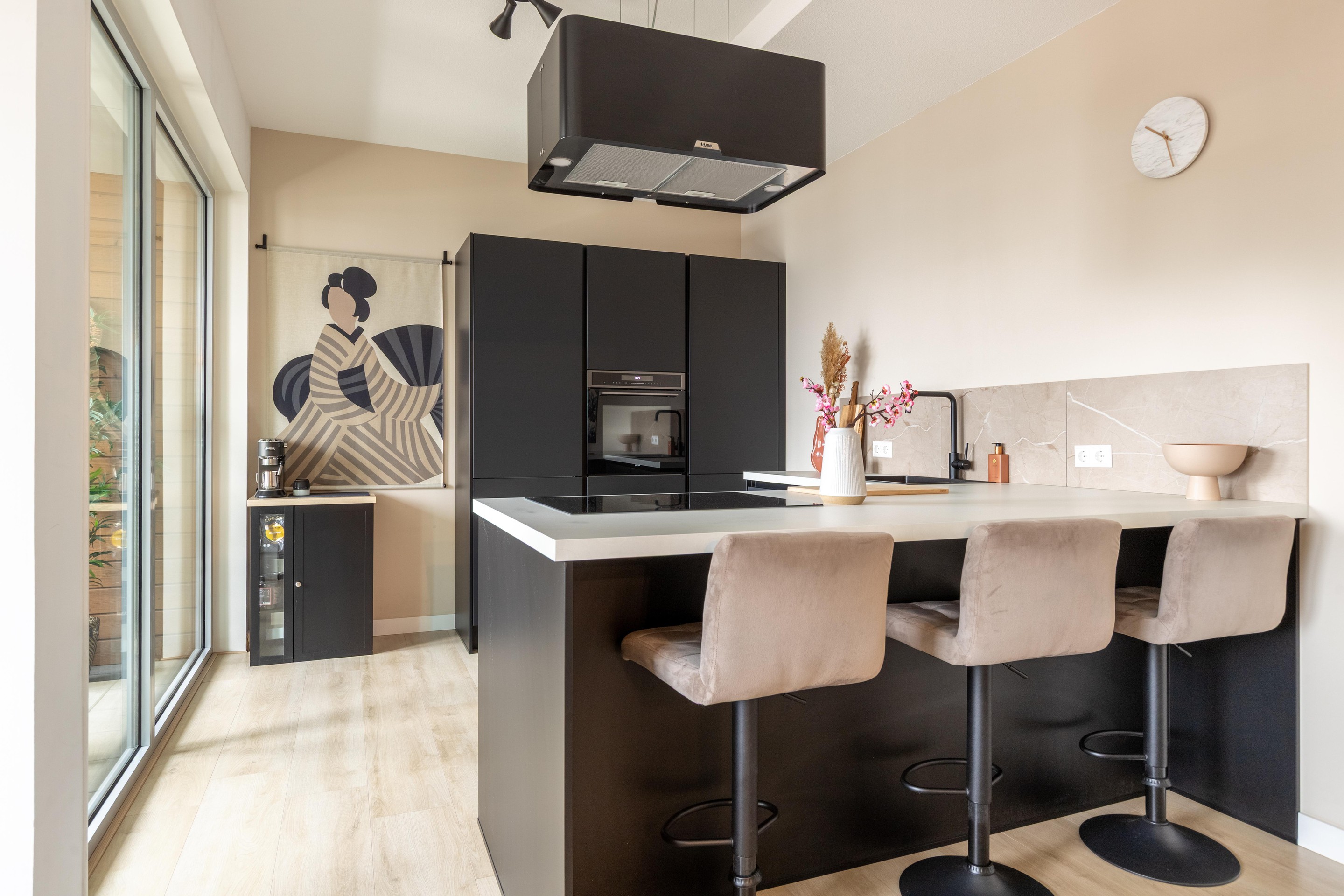 - Moderne open keuken (2022) met diverse inbouwapparatuur.