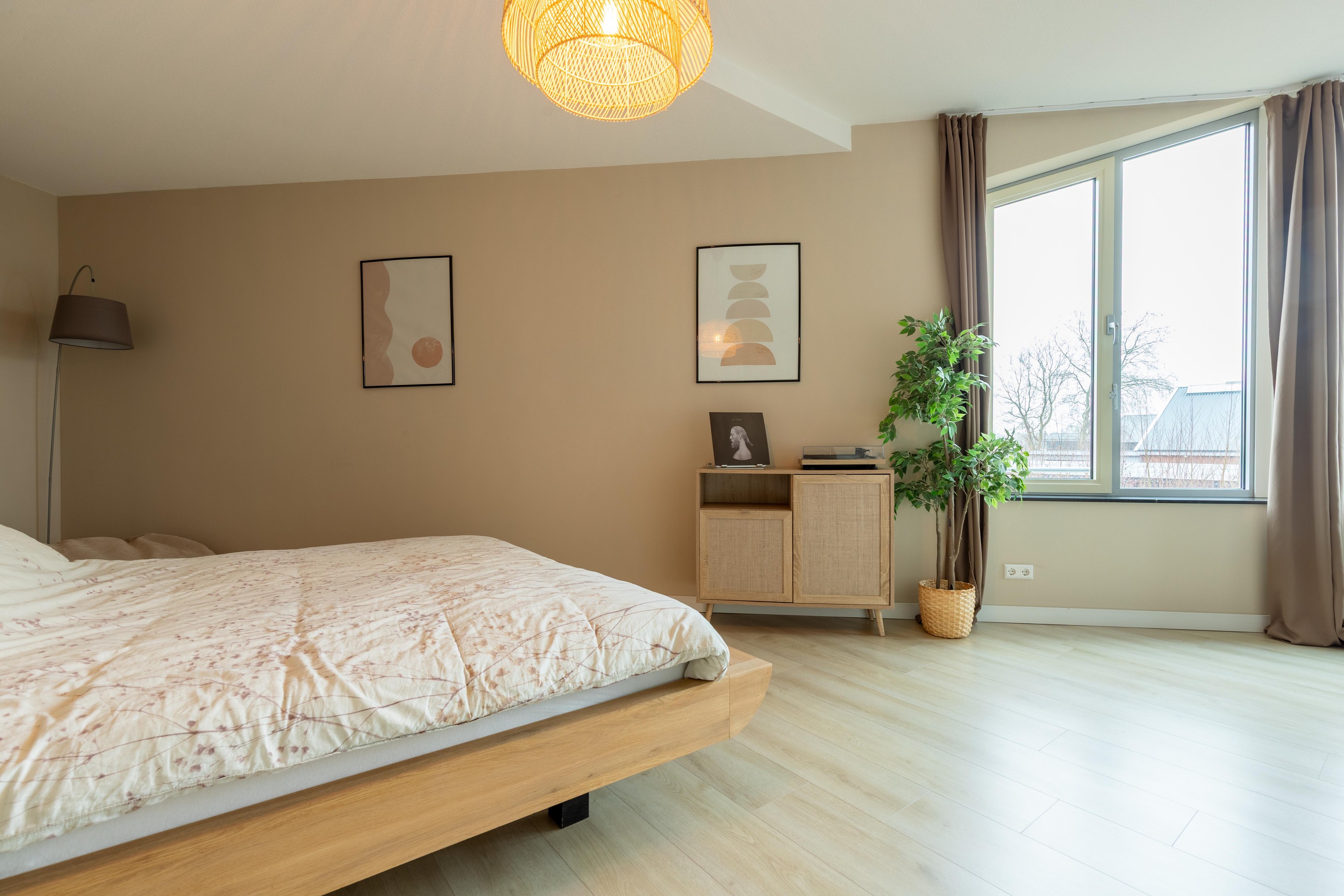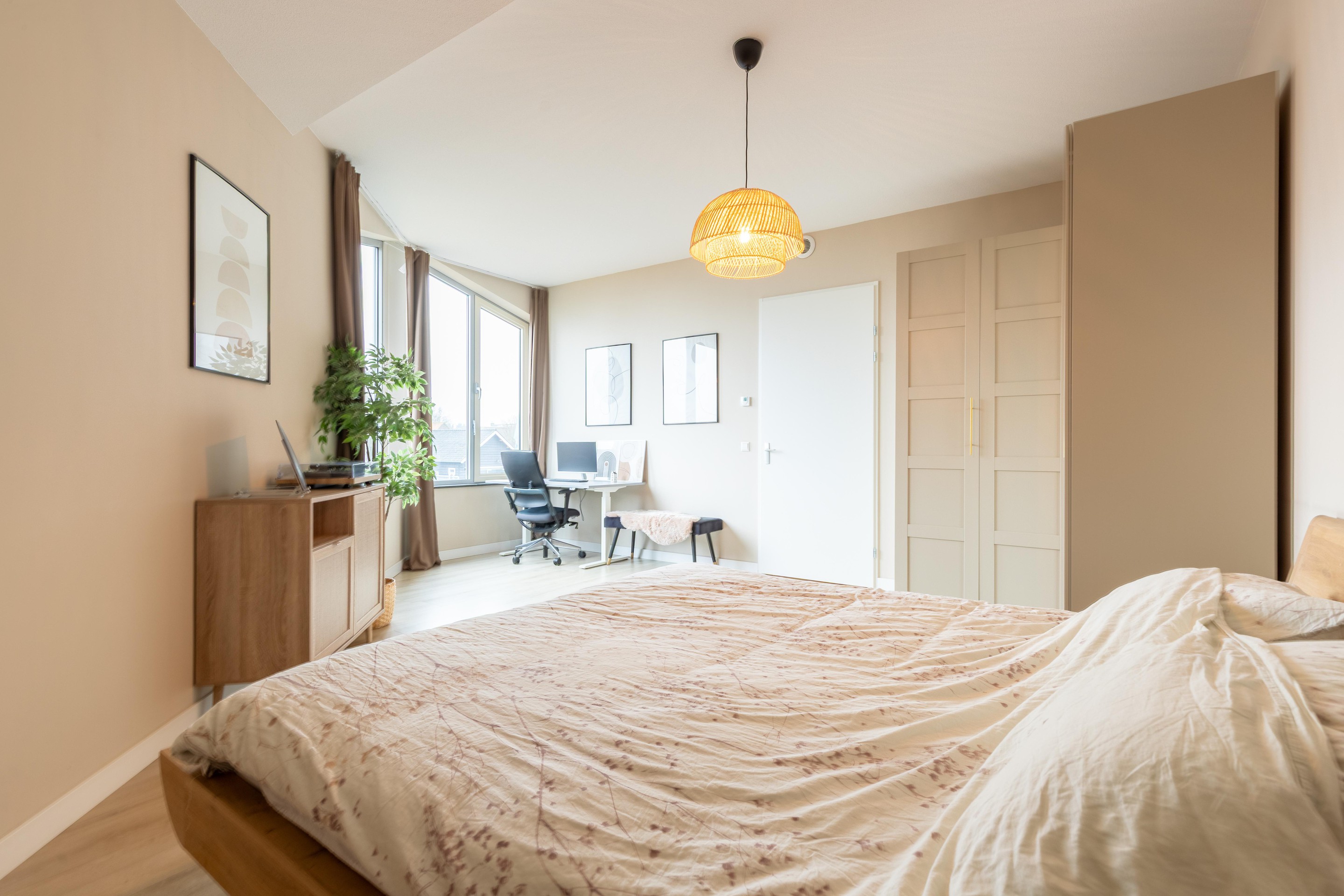 De hoofdslaapkamer is gesitueerd aan de achterzijde van het appartement en biedt een schitterend vrij uitzicht over het groen richting de Brasem. Ook de tweede slaapkamer is vanuit de hal bereikbaar en uitstekend te gebruiken als logeerkamer, werkkamer of kinderkamer. De moderne badkamer, eveneens bereikbaar vanuit de hal, is uitgevoerd met een comfortabele inloopdouche, designradiator en een wastafelmeubel.