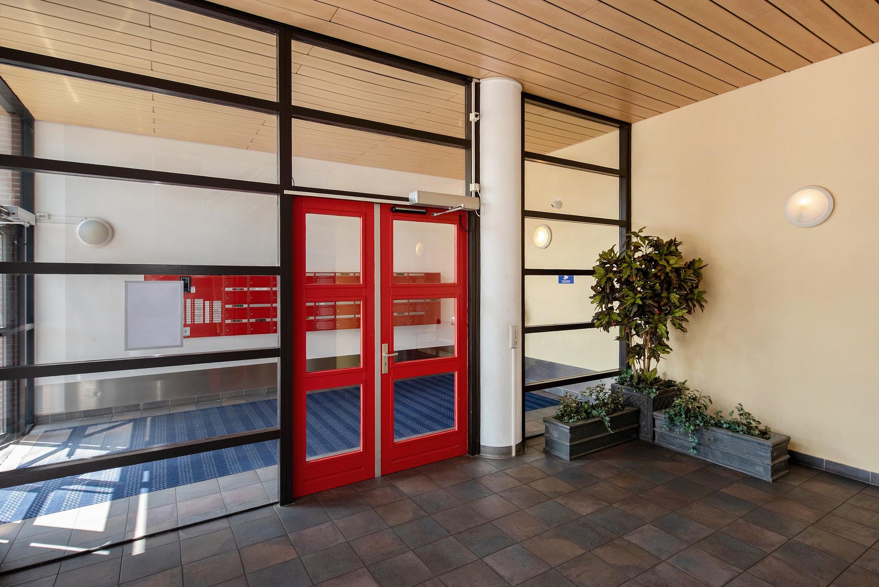Toegang naar centraal afgesloten hoofdentree met bellentableau met videofoon, camerabeveiliging, brievenbussen en elektrische deur. Vanuit entree toegang naar ruime en luxe ontvangsthal met een tweetal liften, het trappenhuis en toegang tot de (fietsen) berging.