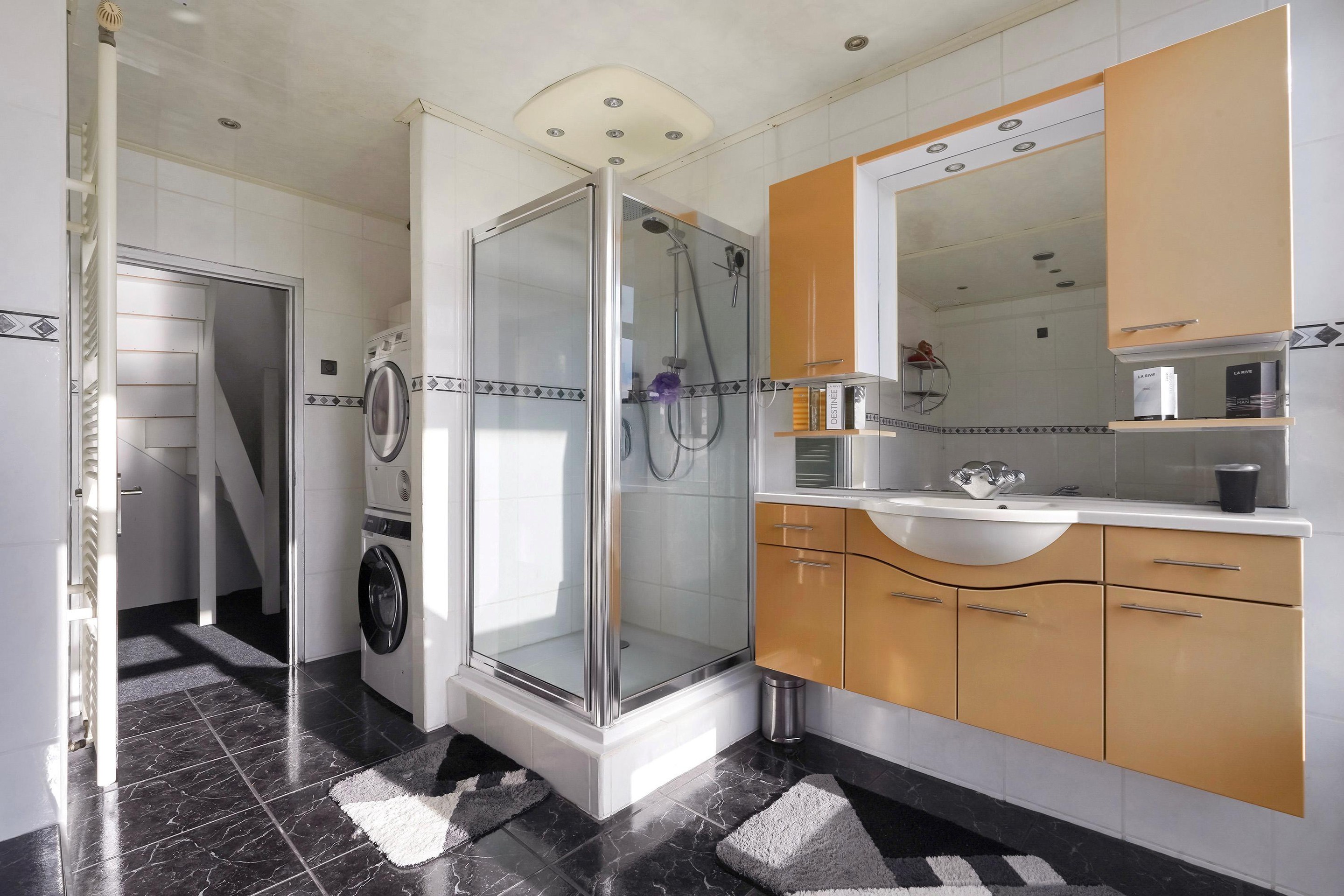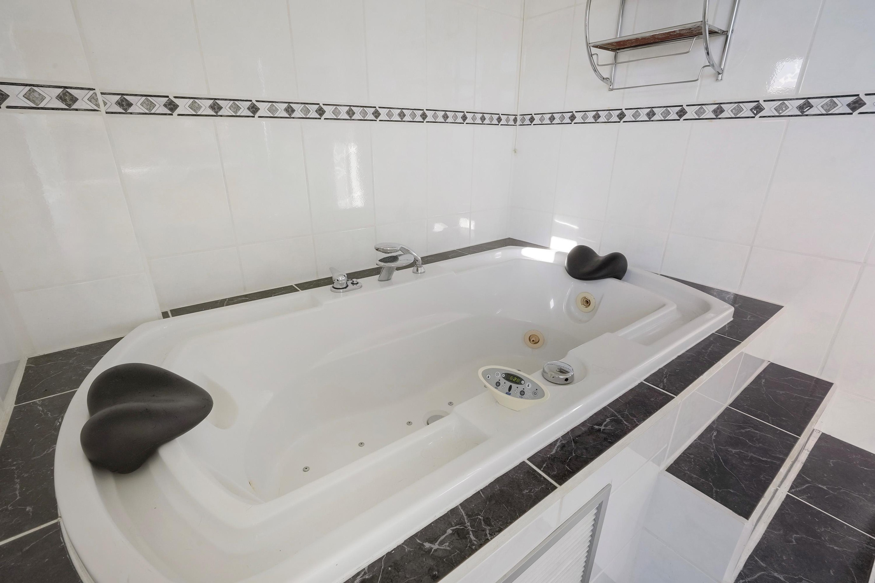 De badkamer is royaal opgezet en compleet uitgerust met een jacuzzi, aparte douche, wastafelmeubel en een opstelling voor wasmachine en droger. Het toilet is in 2021 vernieuwd en verkeert in nette staat.