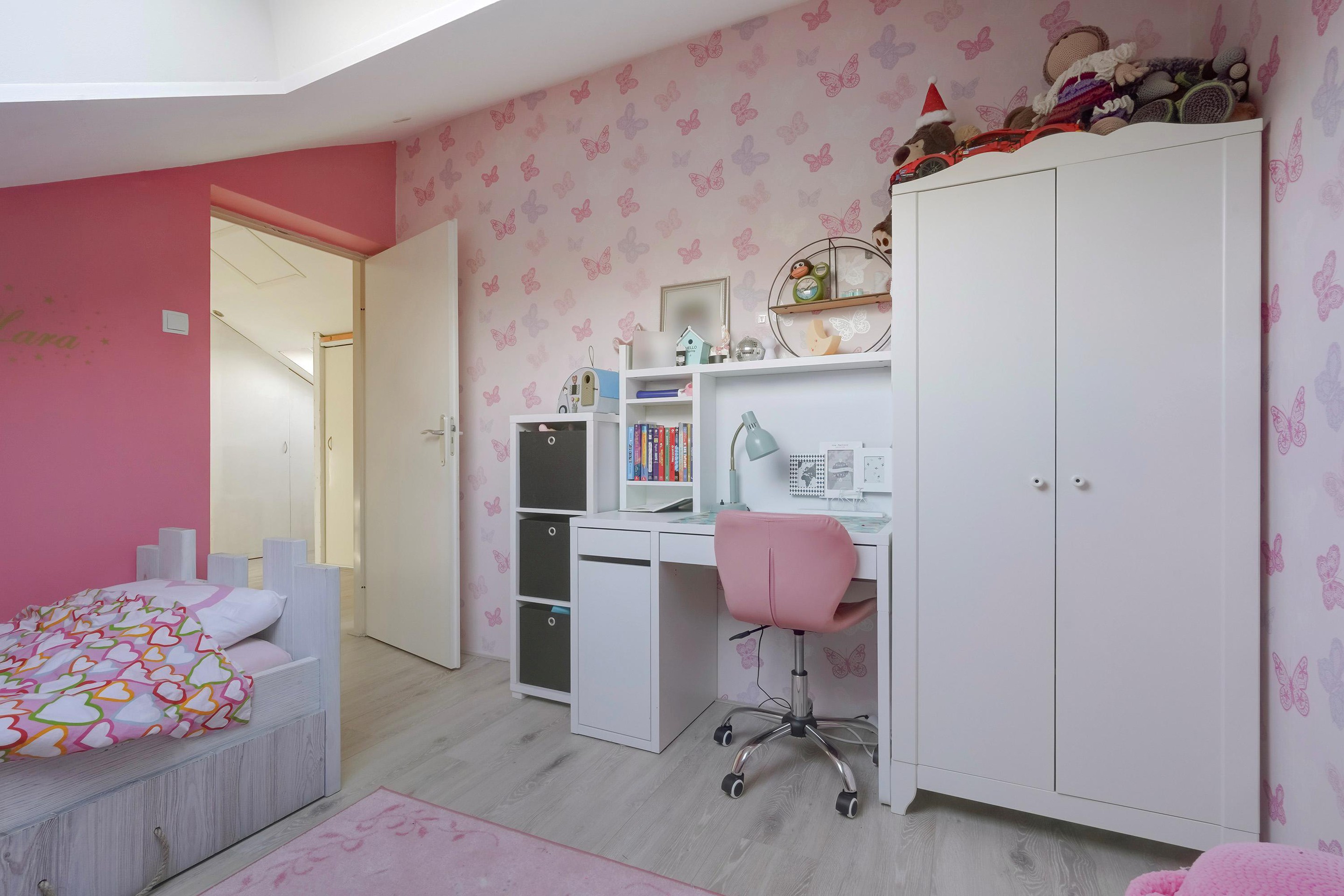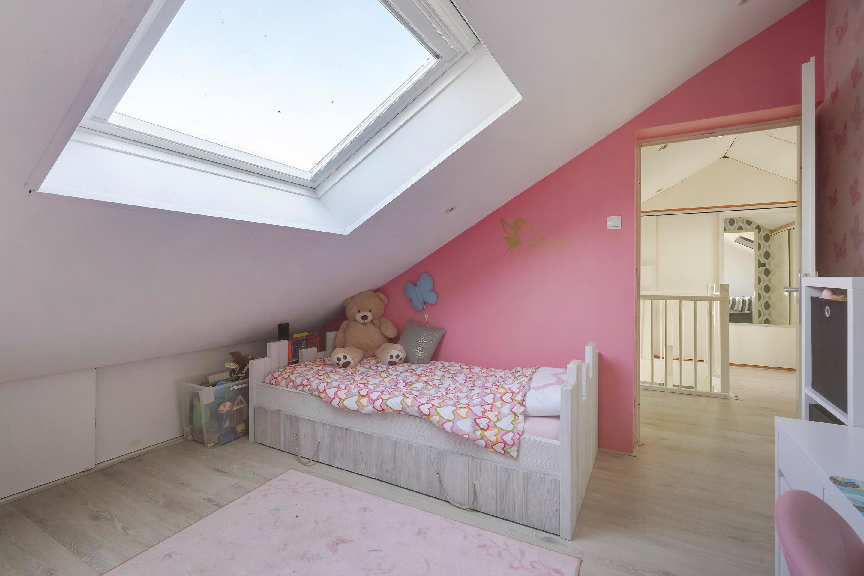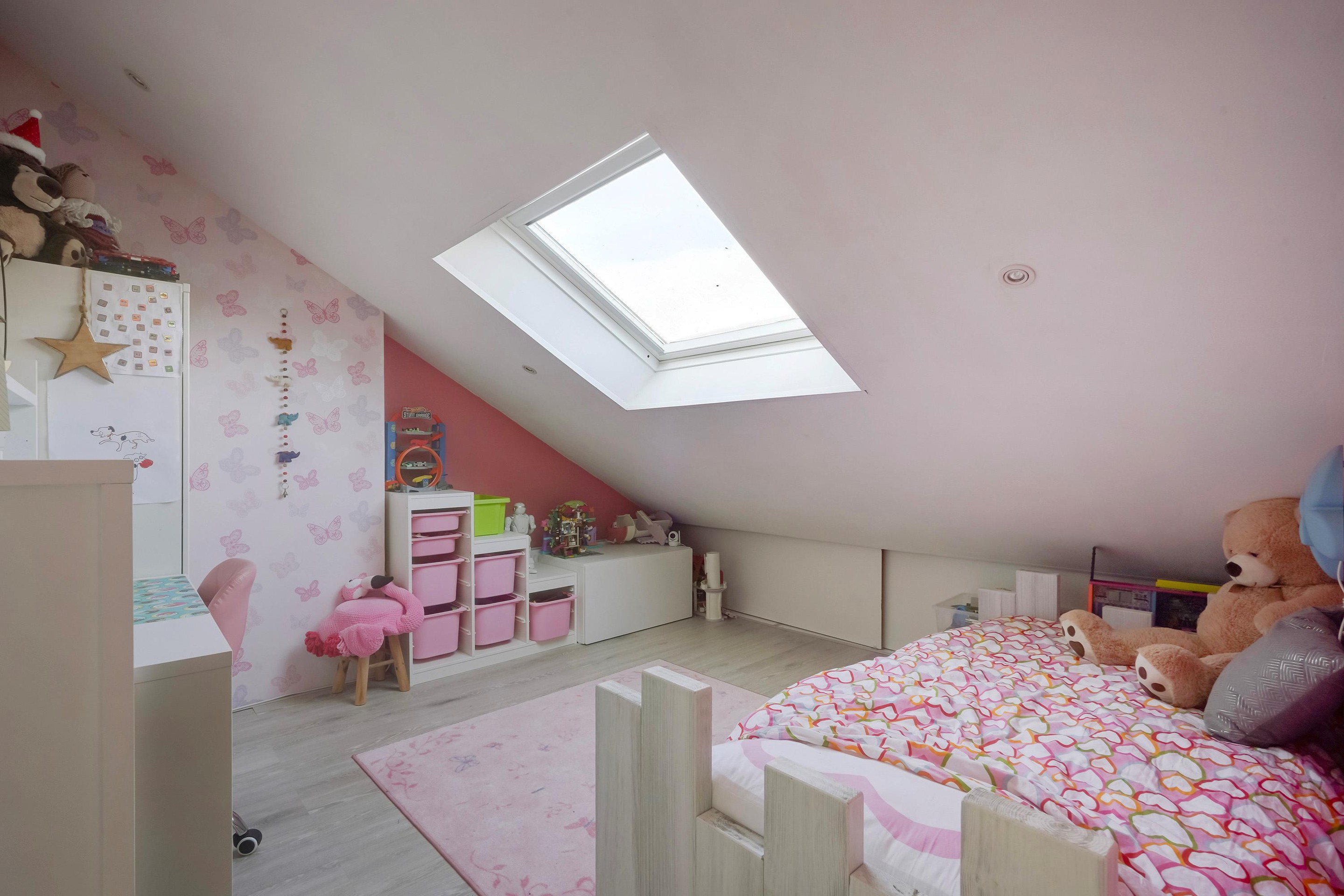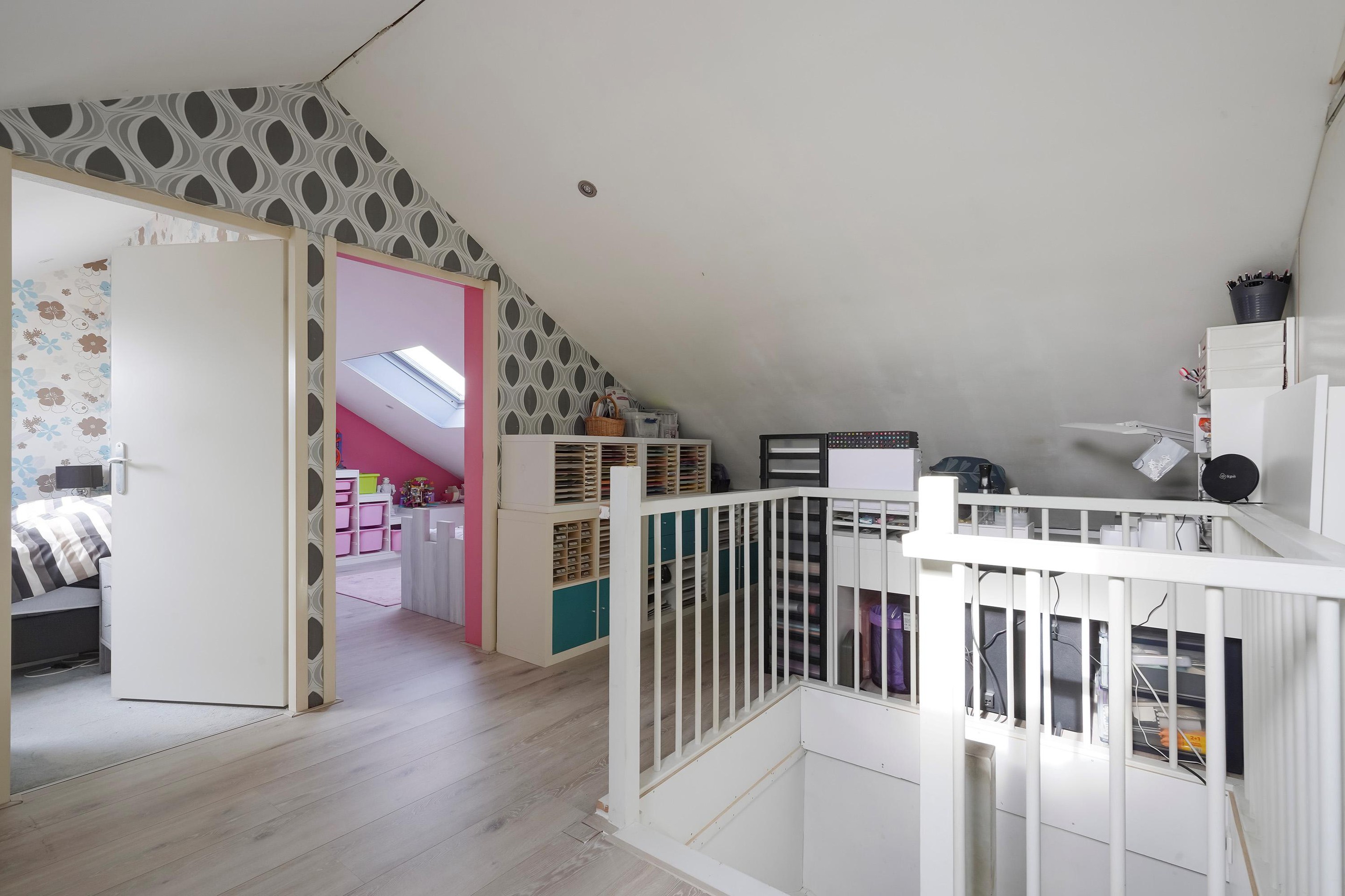 Op de tweede verdieping bevindt zich een ruime overloop die zich uitstekend leent als werkplek of studieruimte. Daarnaast zijn er twee lichte en goed bemeten slaapkamers, ideaal voor een gezin, logees of een thuiswerkplek.