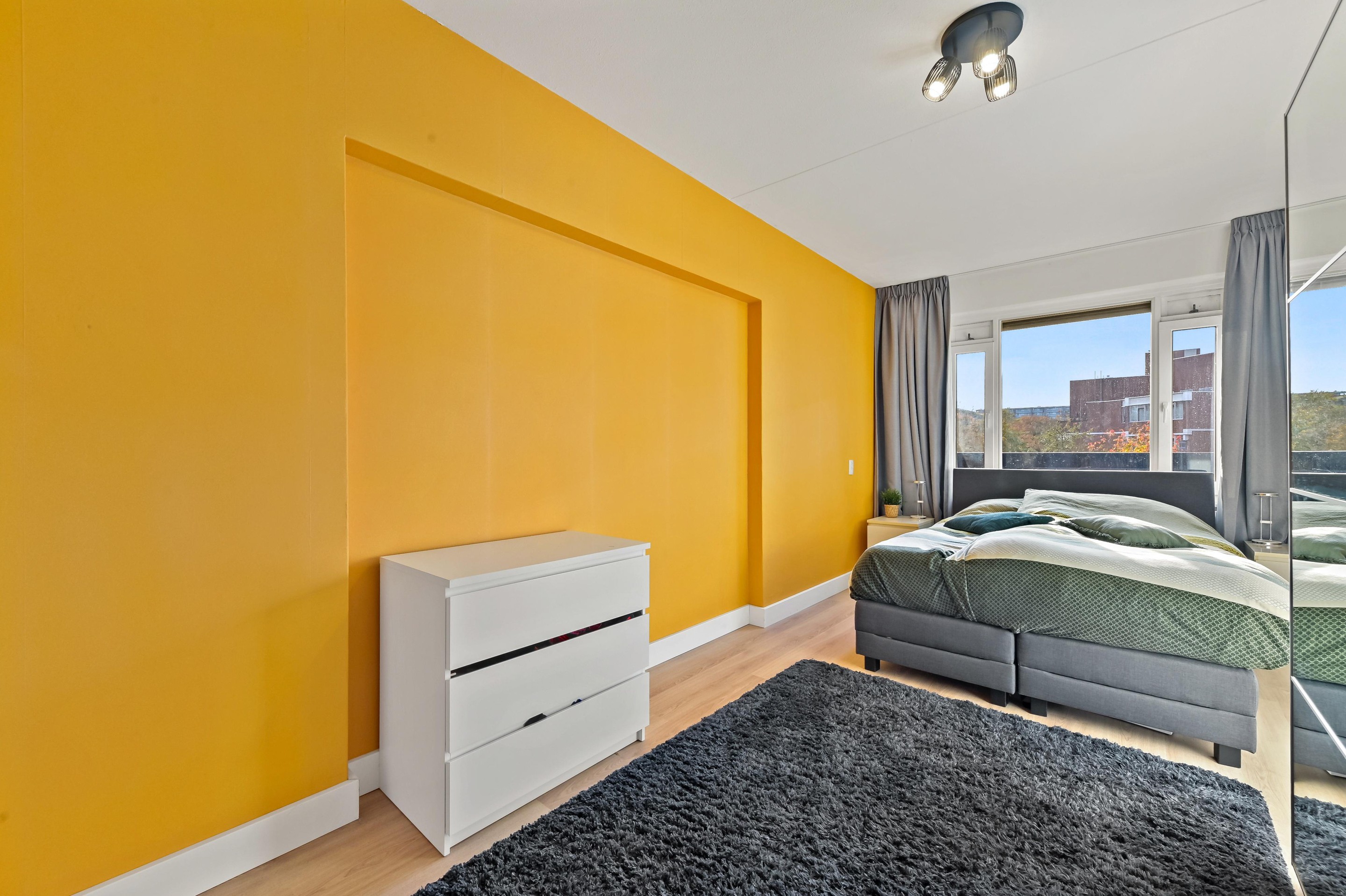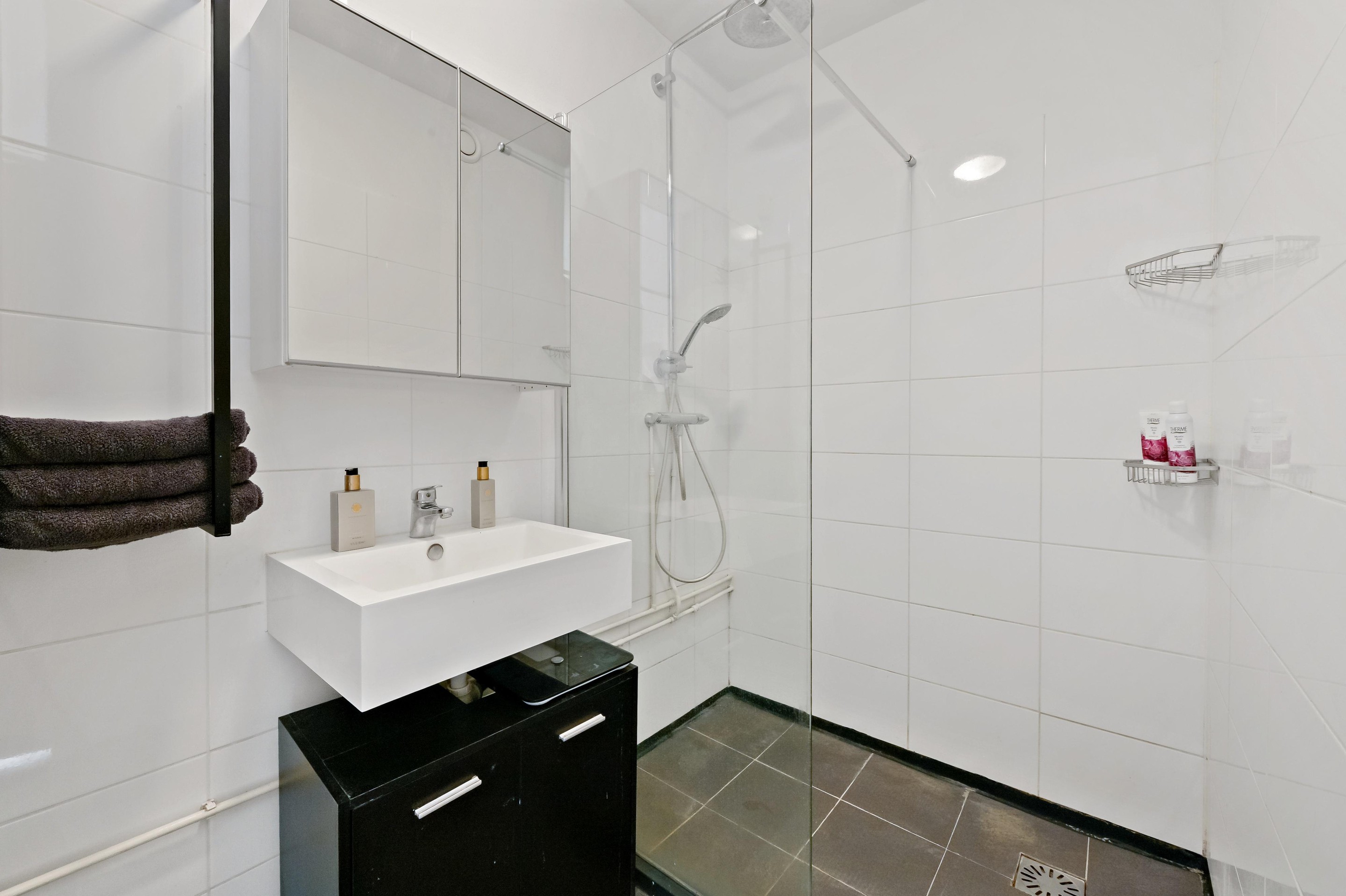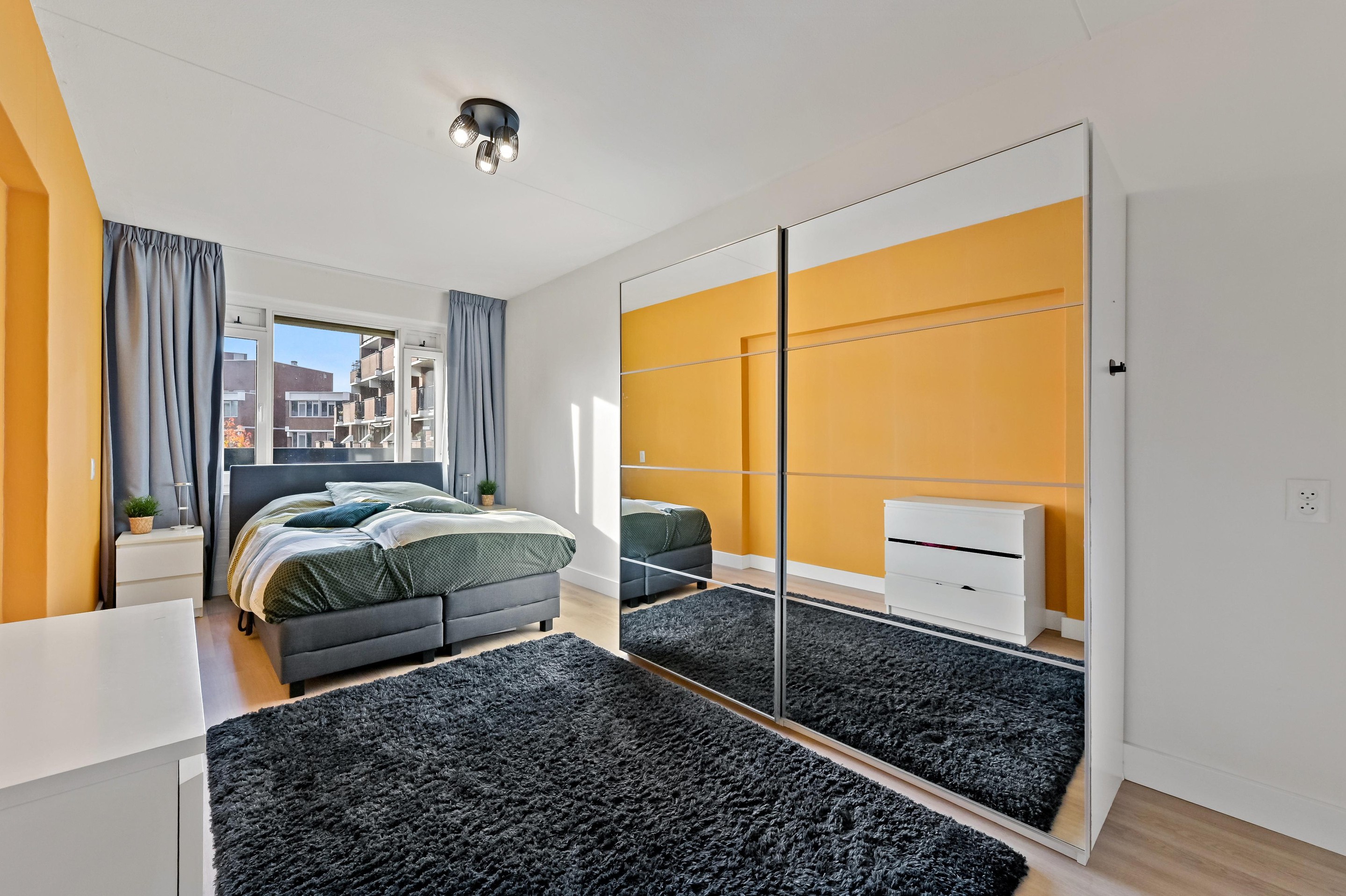 De centrale hal biedt toegang tot het appartement. Vanuit de hal met meterkast en moderne toiletruimte zijn alle vertrekken te bereiken. De woonkamer met aangrenzende keuken is sfeervol ingericht en grenst aan het zonnige balkon. Het balkon is aan de achterzijde gelegen en kijkt uit op een groenstrook met vijverpartij en fontein, waardoor je hier in alle rust van de middag- en avondzon kunt genieten. De moderne open keuken is voorzien van een 4-pits gaskookplaat, afzuigkap, oven en vaatwasser – alles wat je nodig hebt om lekker te koken. De ruime slaapkamer met vaste kast biedt voldoende plek voor een groot bed en kledingkast. De badkamer is in het midden van het appartement gesitueerd en voorzien van douche, wastafel, spiegelkast en aansluiting voor de wasmachine en wasdroger. De laminaatvloer loopt door in de hele woning (m.u.v. de natte ruimtes), wat zorgt voor een verzorgde afwerking.