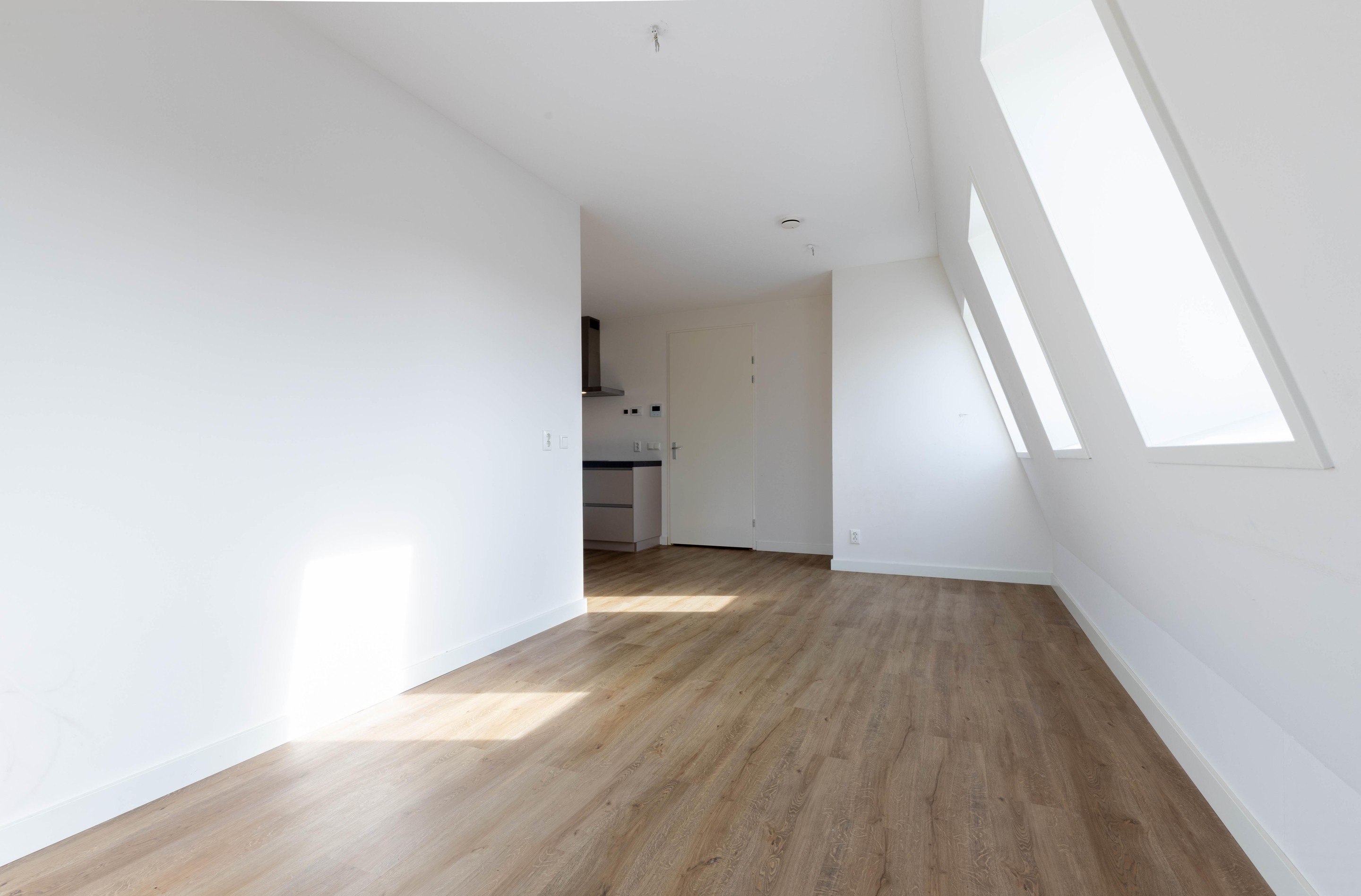 Het appartement van circa 50 m2 heeft een slimme indeling: een entree met hal en toiletruimte, een moderne badkamer met inloopdouche en wastafel, een lichte en ruime woonkamer met ramen in het schuine dak waardoor veel natuurlijk licht binnenvalt en een open keuken in L-opstelling voorzien van alle moderne inbouwapparatuur. De slaapkamer is van prima formaat en biedt voldoende ruimte voor een comfortabel bed en kasten.