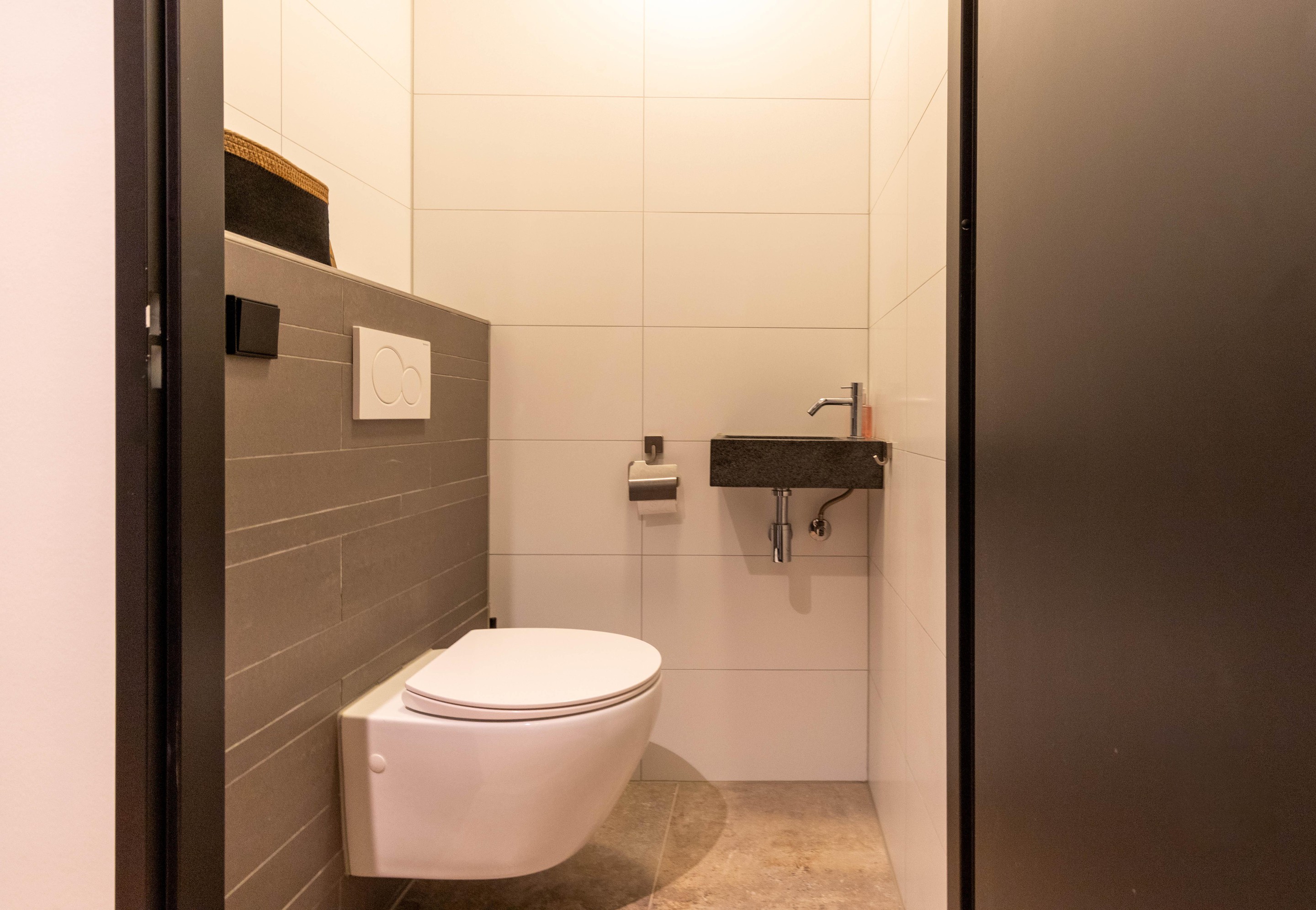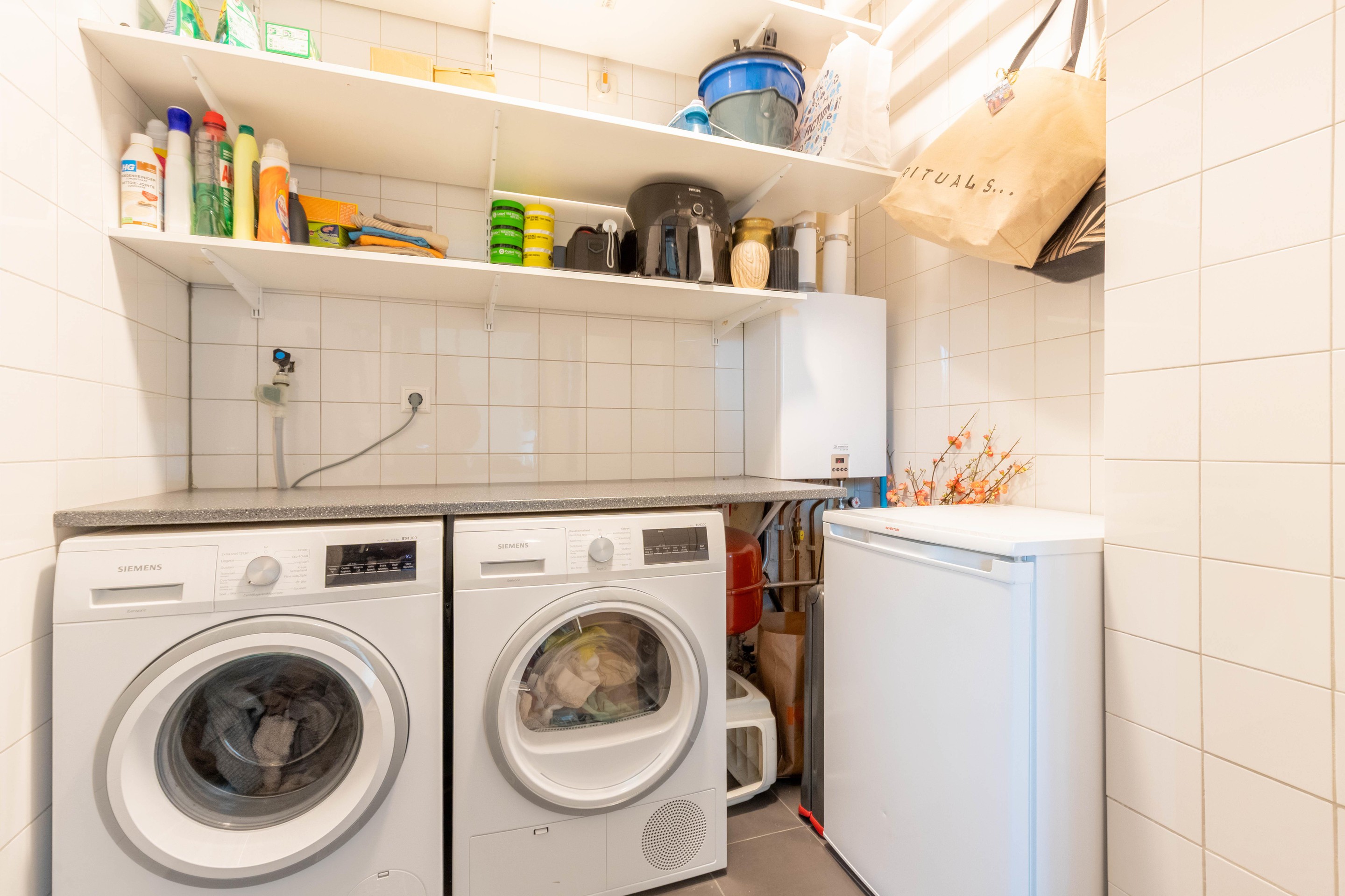 Verder beschikt deze verdieping over een comfortabele slaapkamer, een moderne badkamer met inloopdouche en dubbele wastafel, en een praktische was- en technische ruimte met opstelling voor wasmachine, droger en cv-installatie.