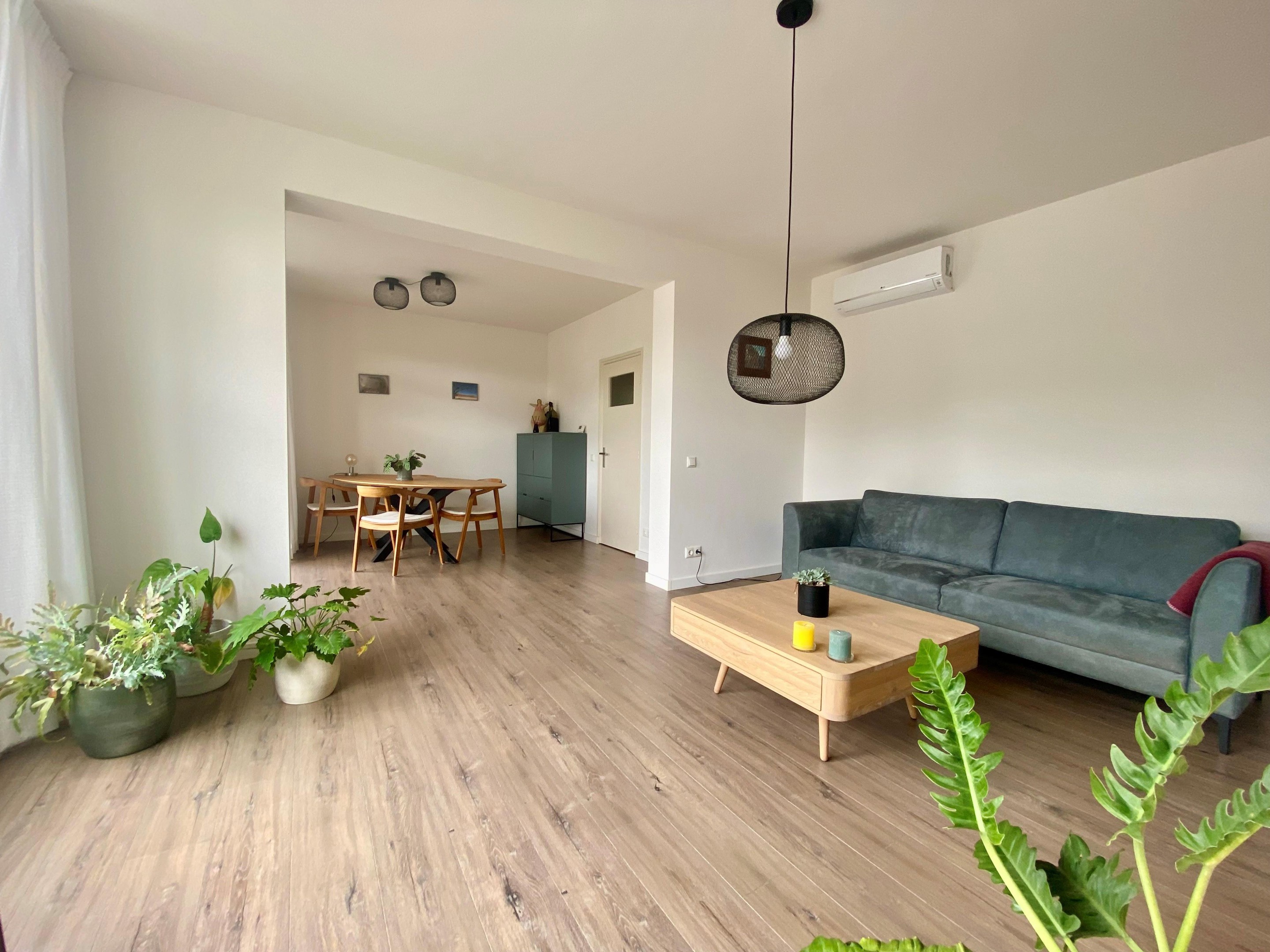 - Ruime, lichte woonkamer met laminaatvloer en toegang tot balkon op het zuiden.