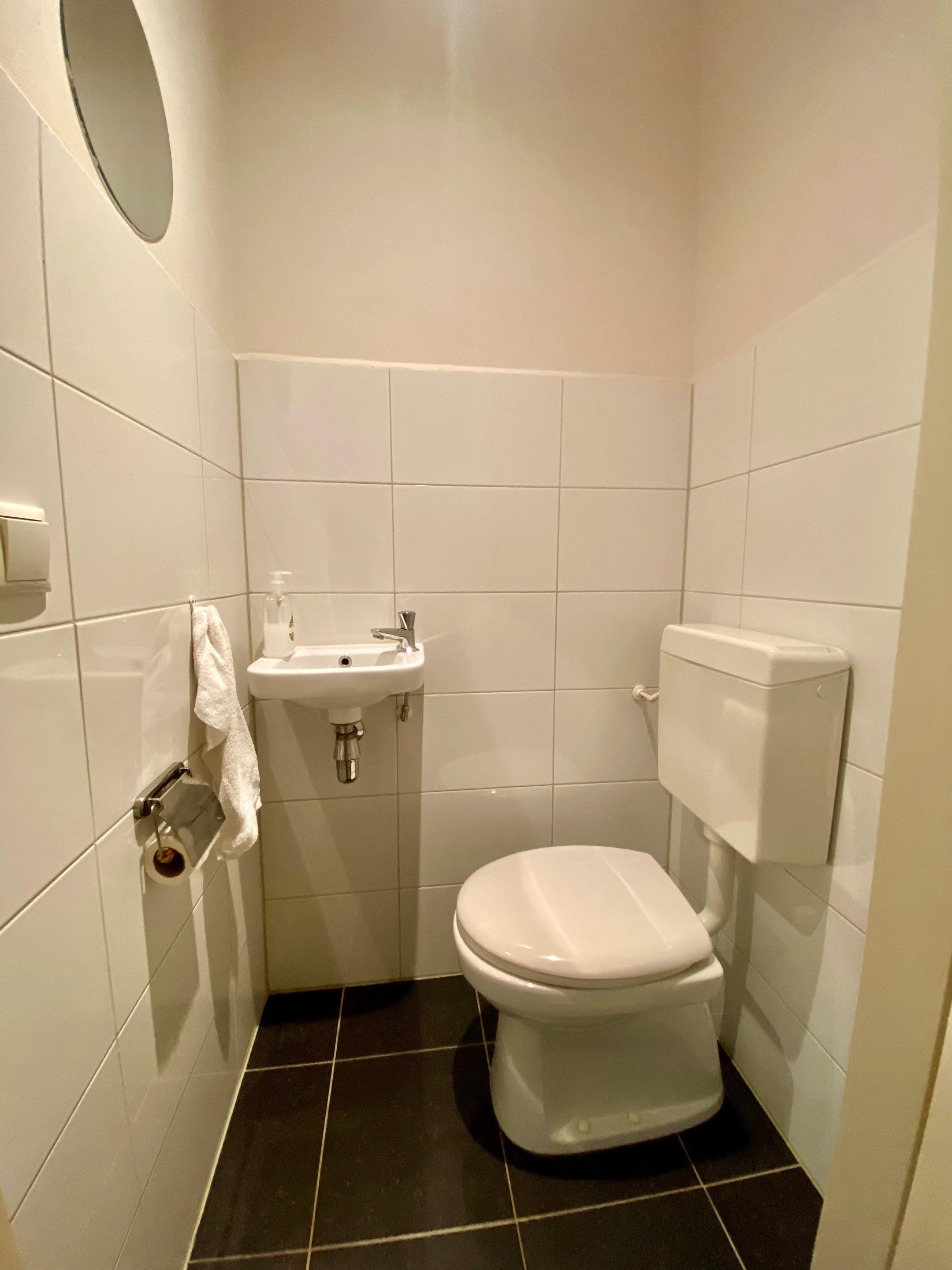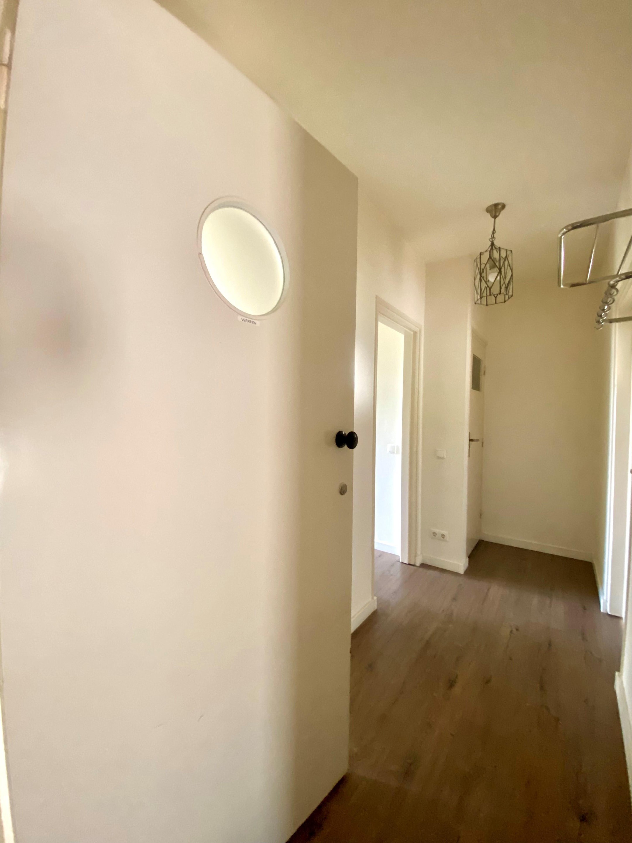 - Entree/hal met laminaatvloer, garderobe en modern hangtoilet.