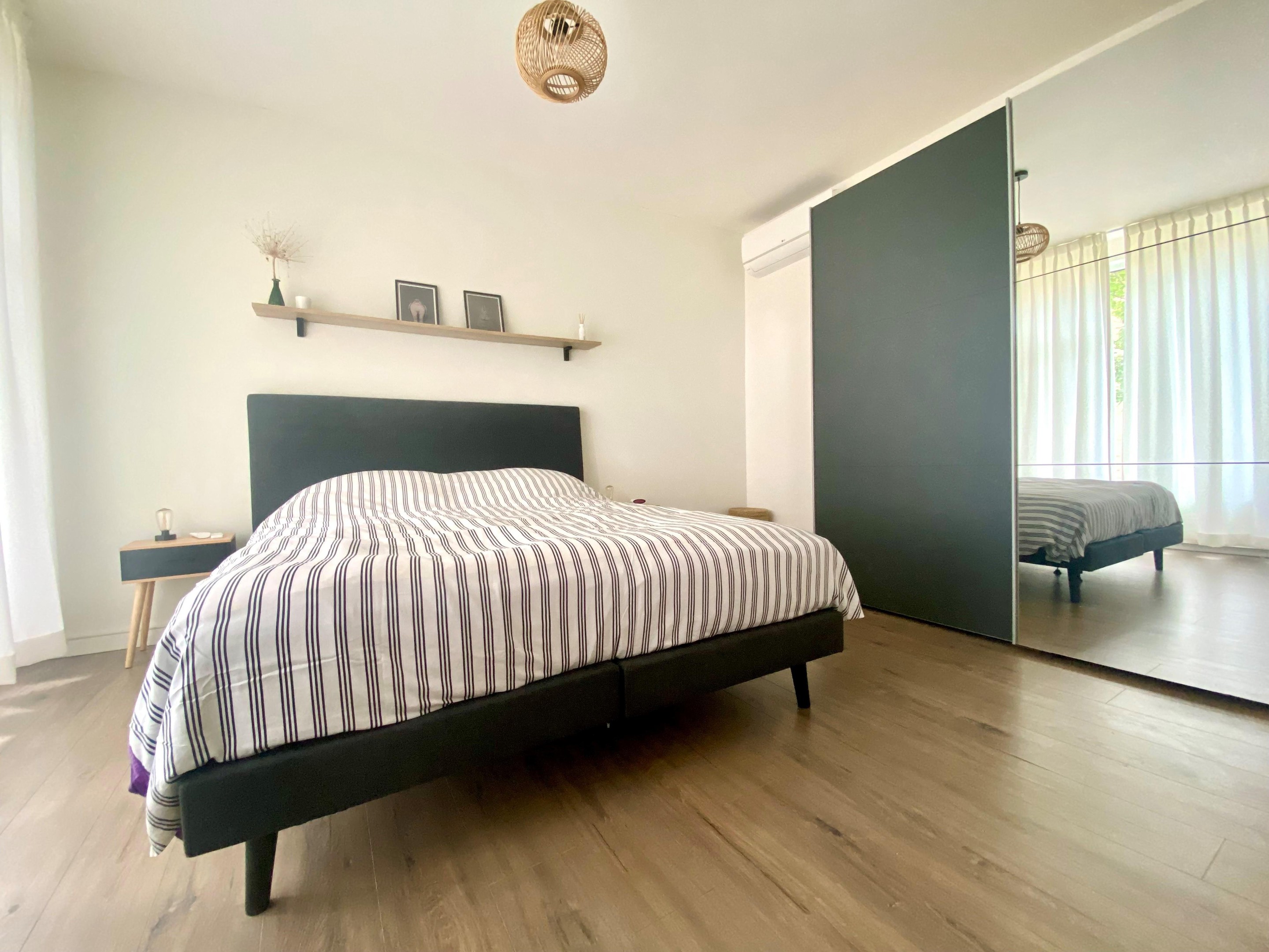 - Slaapkamer 1 met laminaatvloer en ensuite badkamer met inloopdouche, wastafel en designradiator.