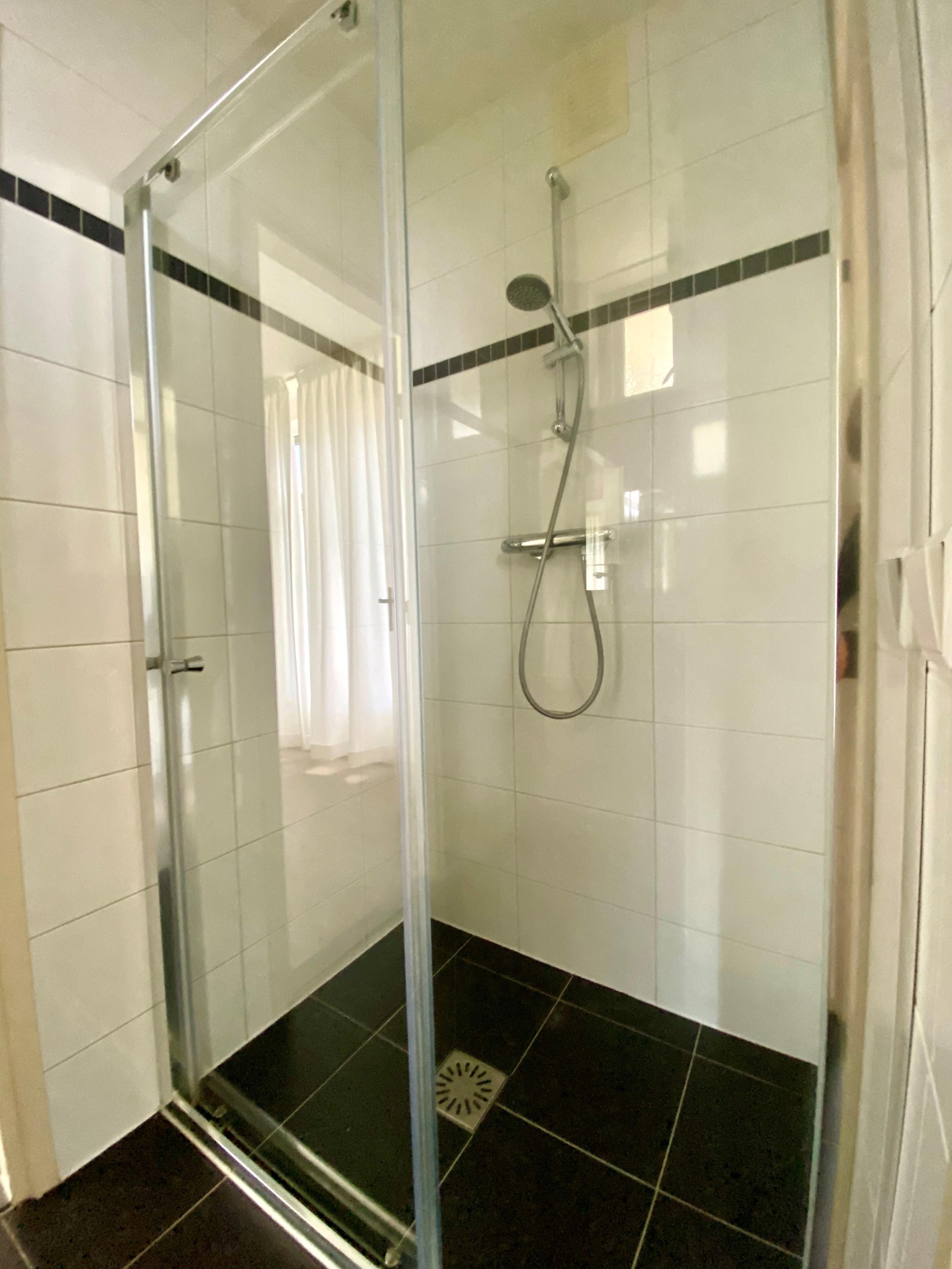 Ruime privéberging (ca. 12 m2) met witgoedaansluitingen.