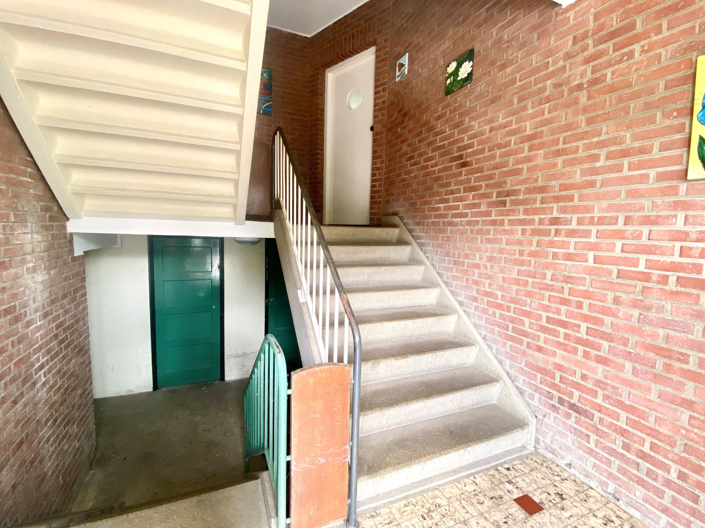 Gemeenschappelijke entree met brievenbussen en trappenhuis naar de drie woonlagen. Het appartement Op de Meulenberg 14 bevindt zich op de 1e verdieping.
