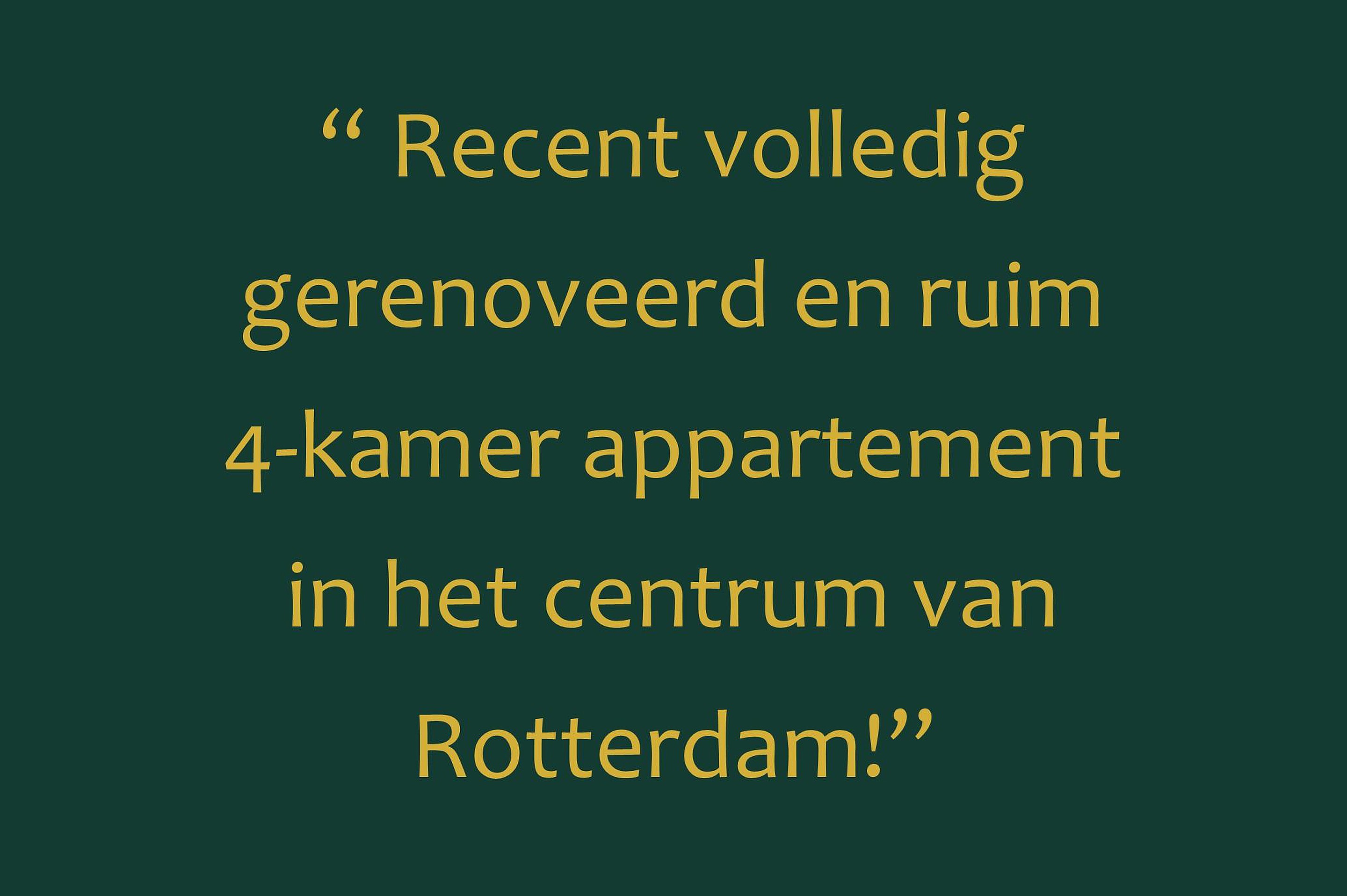 RECENT INTERN VOLLEDIG GERENOVEERD EN RUIM 4-KAMER APPARTEMENT GELEGEN AAN DE RAND VAN HET BRUISENDE CENTRUM VAN ROTTERDAM!