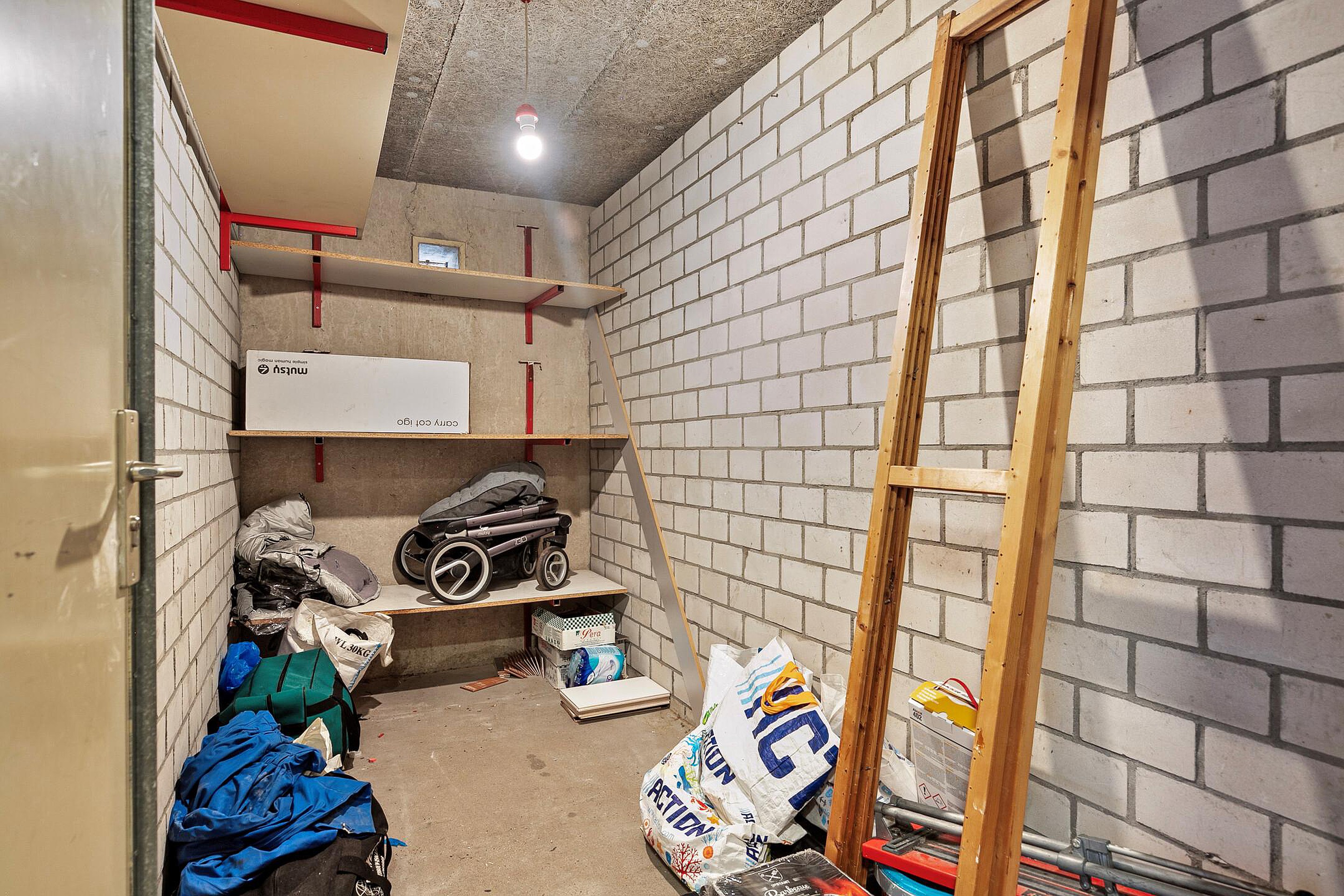- Afgesloten entree, trappenhuis en toegang tot de individuele bergingen;