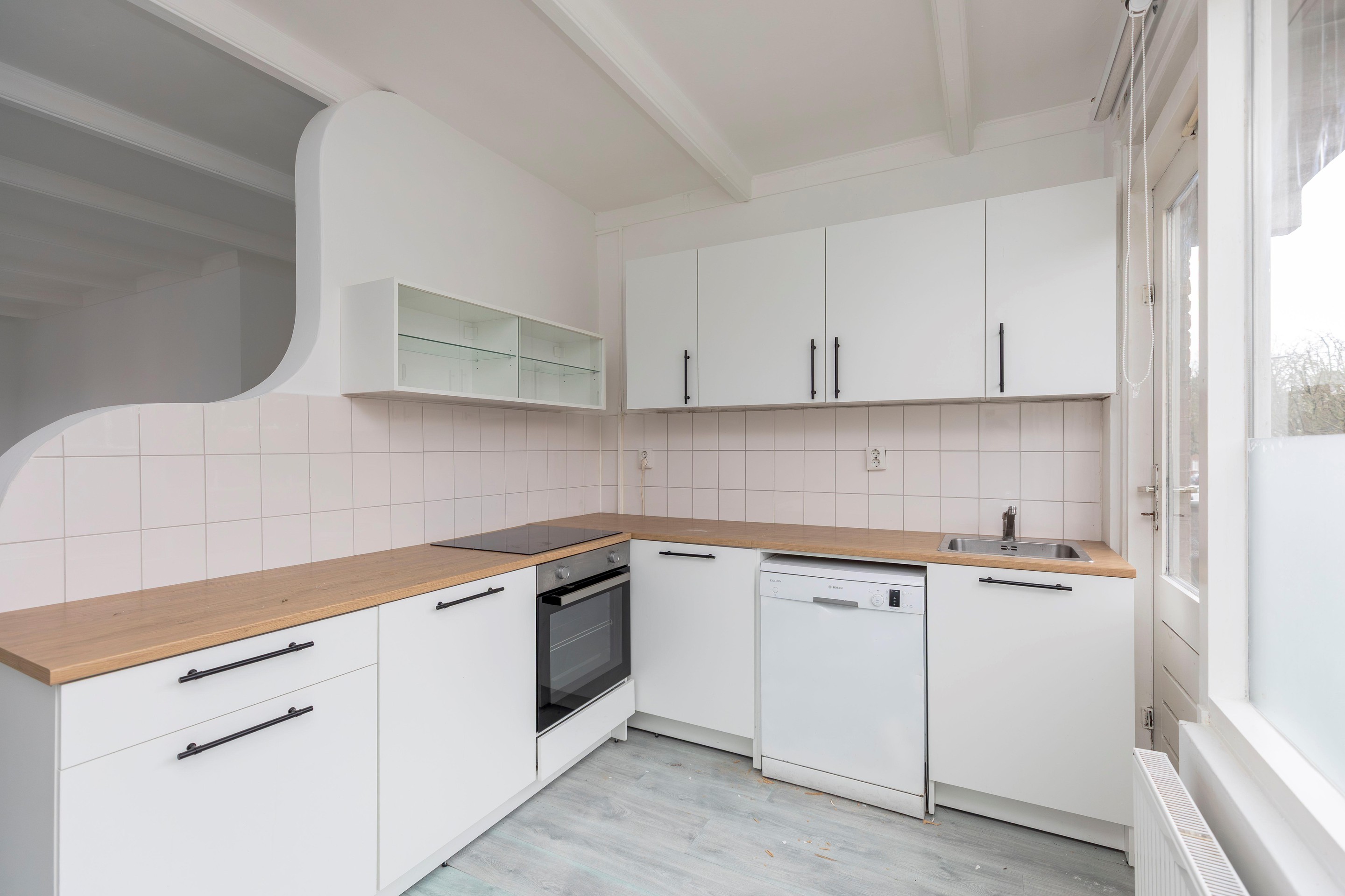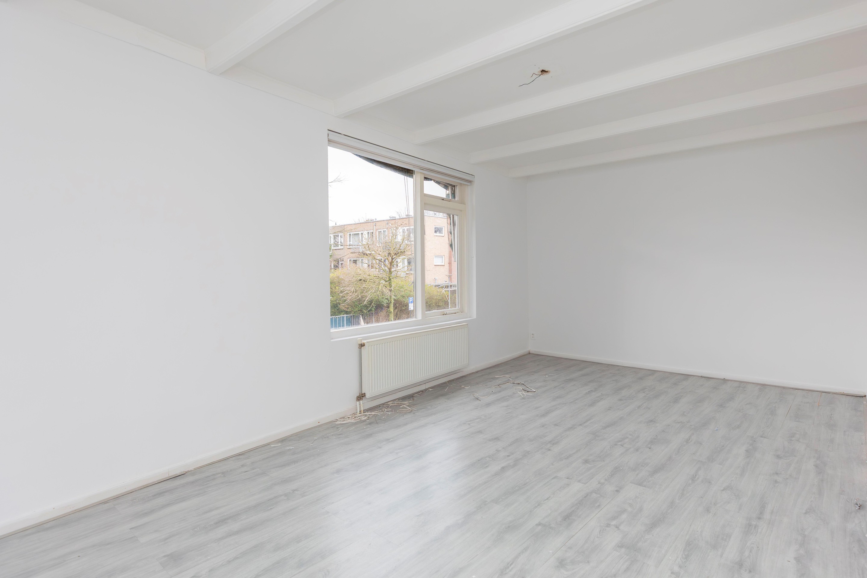 De woning is netjes afgewerkt met een verzorgde wand- en plafondafwerking en een doorlopende laminaatvloer die zorgt voor een moderne, uniforme uitstraling. Extra praktisch is de eigen kelderberging in de onderbouw.