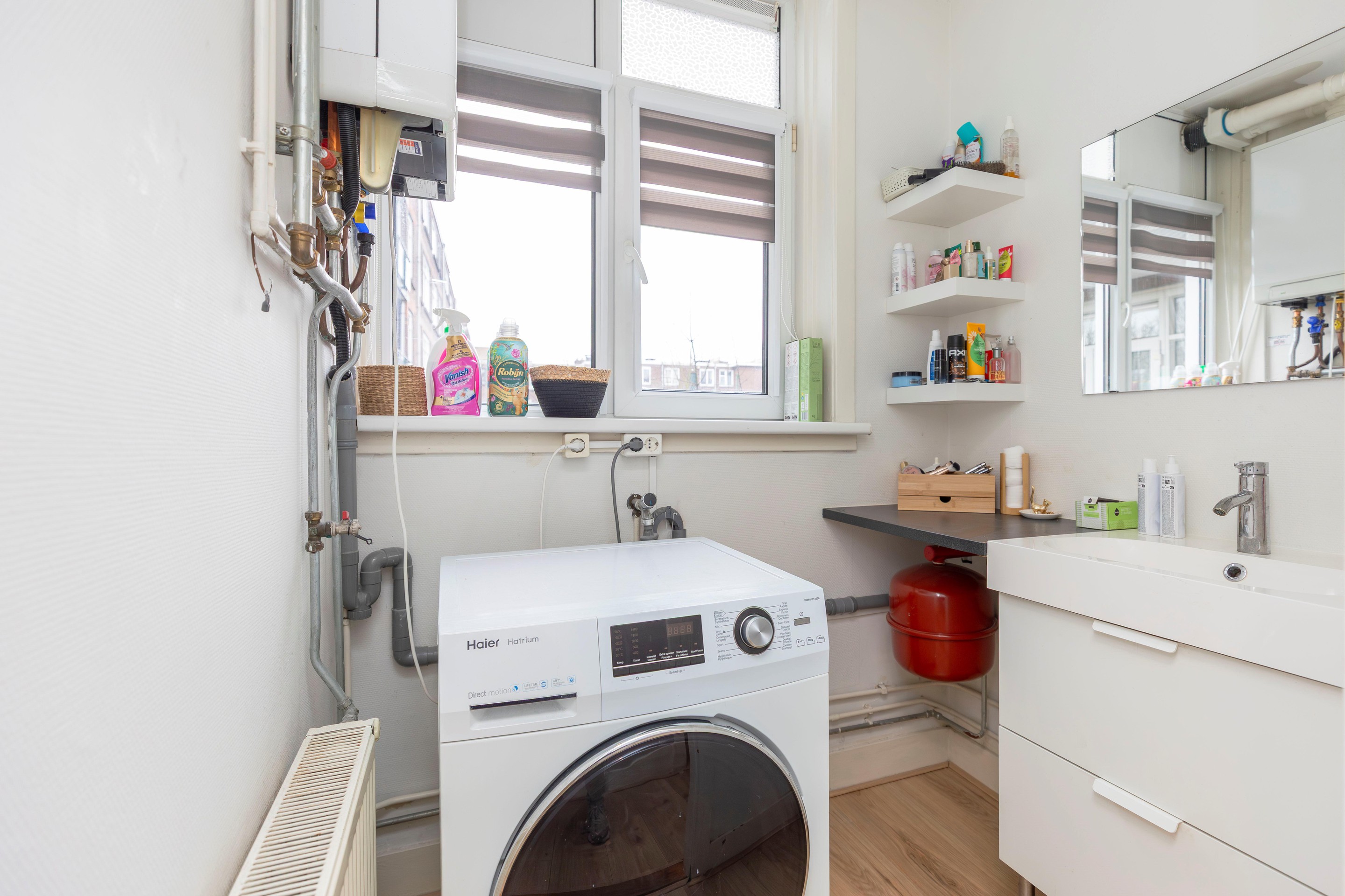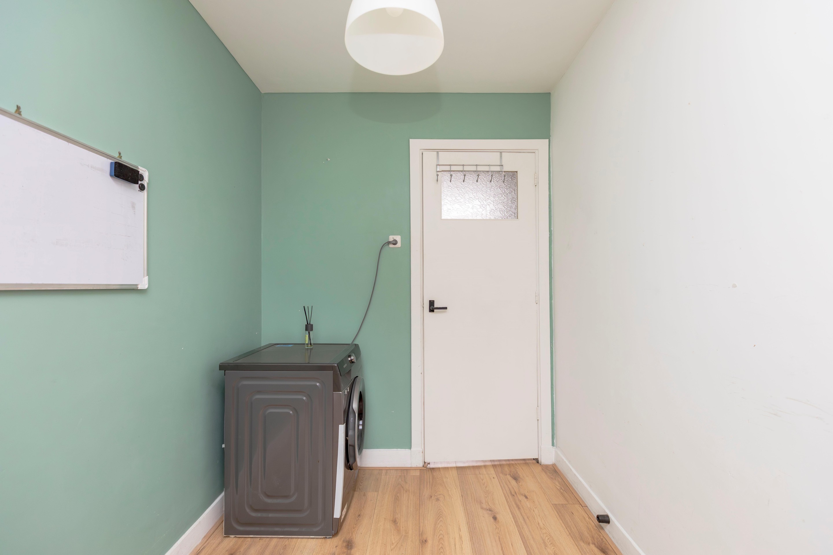 De tweede kamer wordt momenteel gebruikt als waskamer (de droger is hier gesitueerd), maar is dankzij de fijne afmetingen uitstekend geschikt als kinder-, werk- of logeerkamer.