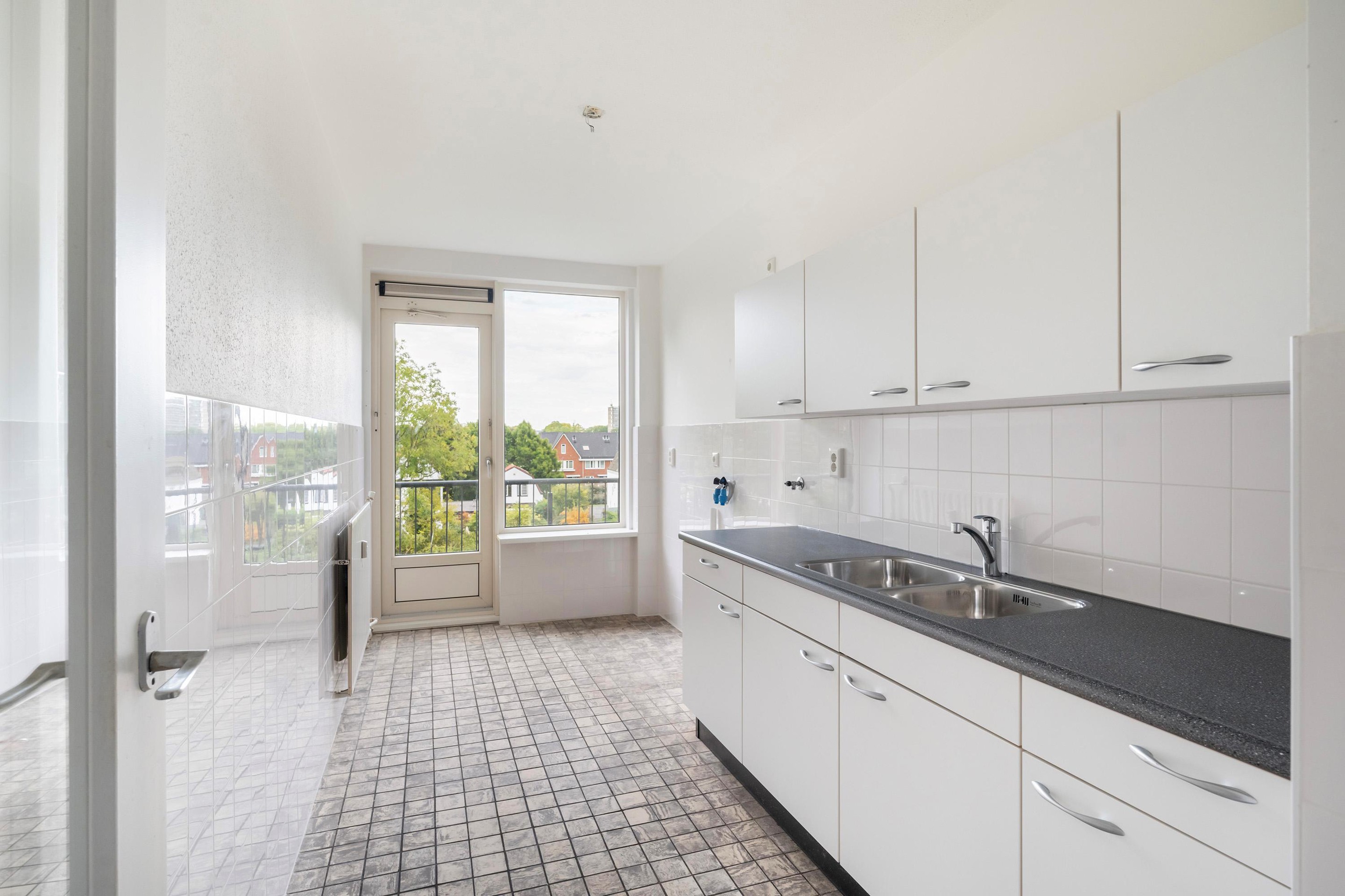 Deze 3-/4-kamer portiekwoning van 90m2 op de 3e-verdieping biedt u een zeldzame combinatie van rust, ruimte en bereikbaarheid. U beschikt over een ruime woonkamer aan de voorzijde met balkon, een keuken eveneens met balkon en twee slaapkamers aan de achterzijde.