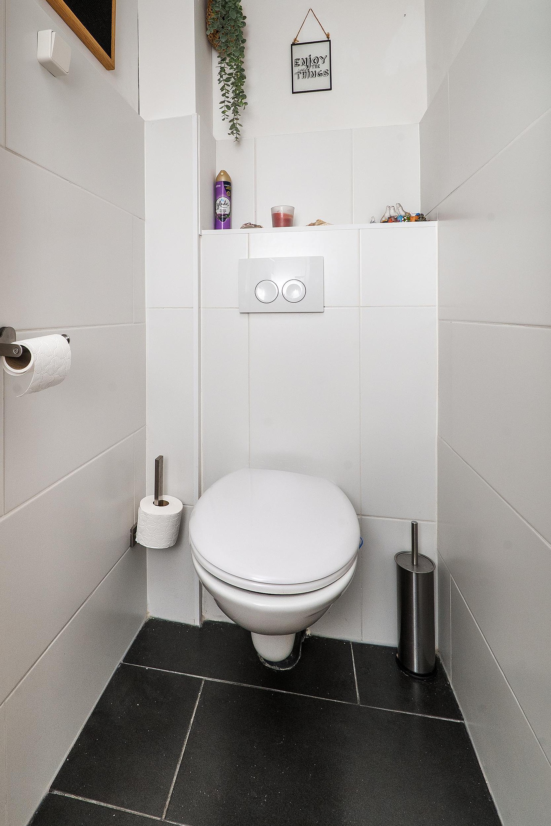 Het toilet is separaat en volledig betegeld.