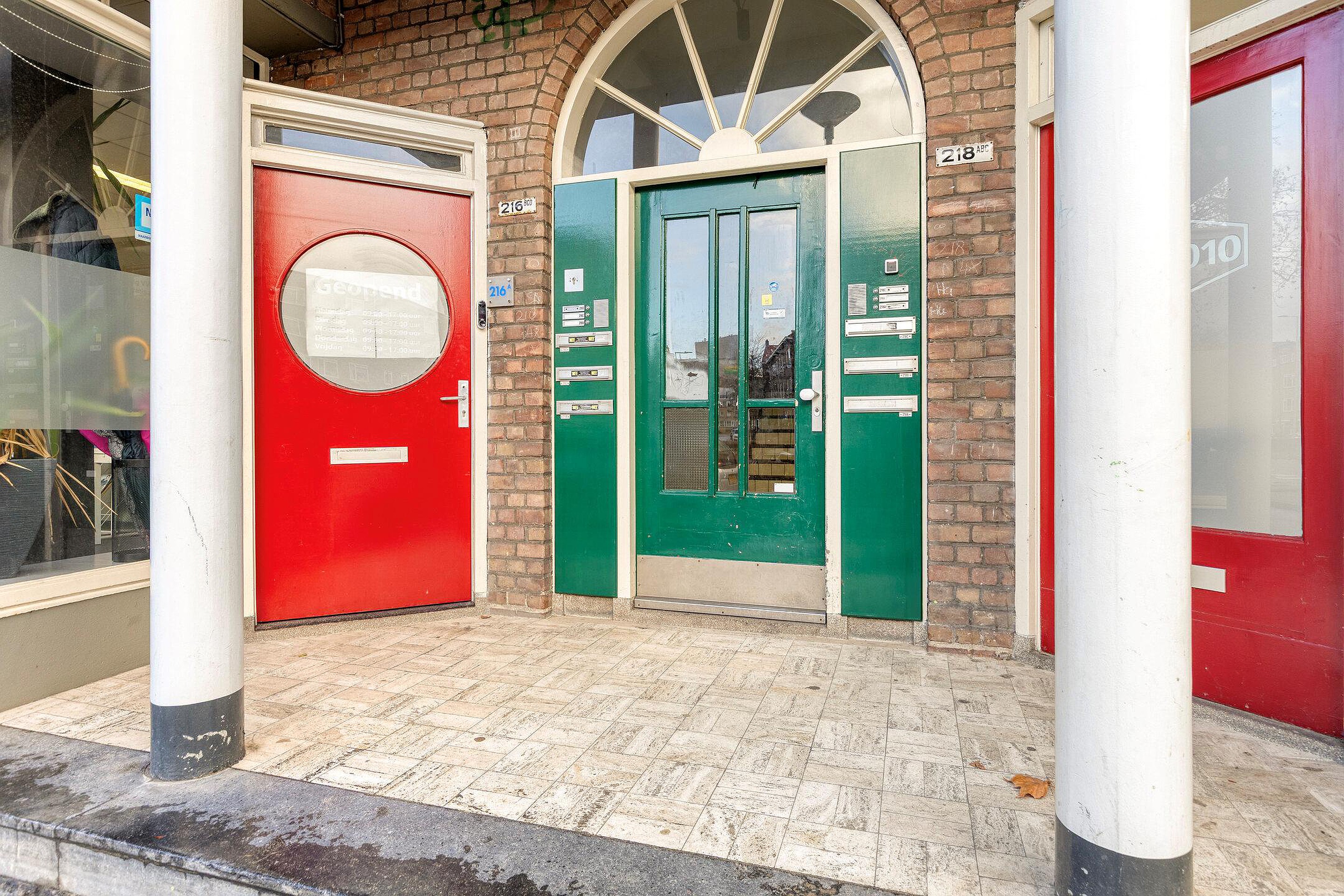 Gesloten entree met brievenbussen en toegang tot de bergingen en het trappenhuis