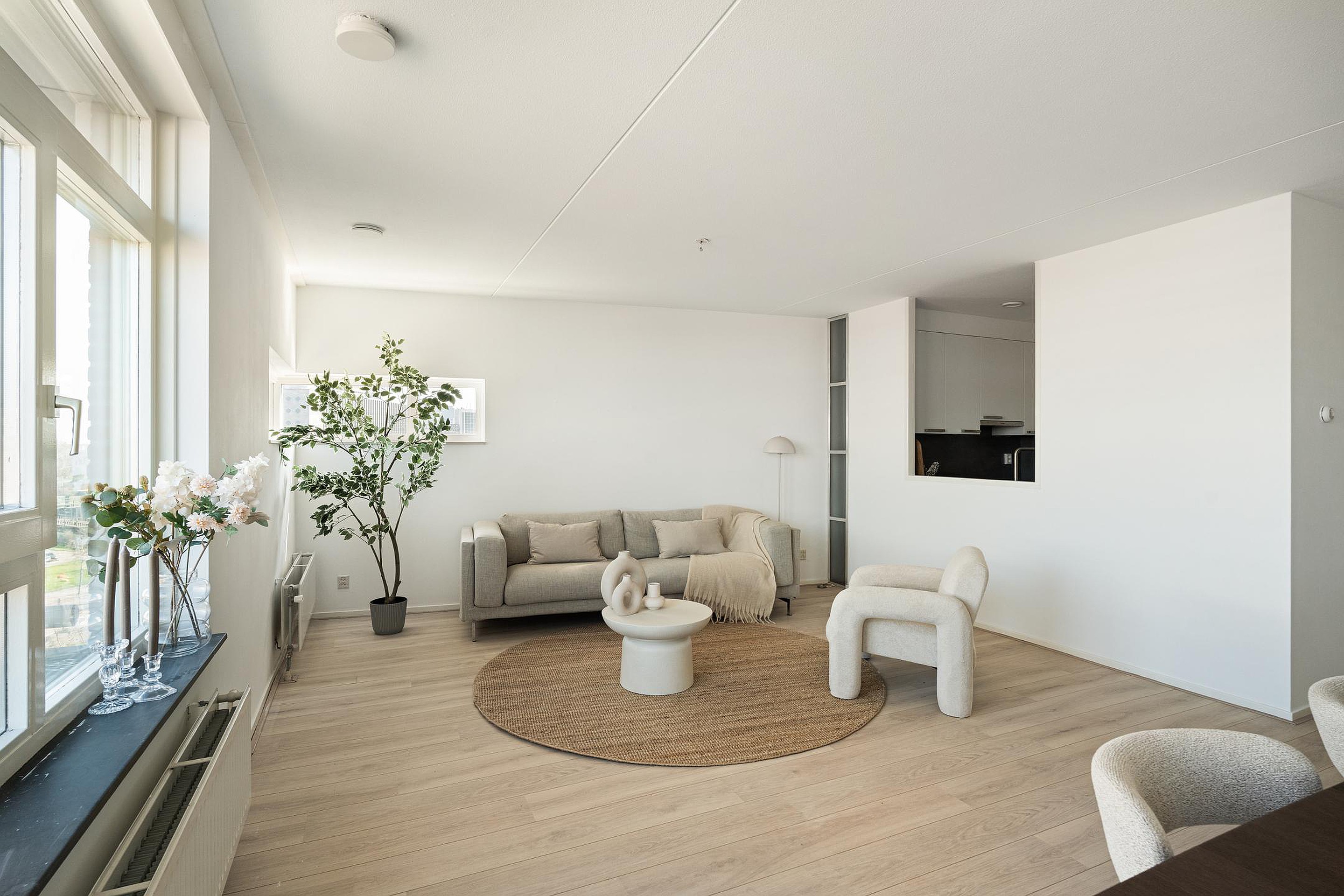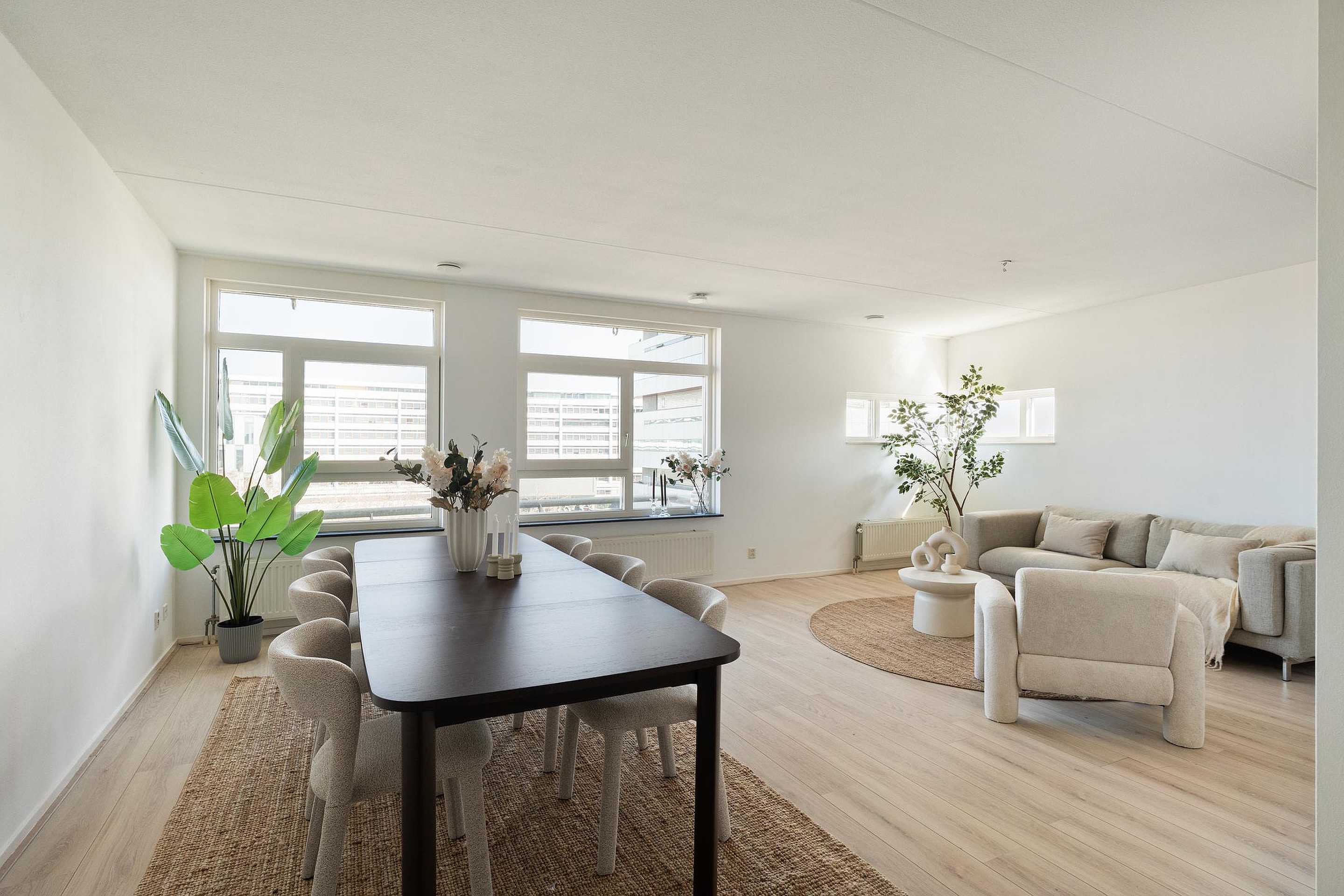 Deze 2-kamerwoning van circa 79m2 op de 8e verdieping heeft een groot balkon en een ruime berging in de onderbouw. Het complex beschikt over een representatieve, afgesloten centrale entree met twee liften. De woningentree is direct aan de overdekte lifthal gelegen waaraan slechts 2 woningen liggen.