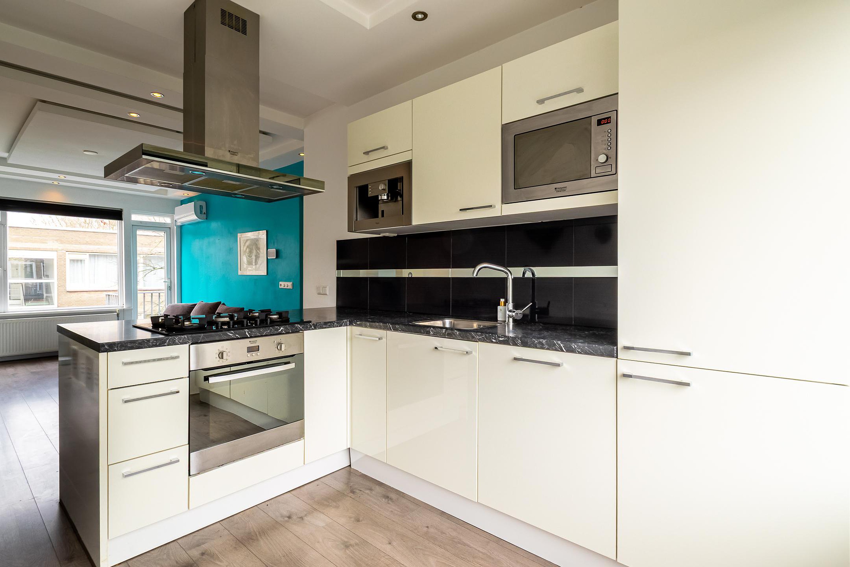 Keuken, gelegen aan de achterzijde, voorzien van een keukenblok in L-vormige opstelling, beschikt over een 5-pits gaskookplaat, afzuigkap, koel/vriescombinatie, vaatwasser, oven, magnetron en koffiemachine.