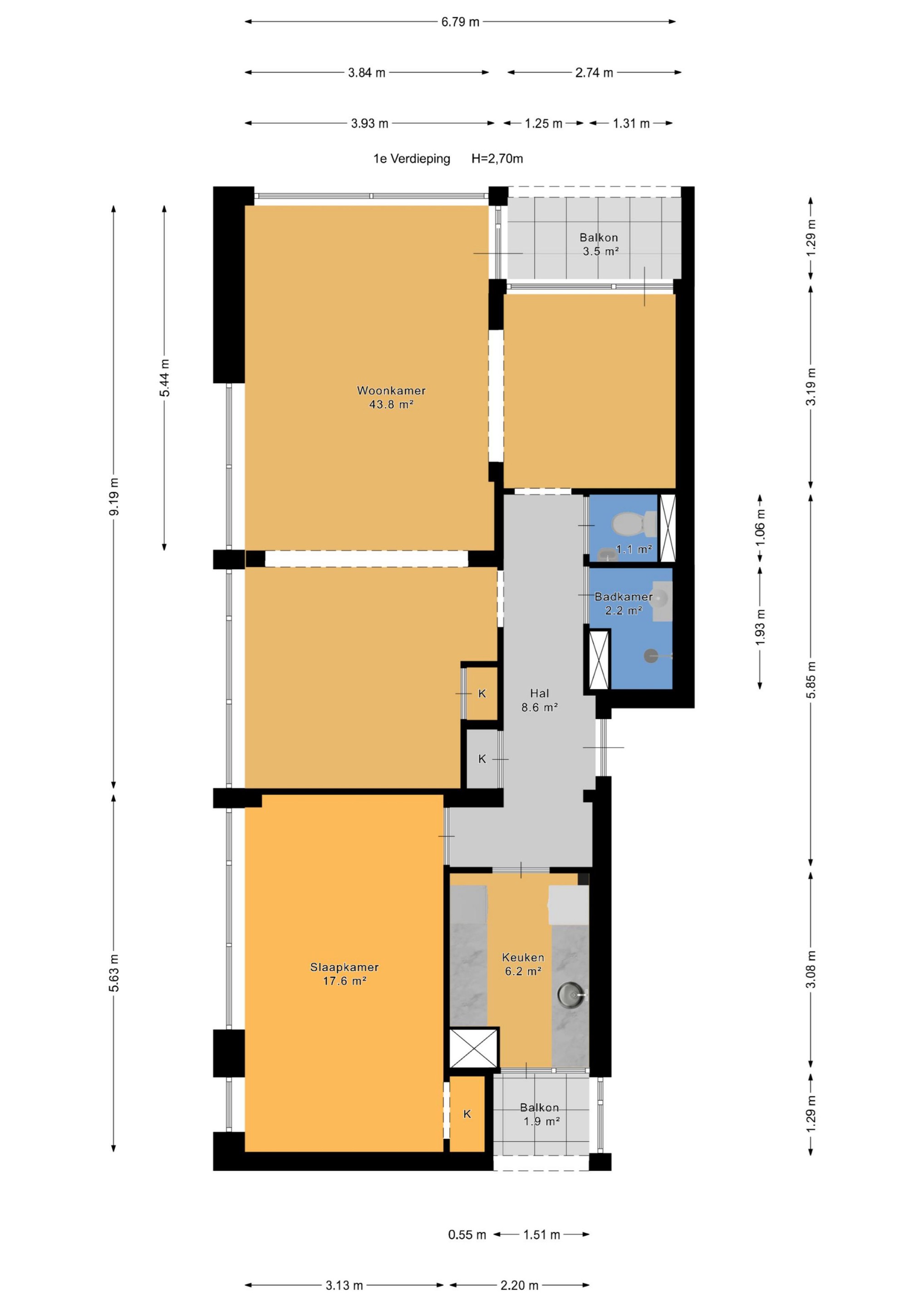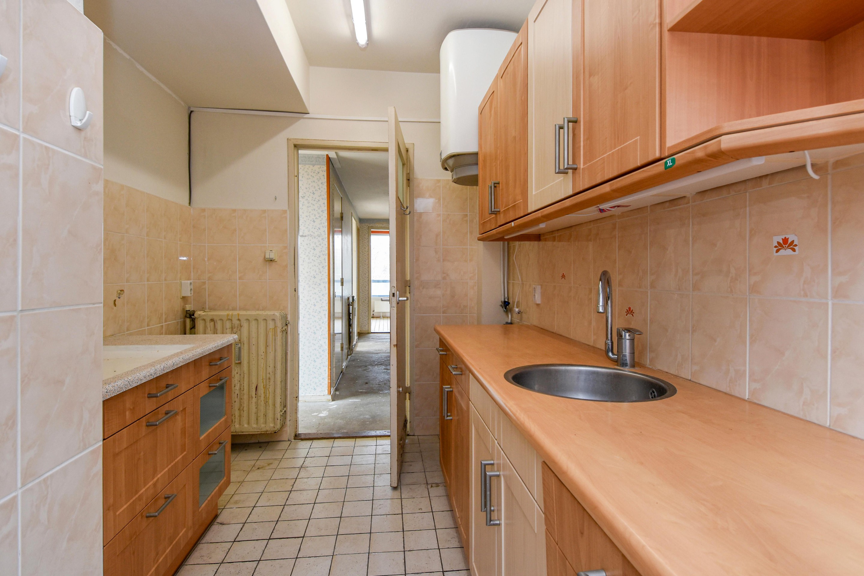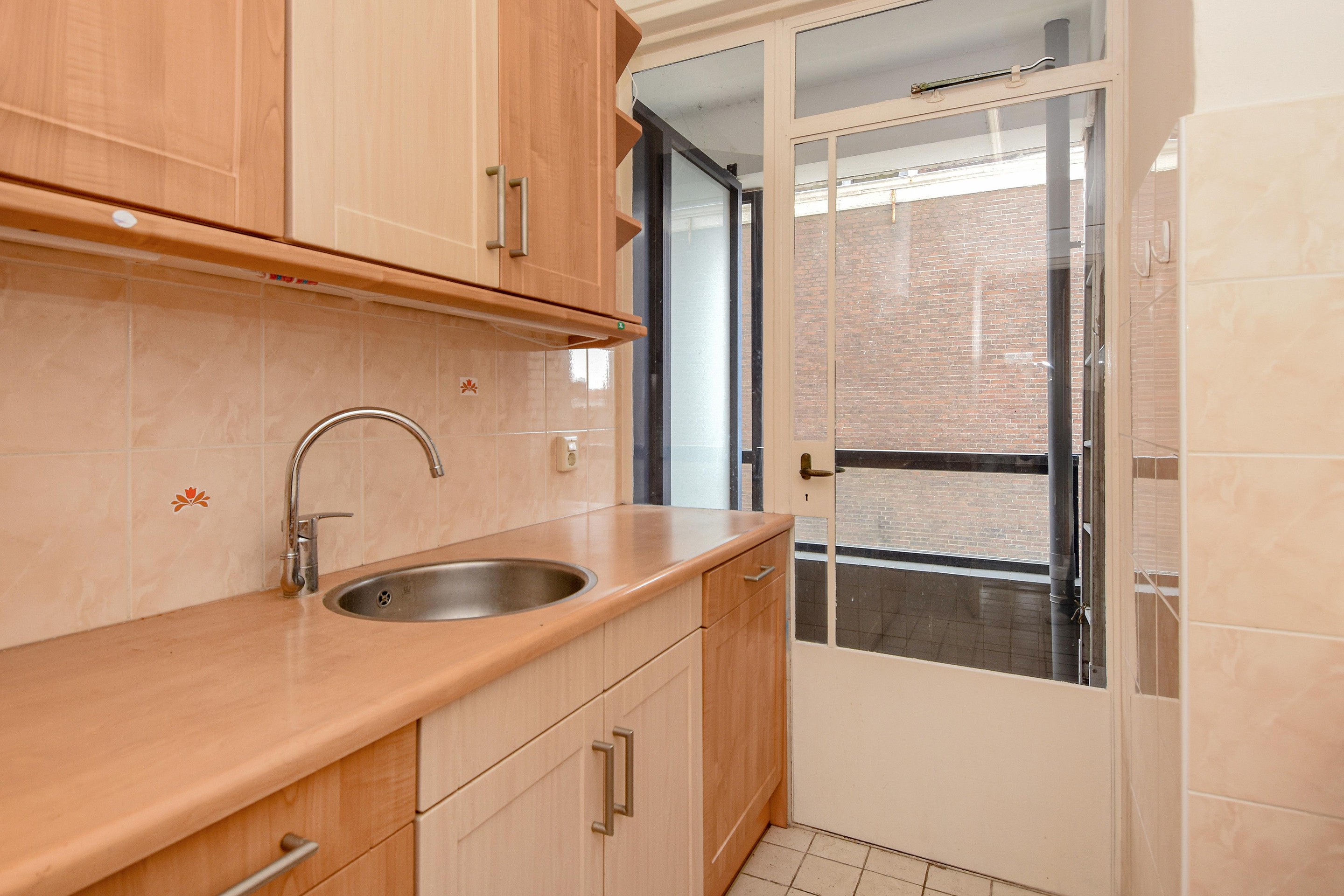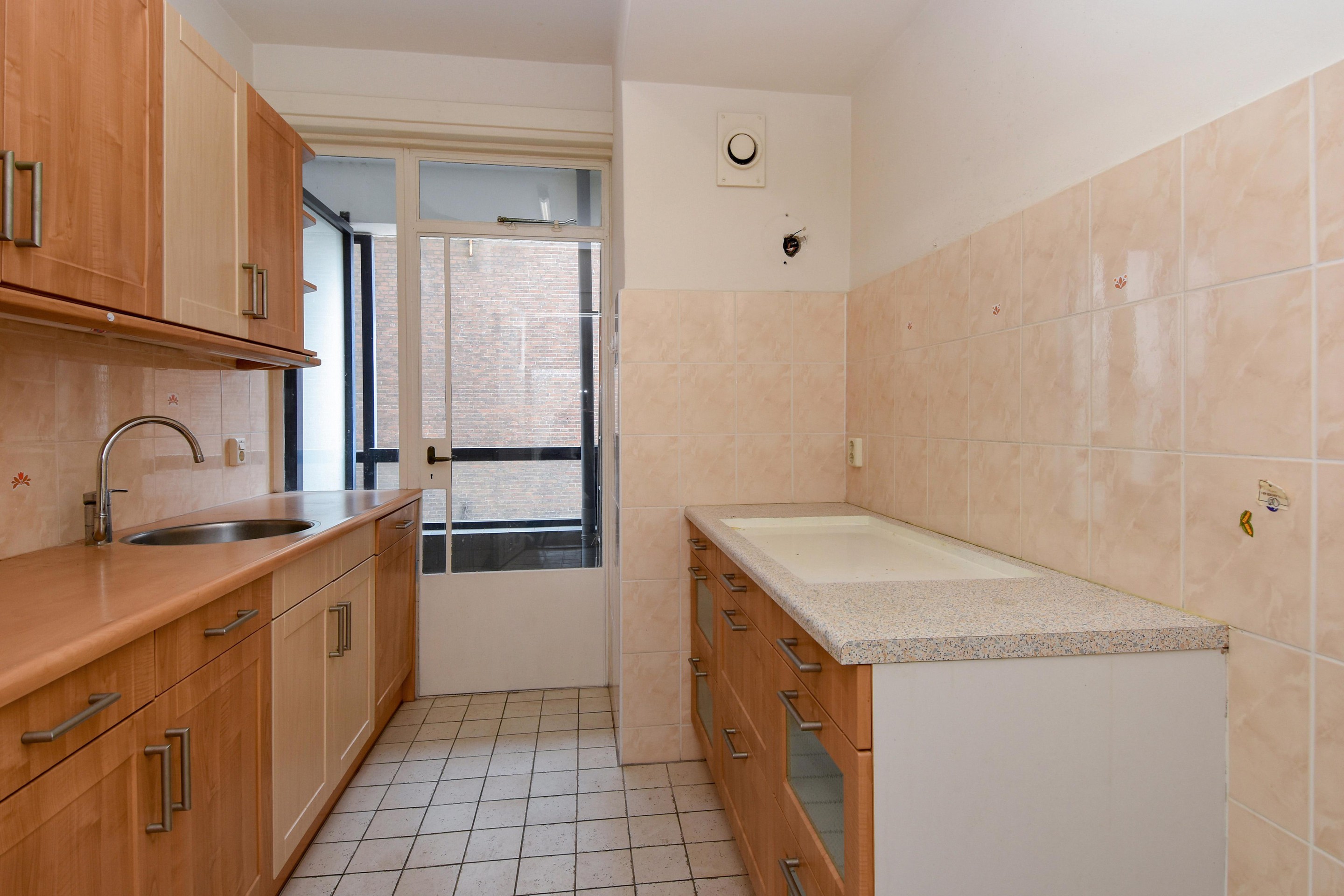 De keuken bevindt zich aan de achterzijde van de woning, is eenvoudig uitgevoerd en biedt toegang tot het tweede balkon.