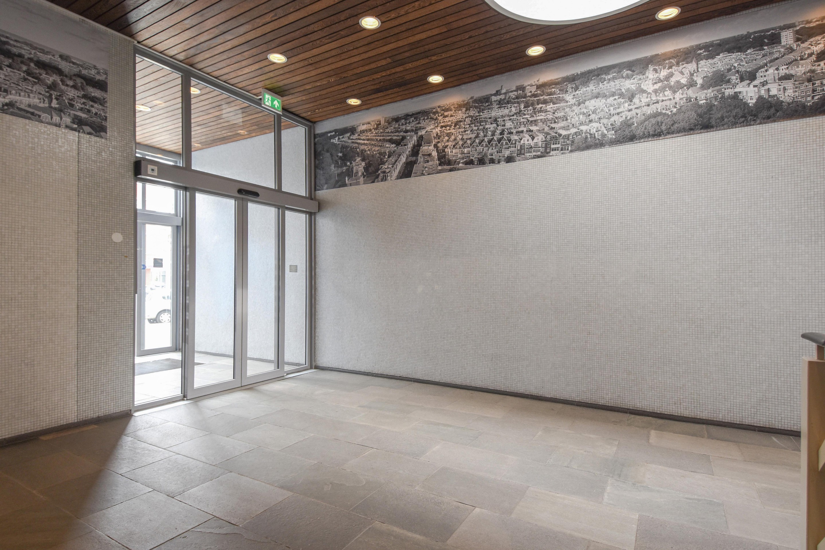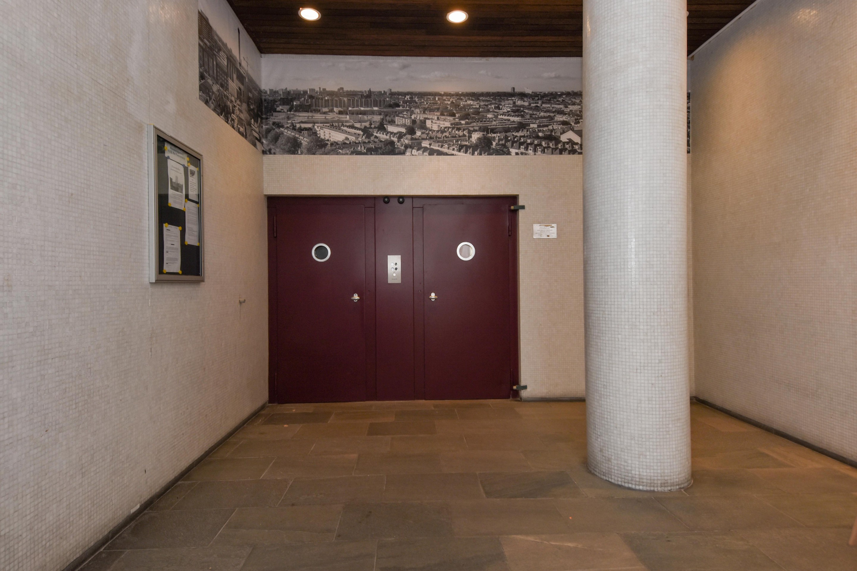 Centrale afgesloten entree met brievenbussen- en bellentableau, ruime representatieve hal met twee liften en trappenhuis.