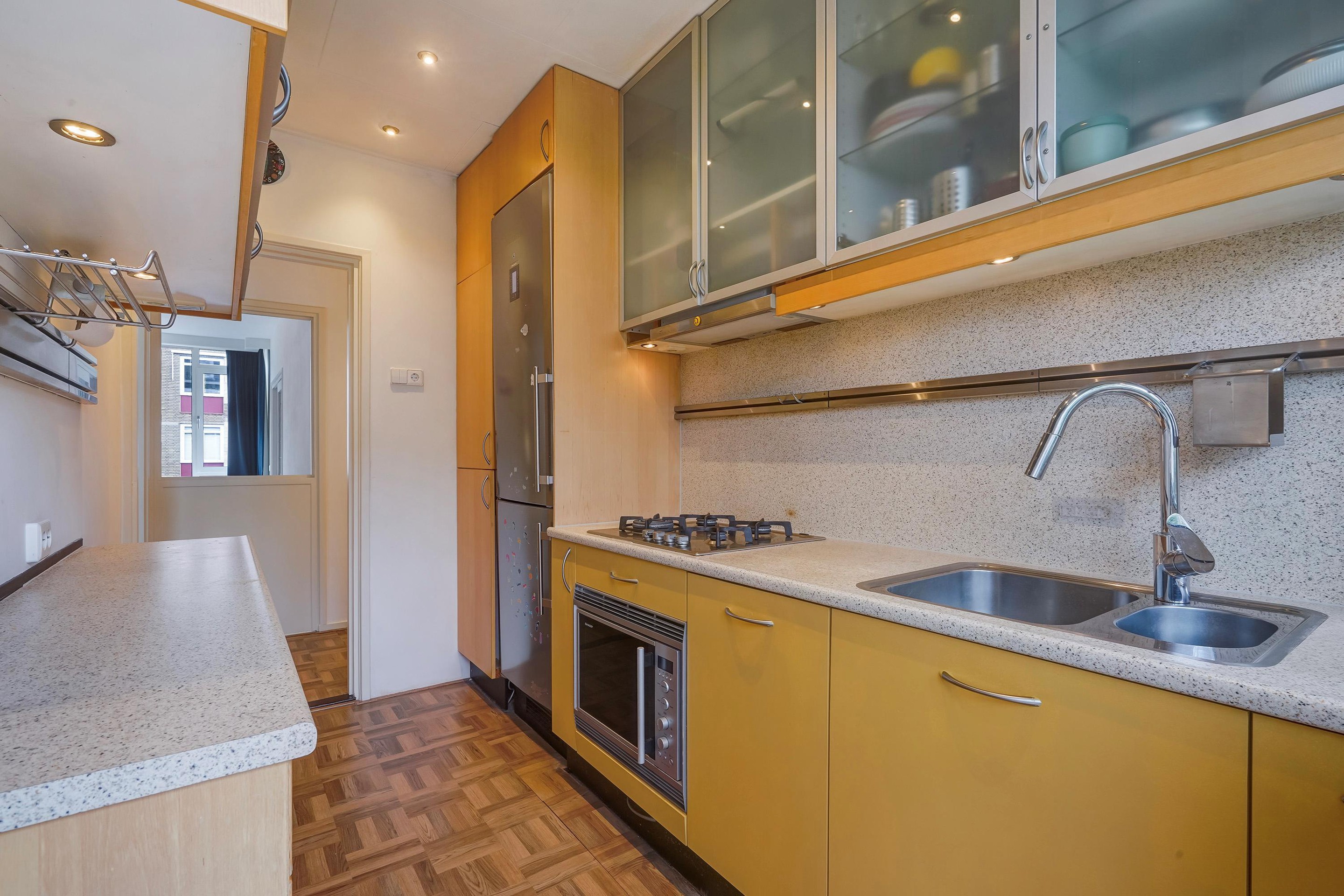 De woning is gelegen in een rustige straat en beschikt over veel daglicht, een royaal balkon en alle stedelijke voorzieningen op korte afstand. De ruime woon-/eetkamer heeft een prettige open uitstraling. Grote raampartijen zorgen voor een mooie lichtinval en bieden zicht op het groen rondom het gebouw. De keuken is functioneel en verzorgd ingericht en beschikt over voldoende werk- en kastruimte.