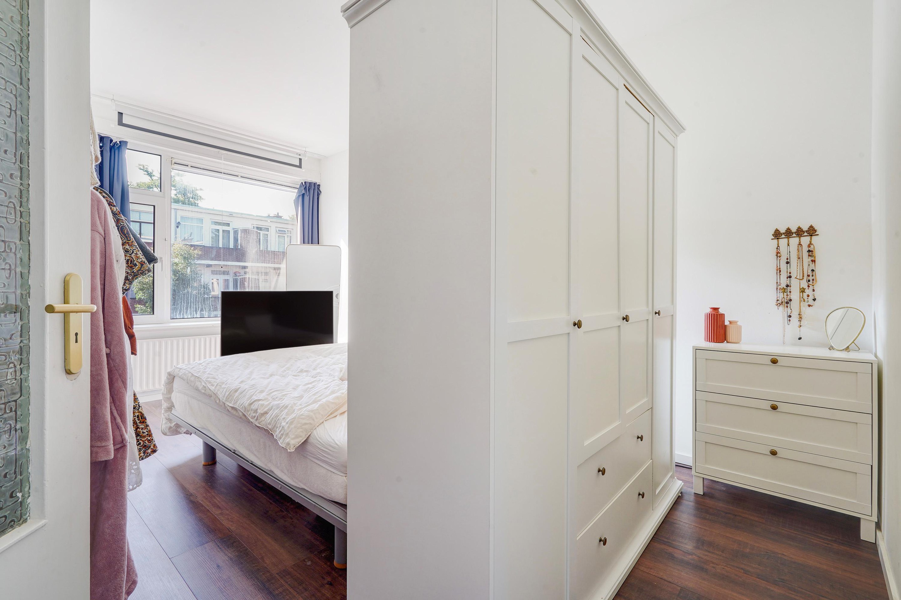 Deze charmante portiekwoning op de eerste verdieping biedt een verrassend licht en goed onderhouden appartement met een praktische en prettige indeling. Vanuit de hal bereikt u de eerste ruime slaapkamer. Aan de voorzijde ligt de zonnige woonkamer met daarachter een royale master bedroom, samen goed voor een sfeervolle leefruimte. Aan de achterzijde bevindt zich een derde kamer, ideaal te gebruiken als kinder- of werkkamer.