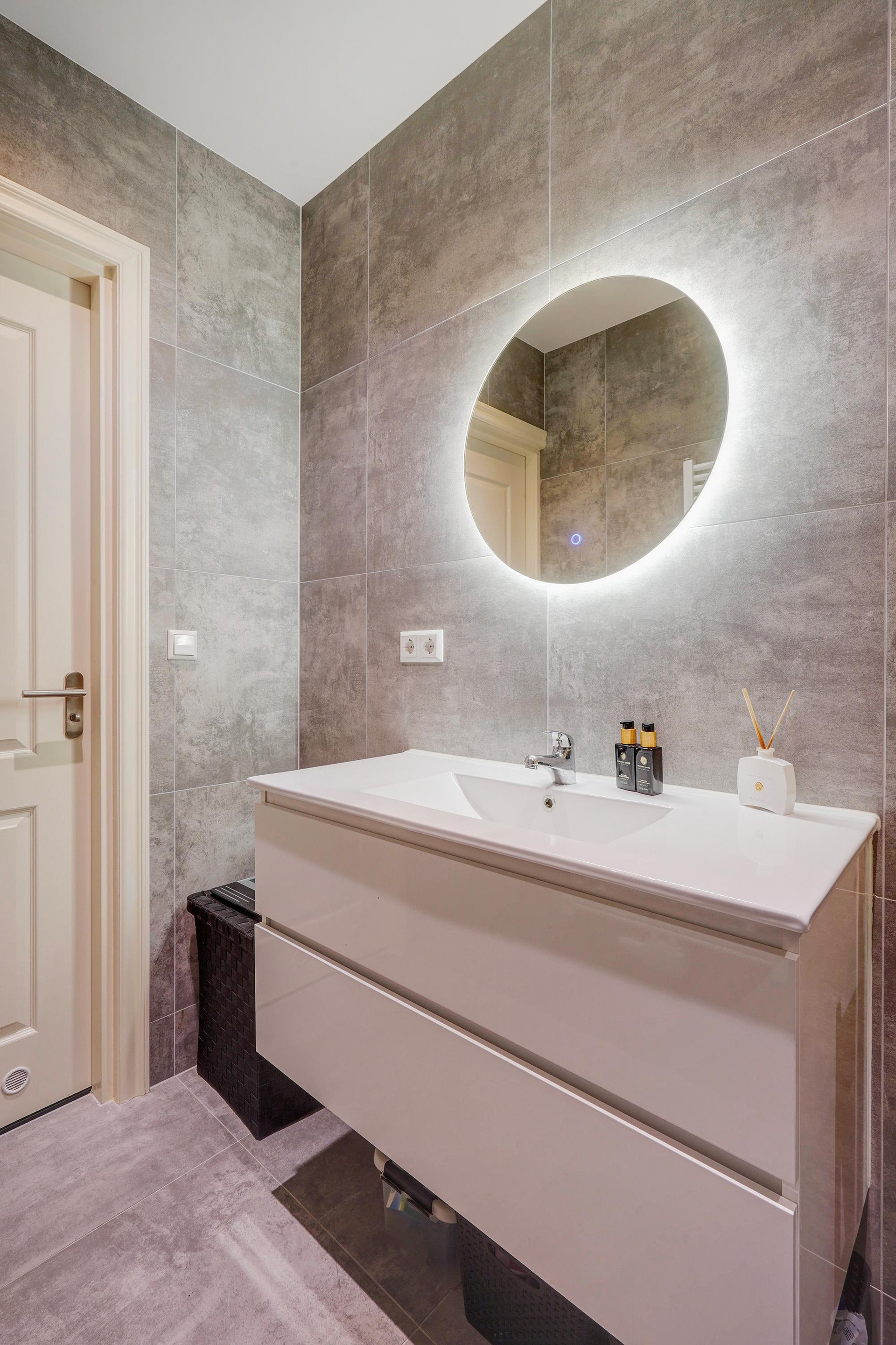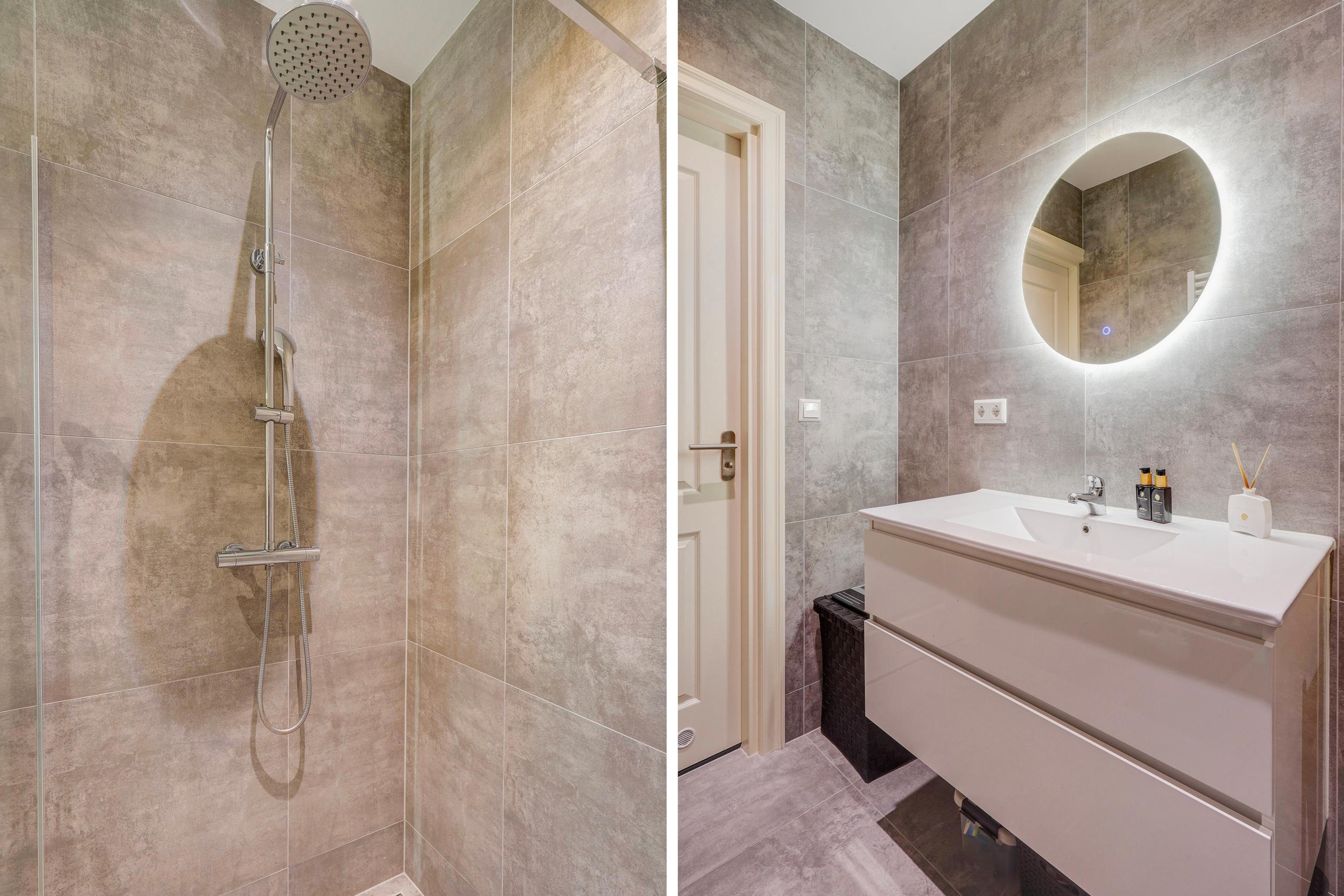 Through the entrance on the ground floor, you reach the first floor where there is a spacious separate bedroom. Via the staircase, you reach the second floor. Landing with entrance to the apartment. Hallway with access to a modern toilet with a small sink and a spacious, bright living room. From the living room, you enter the semi-open kitchen with new kitchen appliances and a separate storage and laundry closet. From the living room, you also access a sunny and spacious roof terrace (south-east). A second hallway from the living room provides access to 2 bedrooms and a modern bathroom with a walk-in shower, vanity unit, and towel radiator.