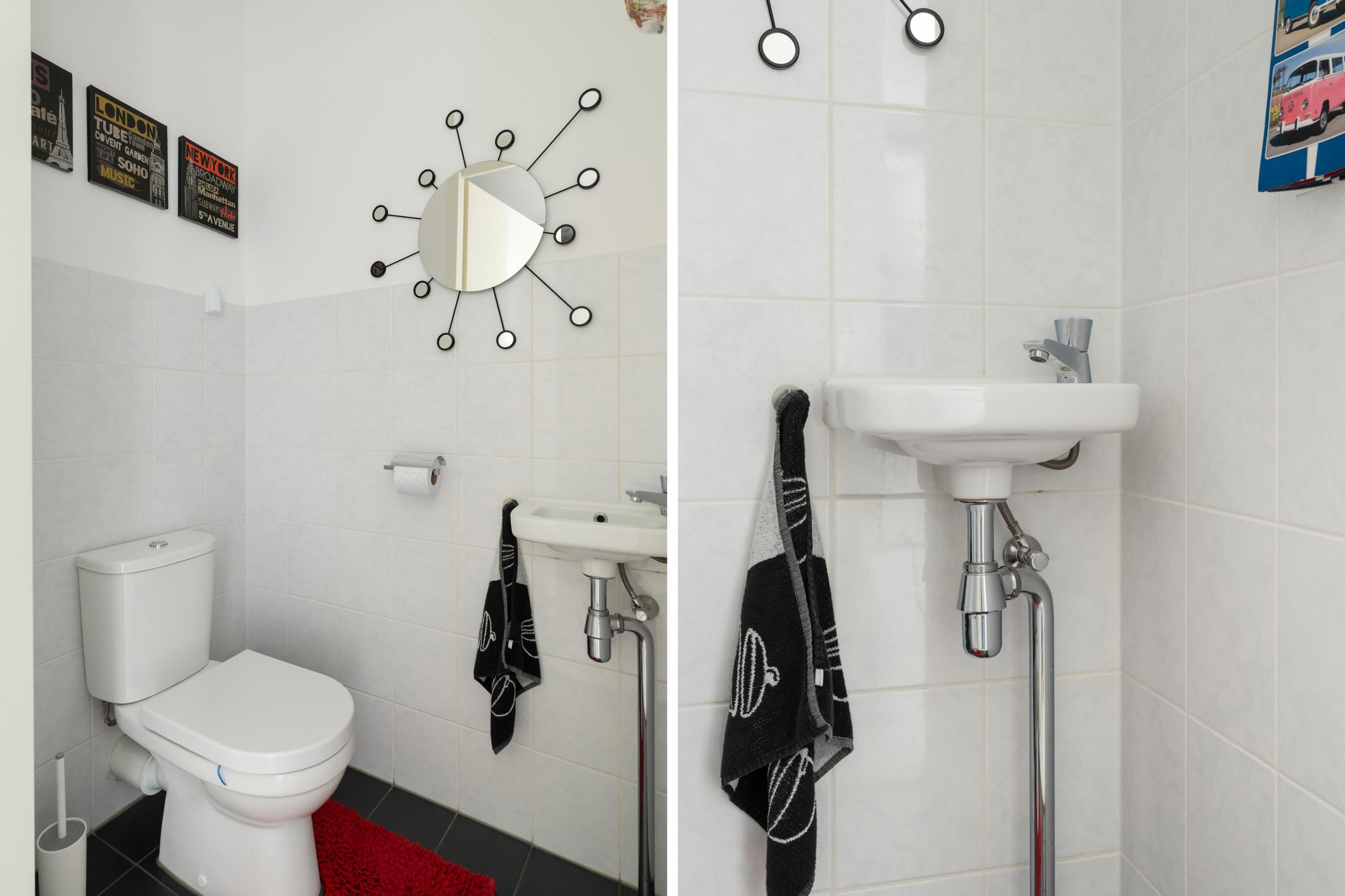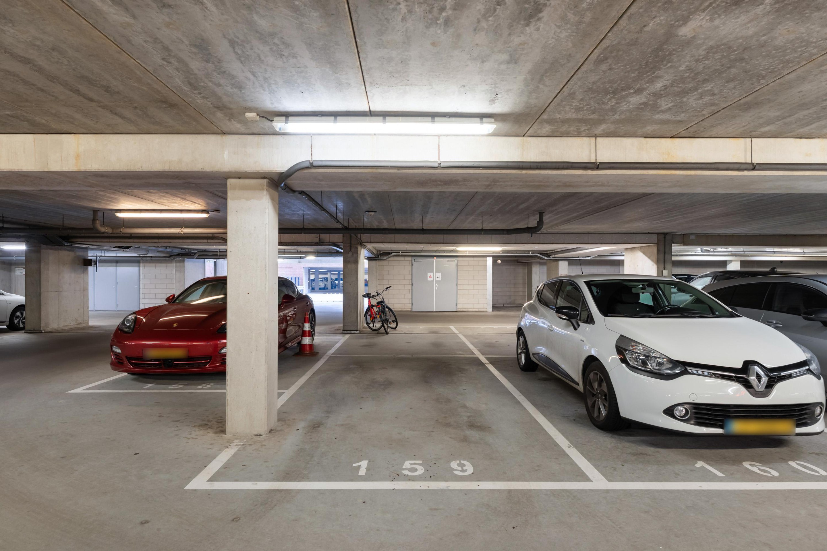 In de hal vind je een separate toiletruimte met fonteintje en een praktische aparte wasruimte. Bij het appartement hoort bovendien een vaste parkeerplaats op de eerste verdieping van het complex en een eigen berging met elektra, ideaal voor fietsen en extra opslag.
