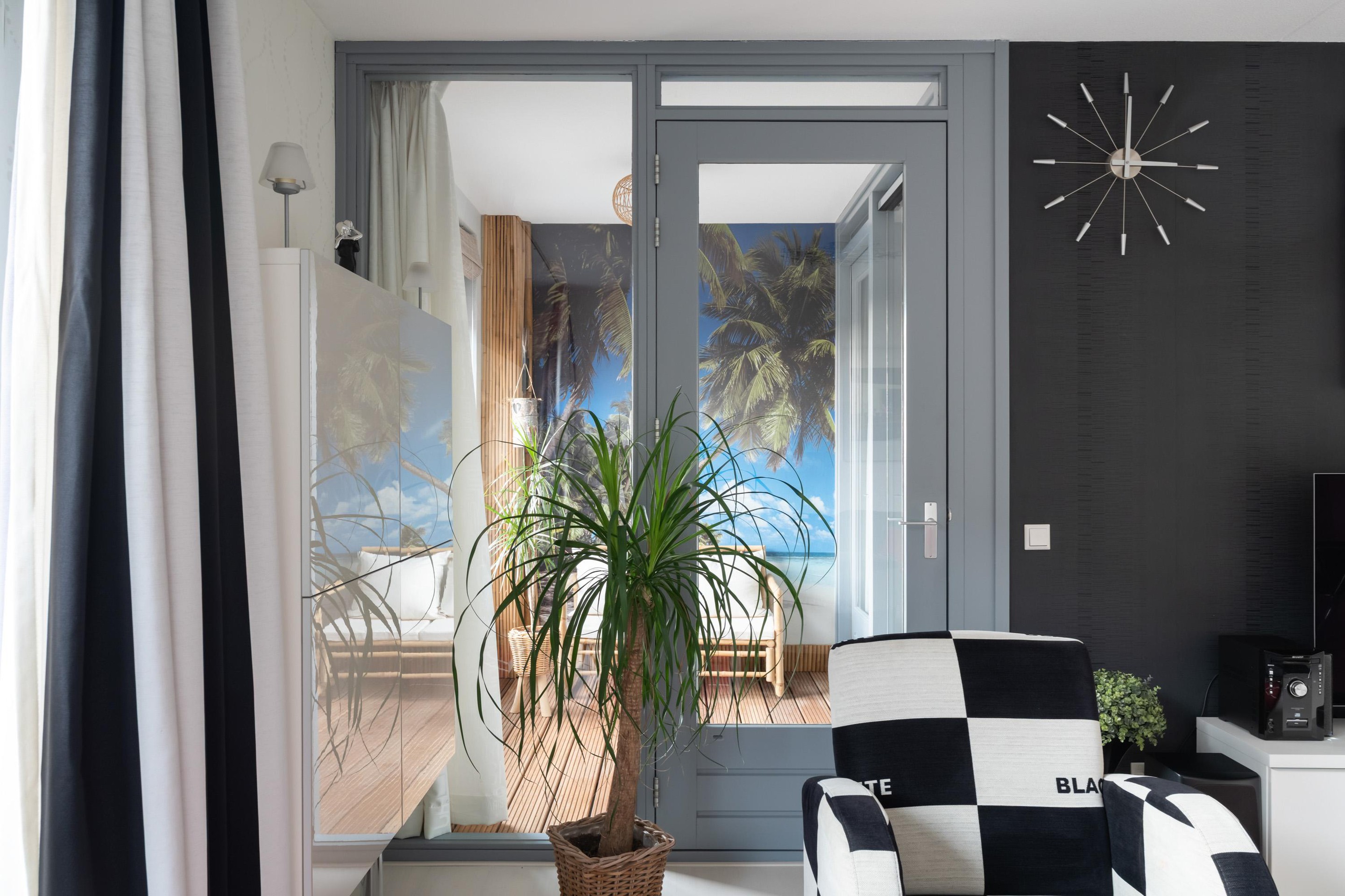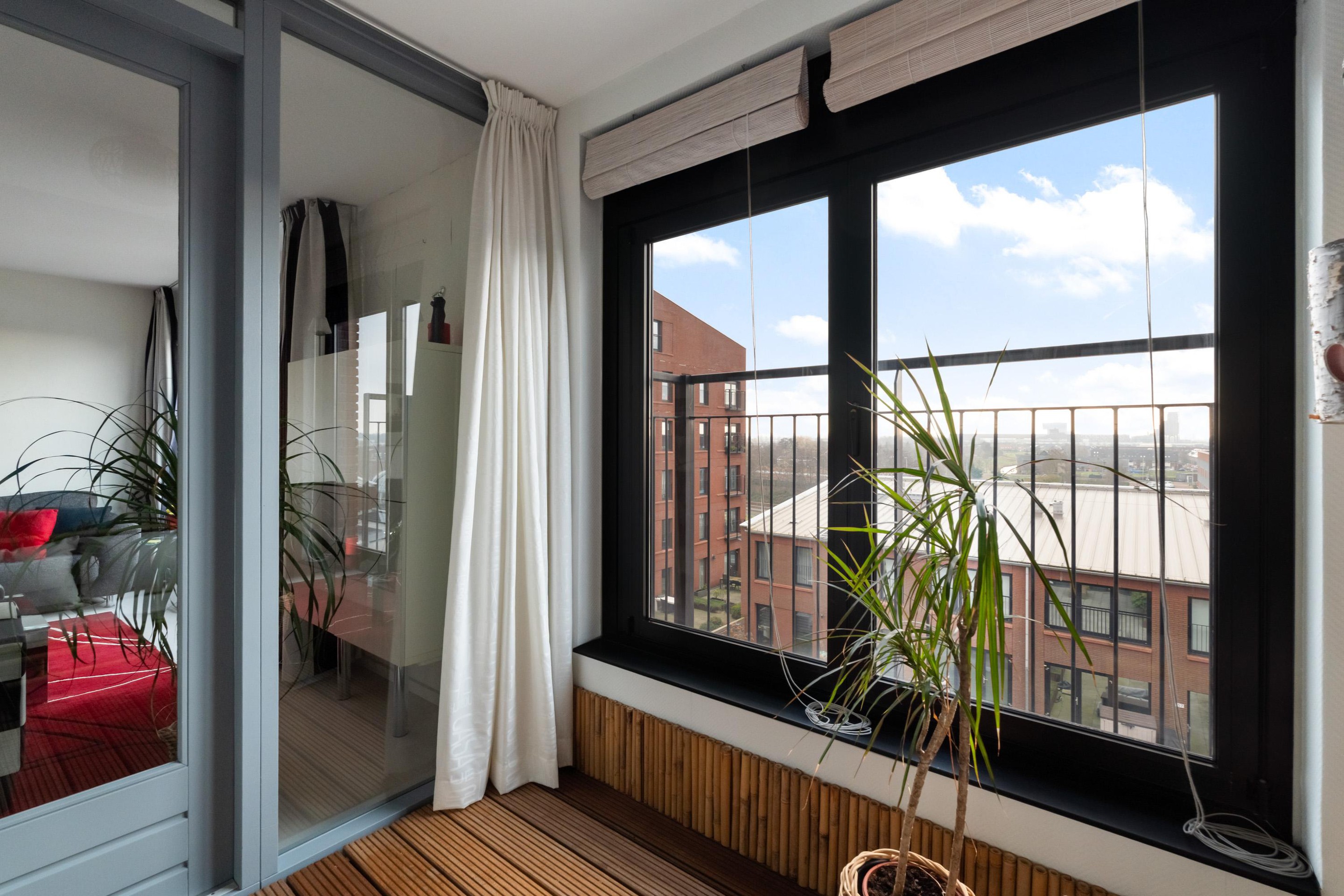 Aansluitend aan de woonkamer ligt het inpandige balkon, dat is afgesloten met glas. Hierdoor kun je hier het hele jaar door comfortabel zitten. Deze ruimte is multifunctioneel en kan uitstekend dienen als verlengstuk van de woonkamer, maar ook als werkplek, hobbyruimte of zelfs als derde slaapkamer. Dankzij de grote glaspartijen blijft het uitzicht hier een echte blikvanger.