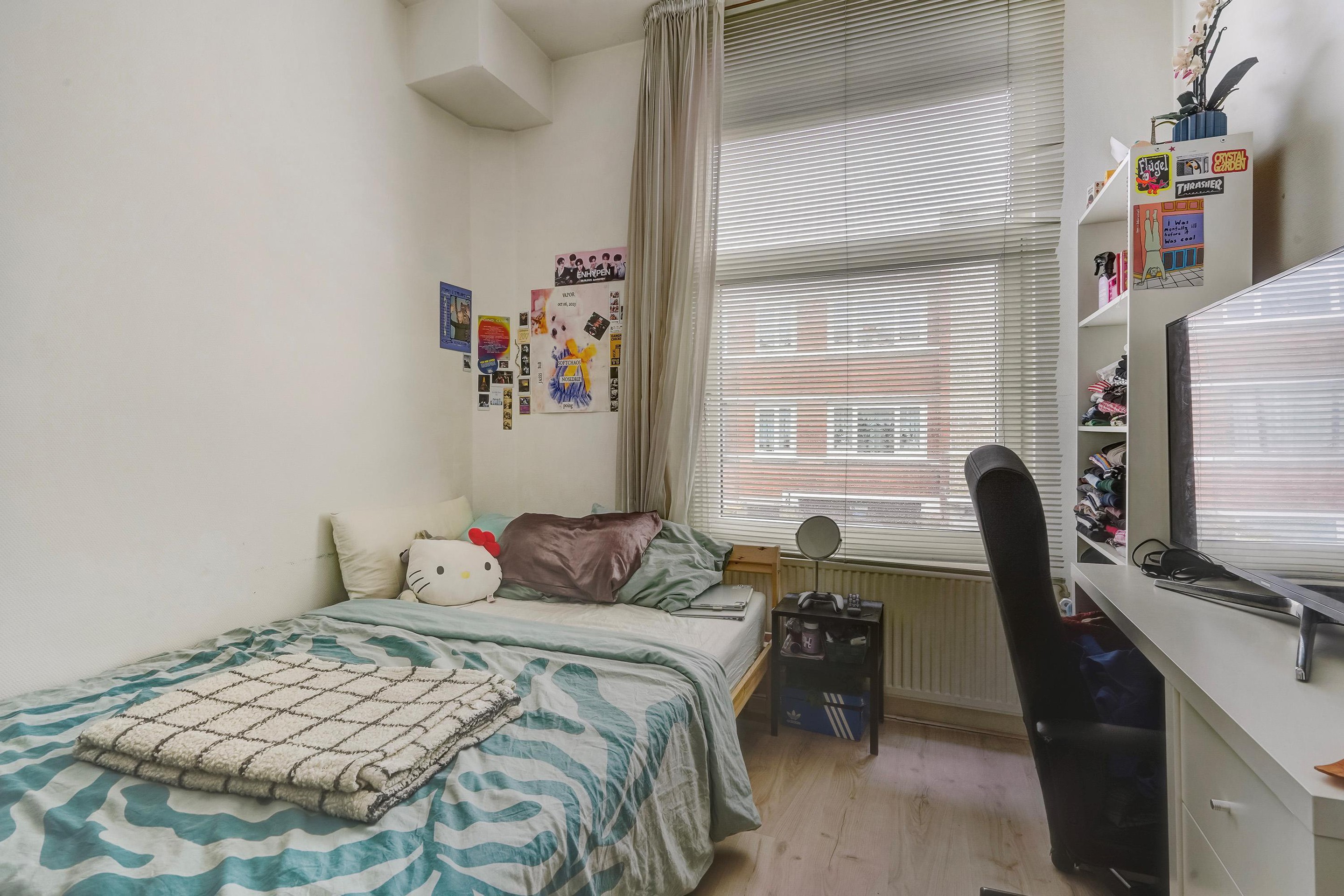 De tussenkamer beschikt over een wasmachineaansluiting en is ideaal als werk-, studeer- of logeerkamer.