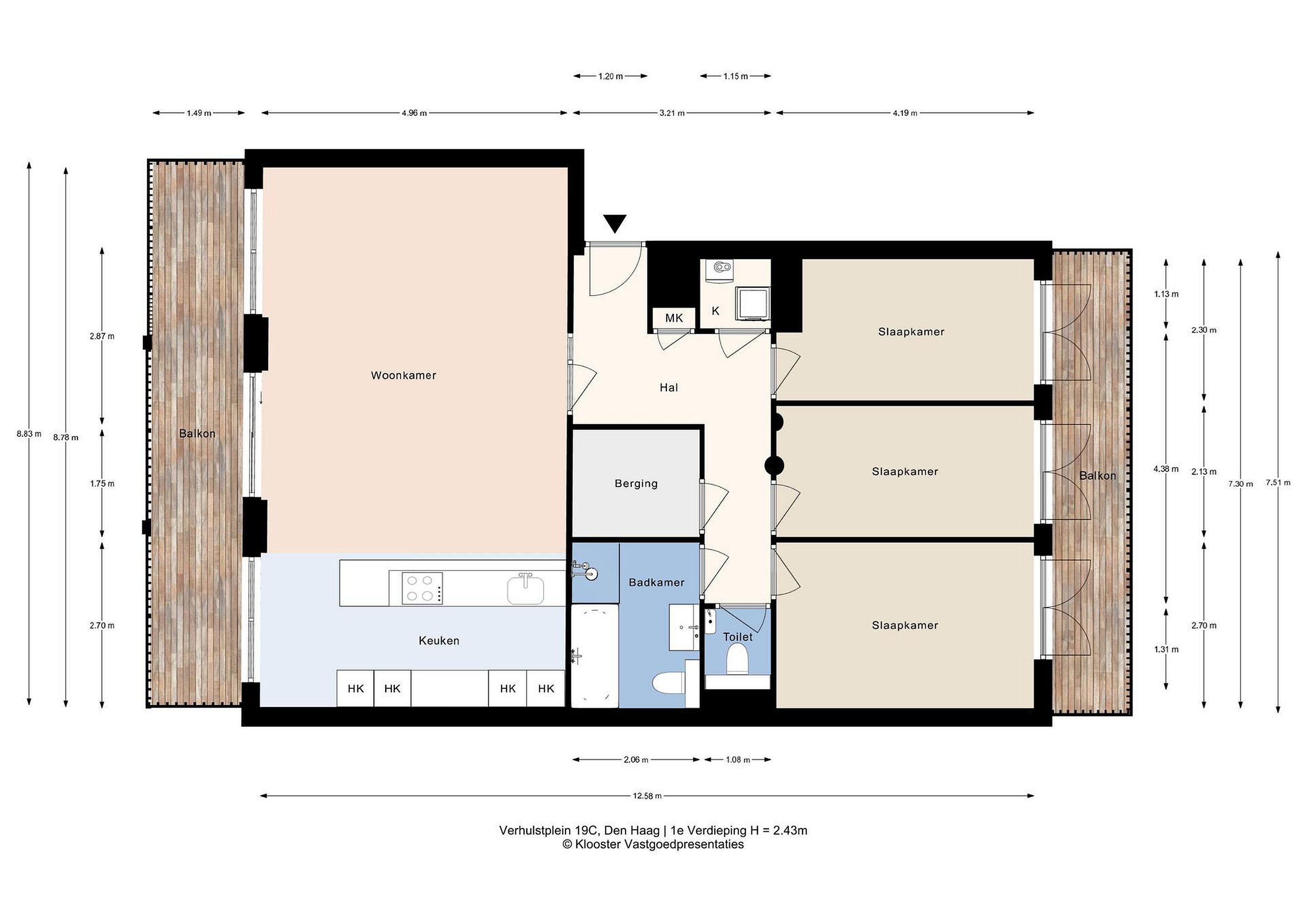 - 2 balkons (voor- en achterzijde)