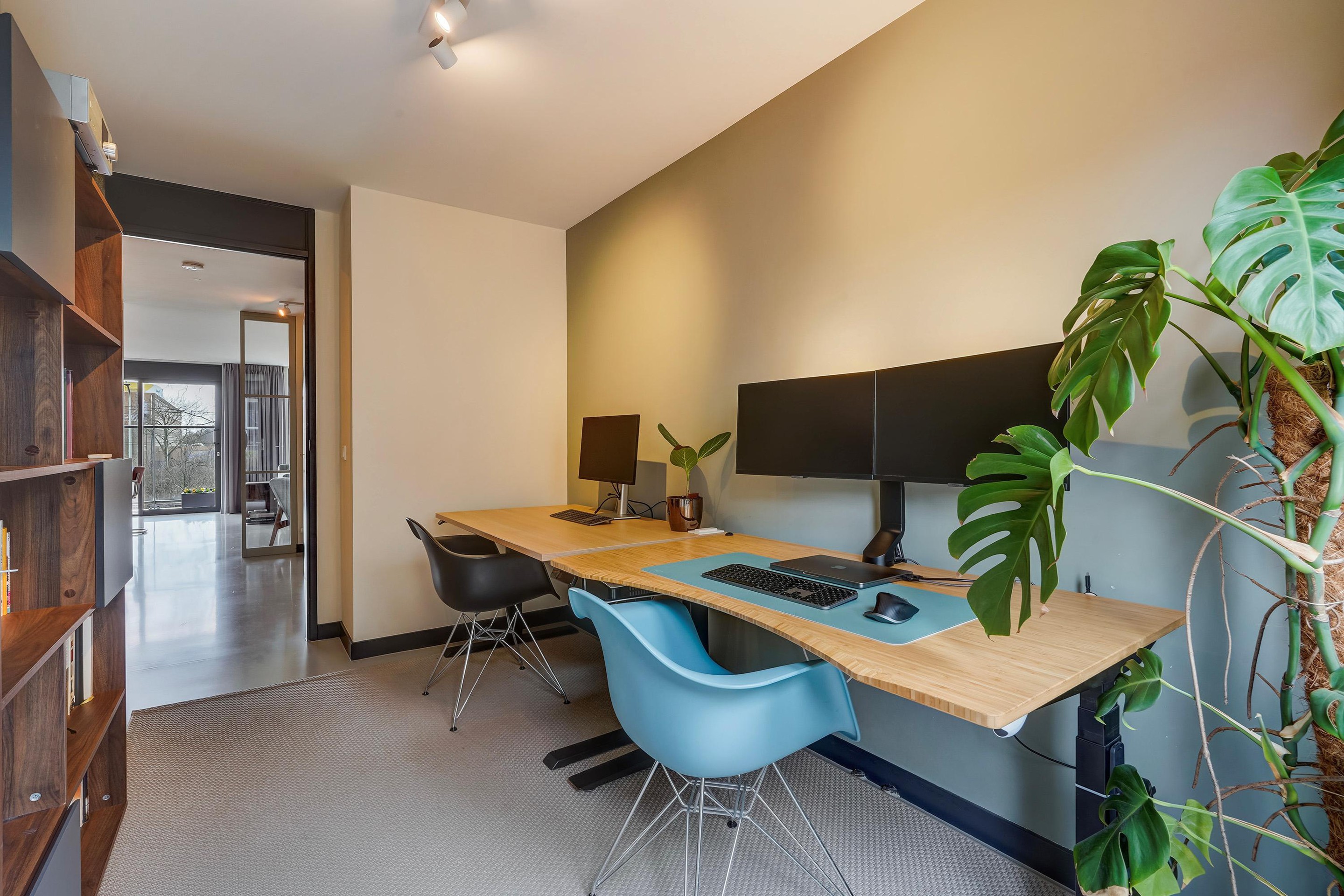 Aan de achterzijde bevinden zich drie slaapkamers. De hoofdslaapkamer biedt toegang tot het tweede balkon met ochtendzon. De overige twee kamers zijn uitstekend geschikt als kinder-, werk- of logeerkamer en hebben eveneens toegang tot het tweede balkon.