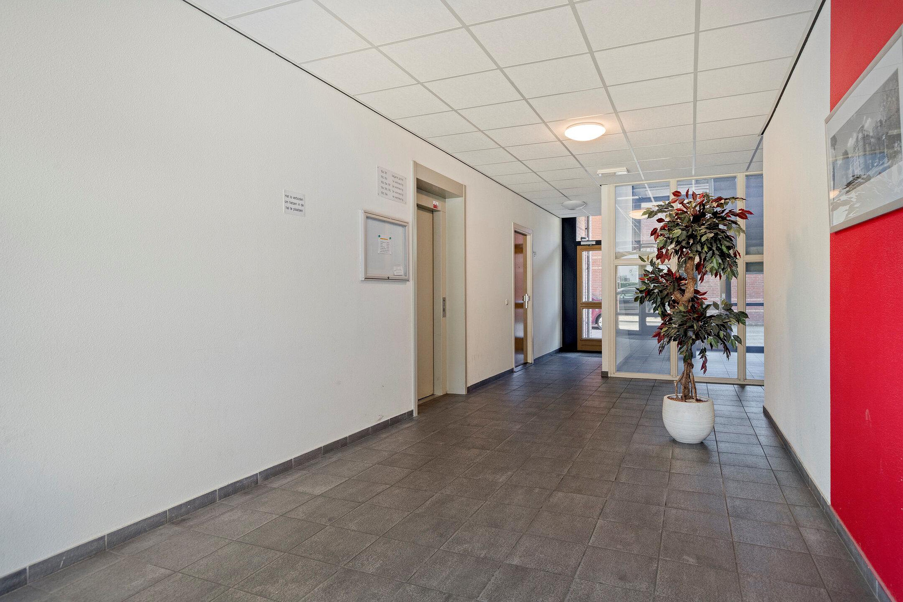 Afgesloten entree met videofoon, brievenbussen, liftinstallatie en toegang tot de bergingen.