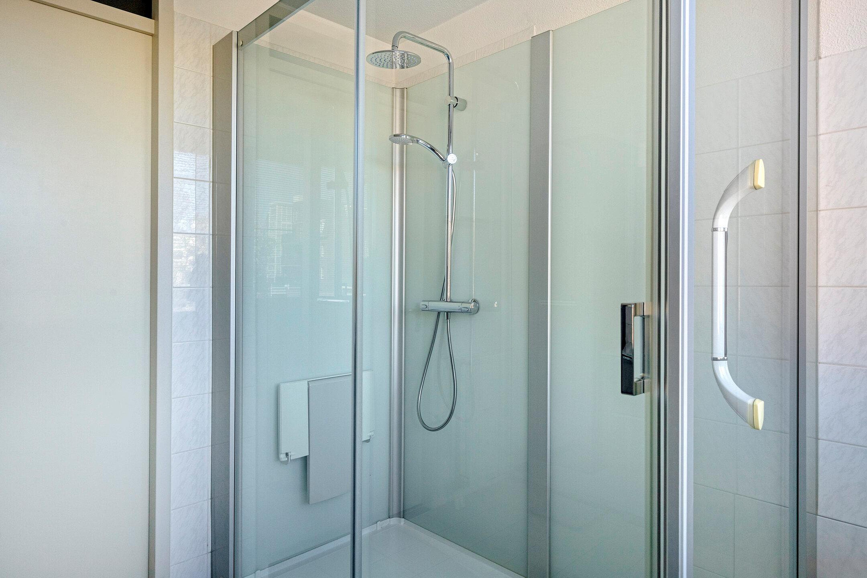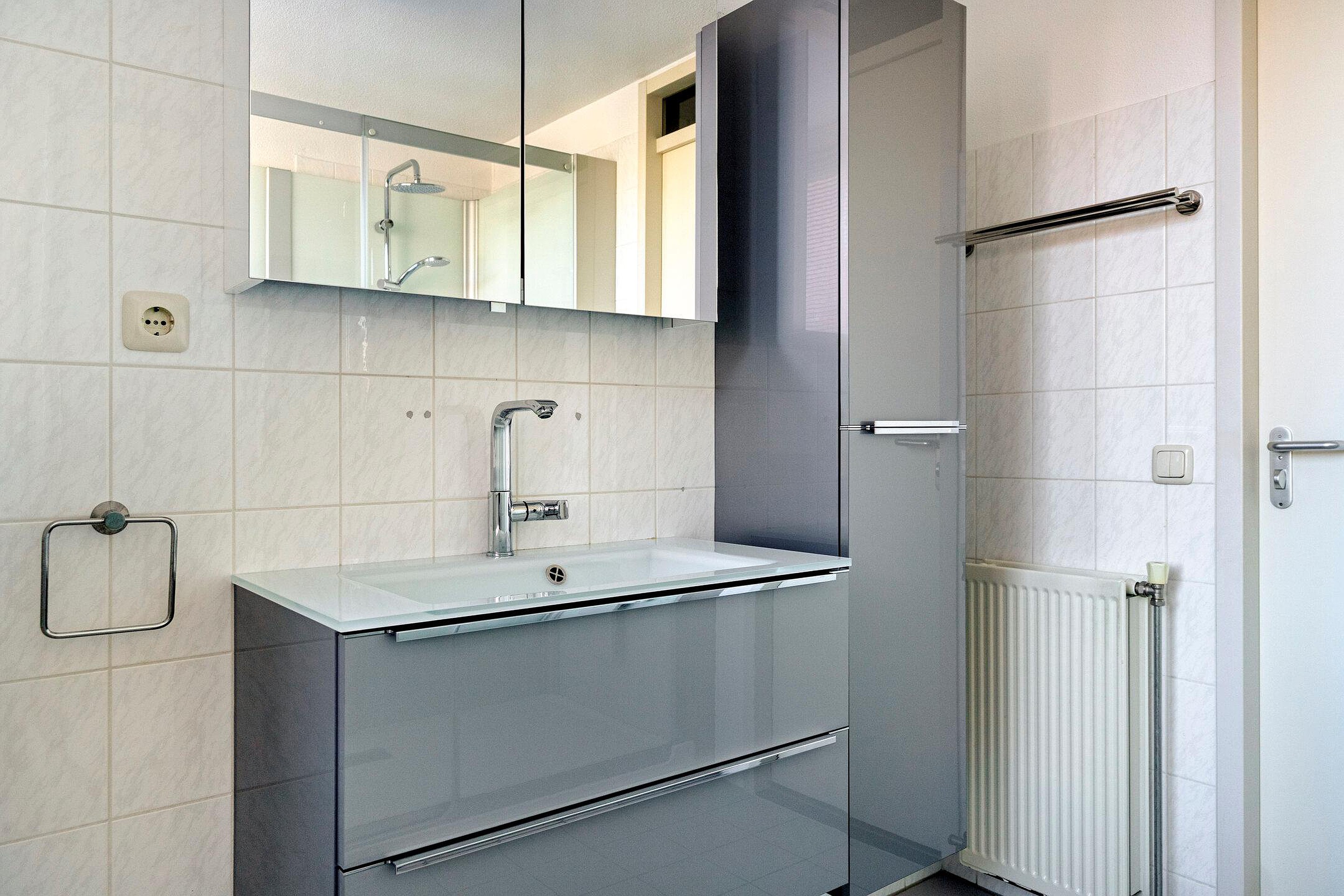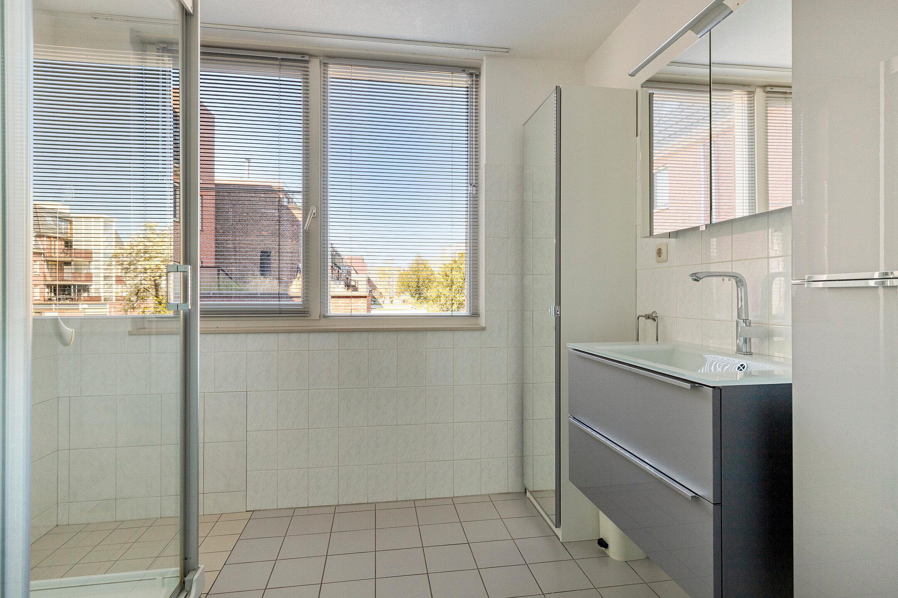Er zijn twee ruime slaapkamers van ca. 15 m2 en ca. 13 m2. De badkamer is voorzien van een grote inloopdouche en een wastafelmeubel. Er is een praktische CV - / wasruimte met opstelling van de CV combiketel, de WTW installatie en een aansluiting voor wasmachine- en droger.