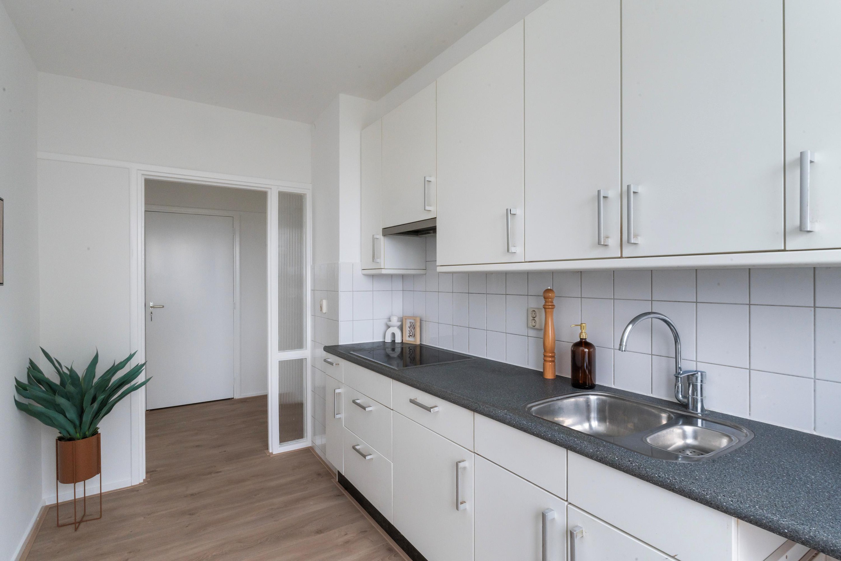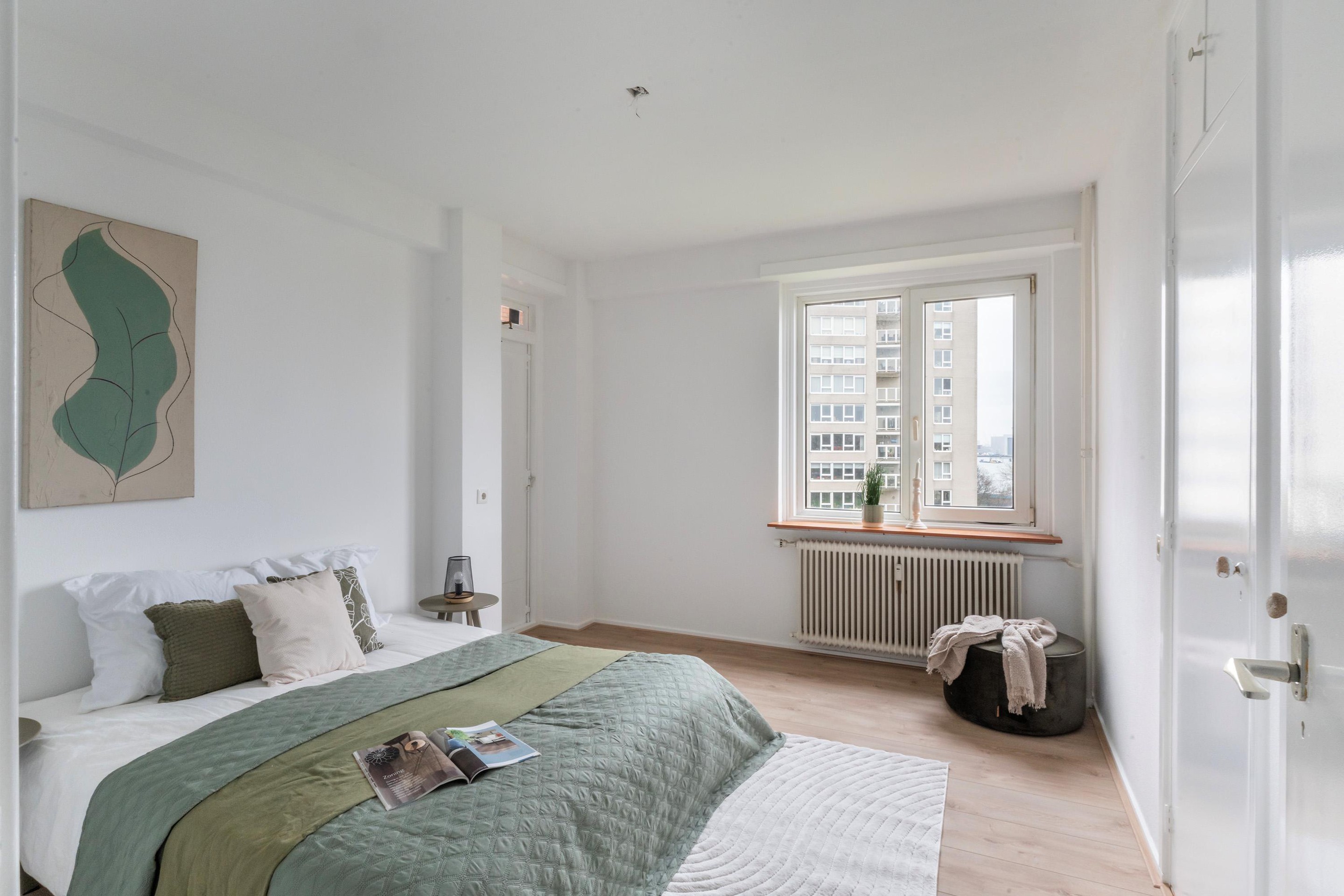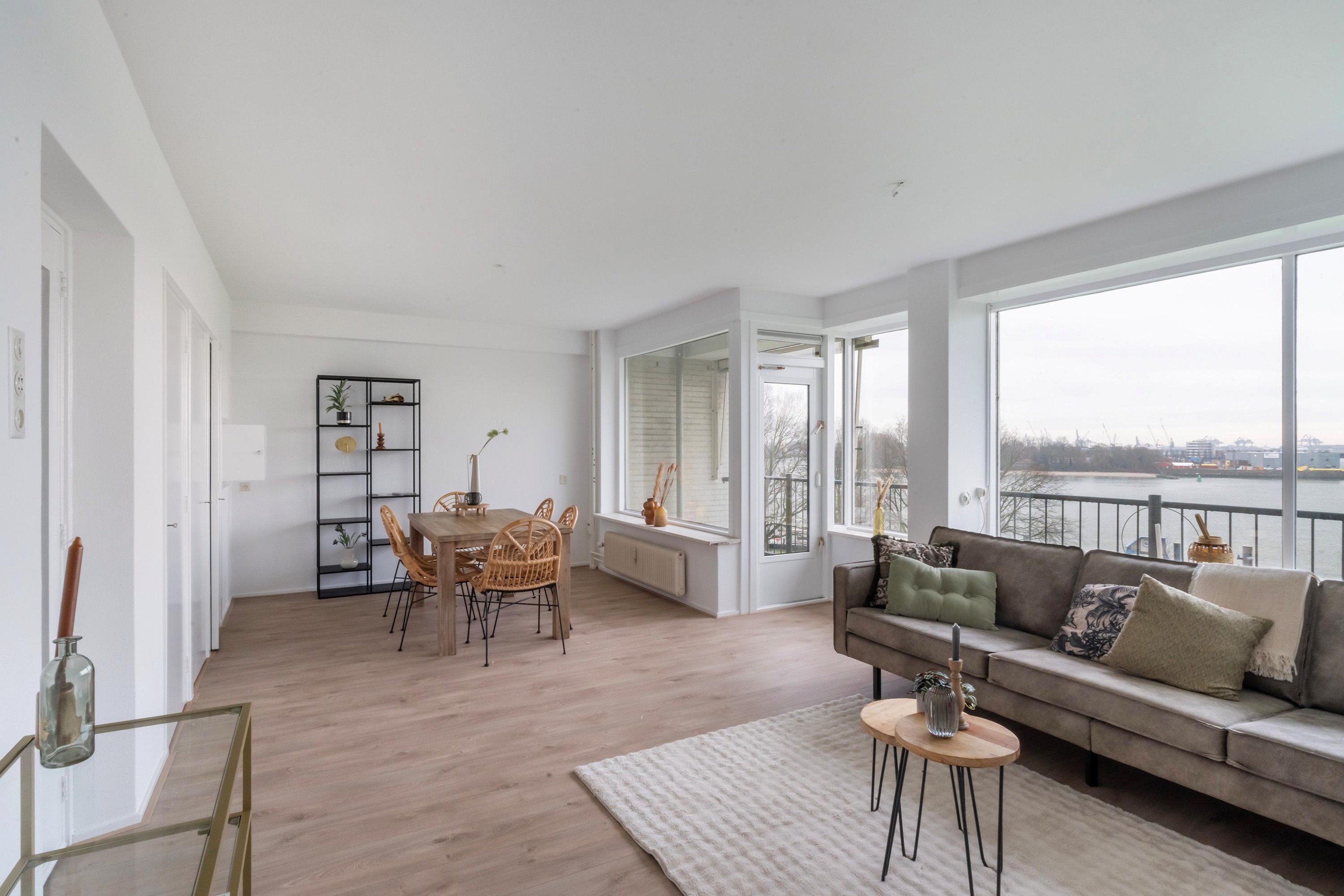 U ervaart hier elke dag ruimte, licht en rust. Deze 3-kamerwoning van 90m2 op de 5e verdieping ligt in een van de geliefde Panoramaflats aan de Havendijk in Schiedam. Het balkon vangt volop zon en geeft vrij zicht op het groene Park Maasboulevard met erachter het water van de Nieuwe Maas.