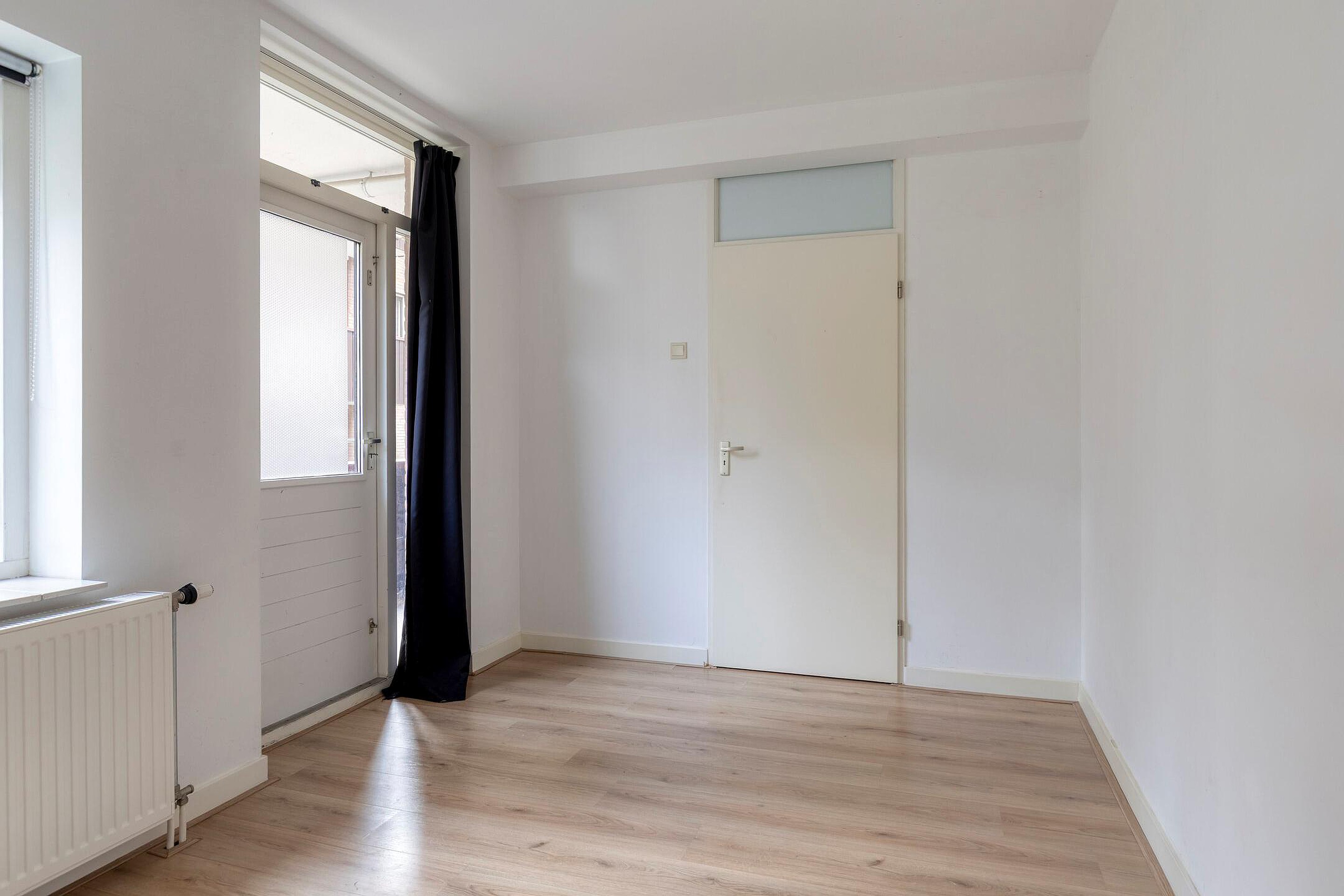 De slaapkamer ligt aan de achterzijde en geeft toegang tot het balkon aan de binnentuin – een ideale plek om te ontspannen aan het einde van de dag.
