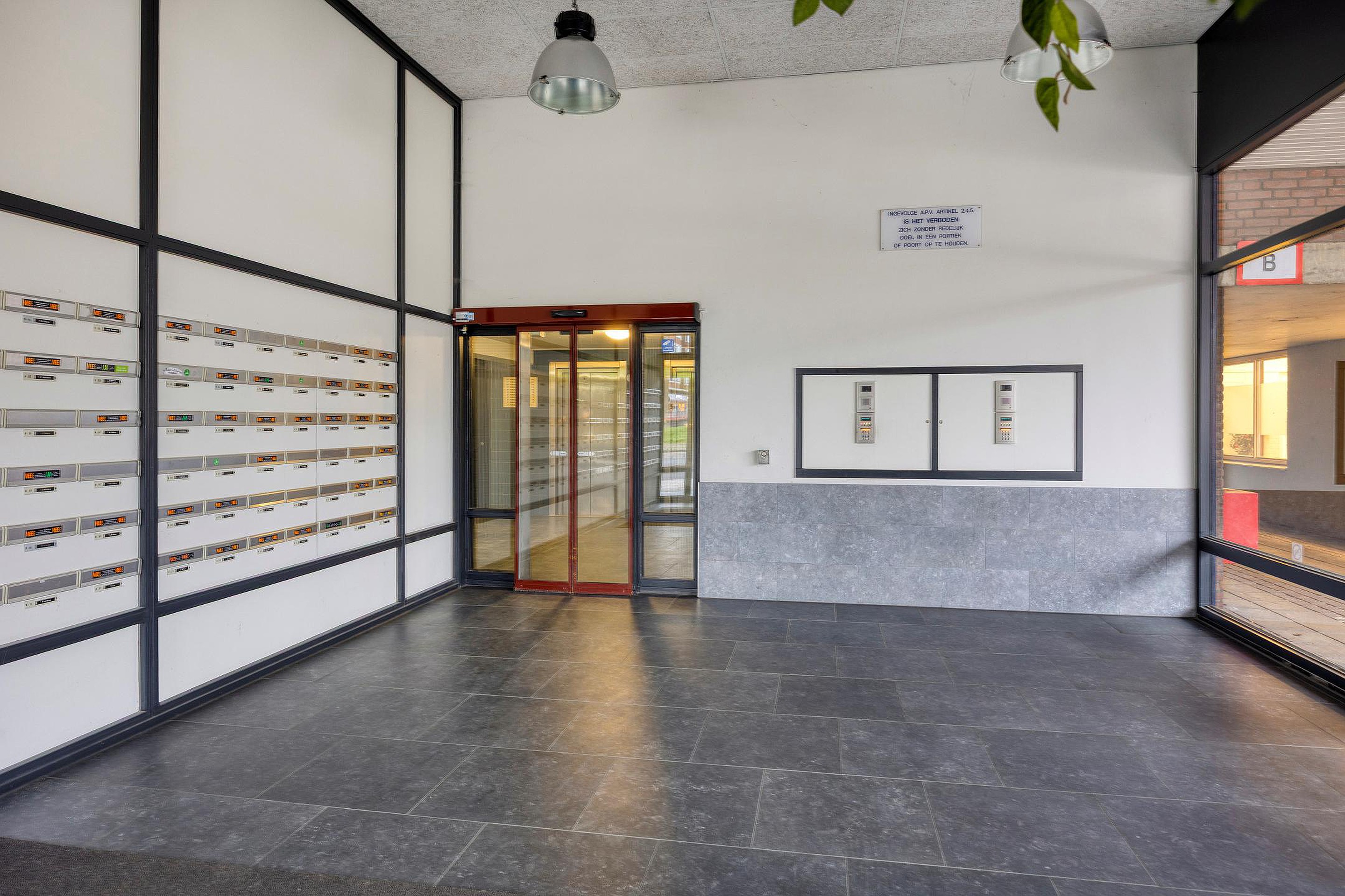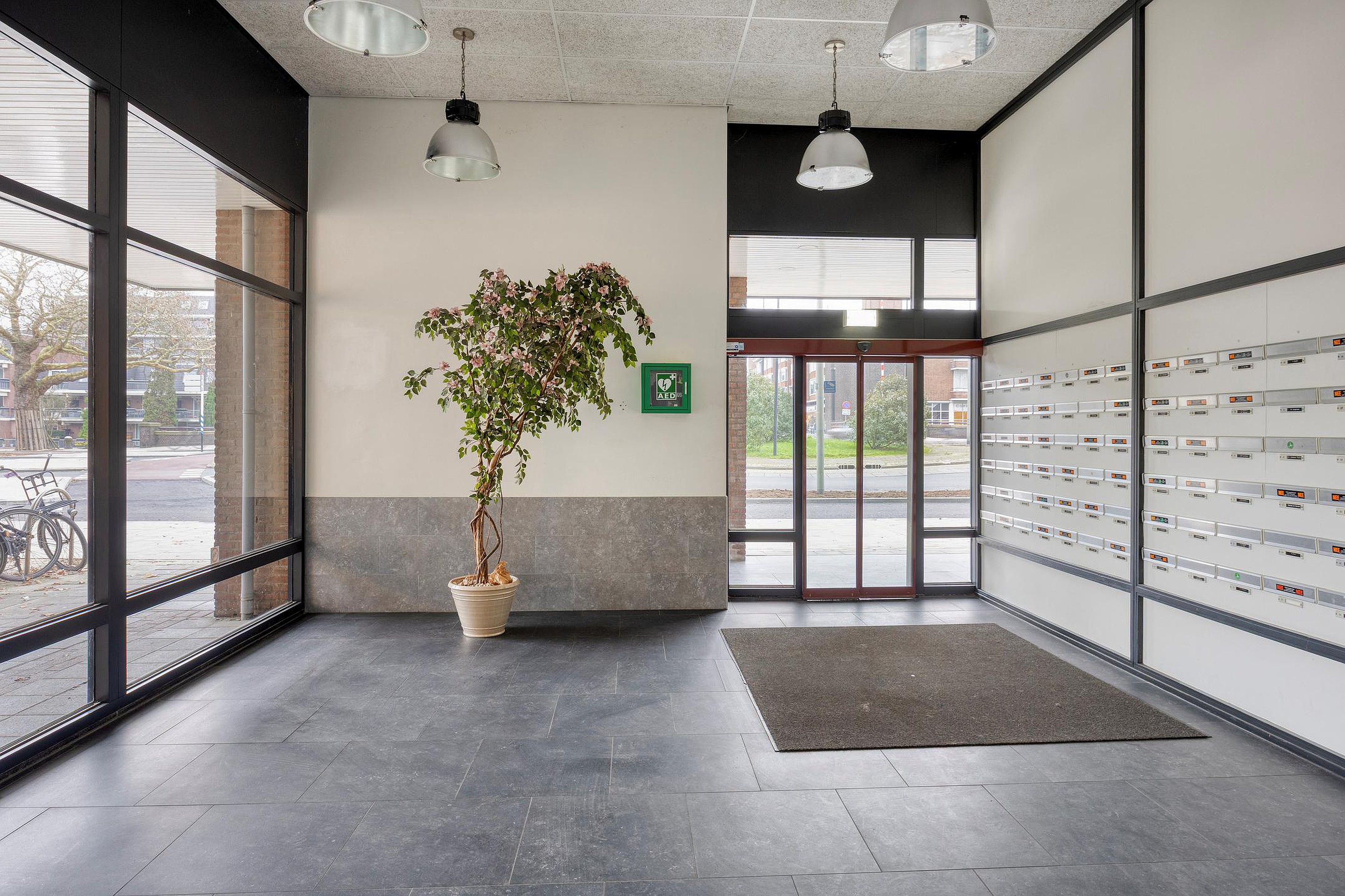 Verzorgde en afgesloten entree met bellentableau, brievenbussen, liftinstallatie, trappenhuis en toegang tot de bergingen en garage.