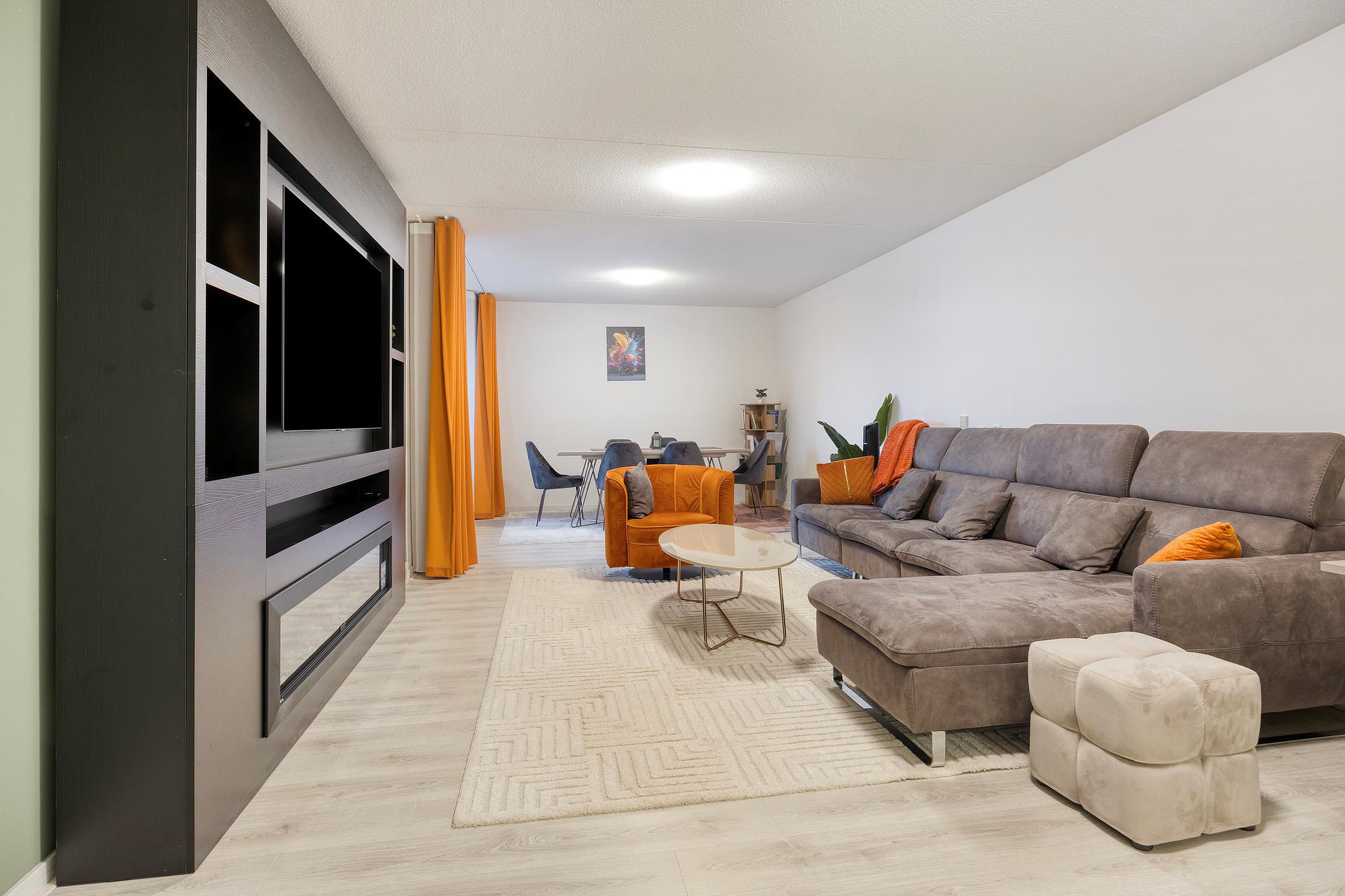 Bergkast/CV-ruimte met HR-combiketel (Intergas / bouwjaar 2017). Riante woonkamer (ca. 36 m2) met strak afgewerkte wanden en plafond en een mooie laminaatvloer.