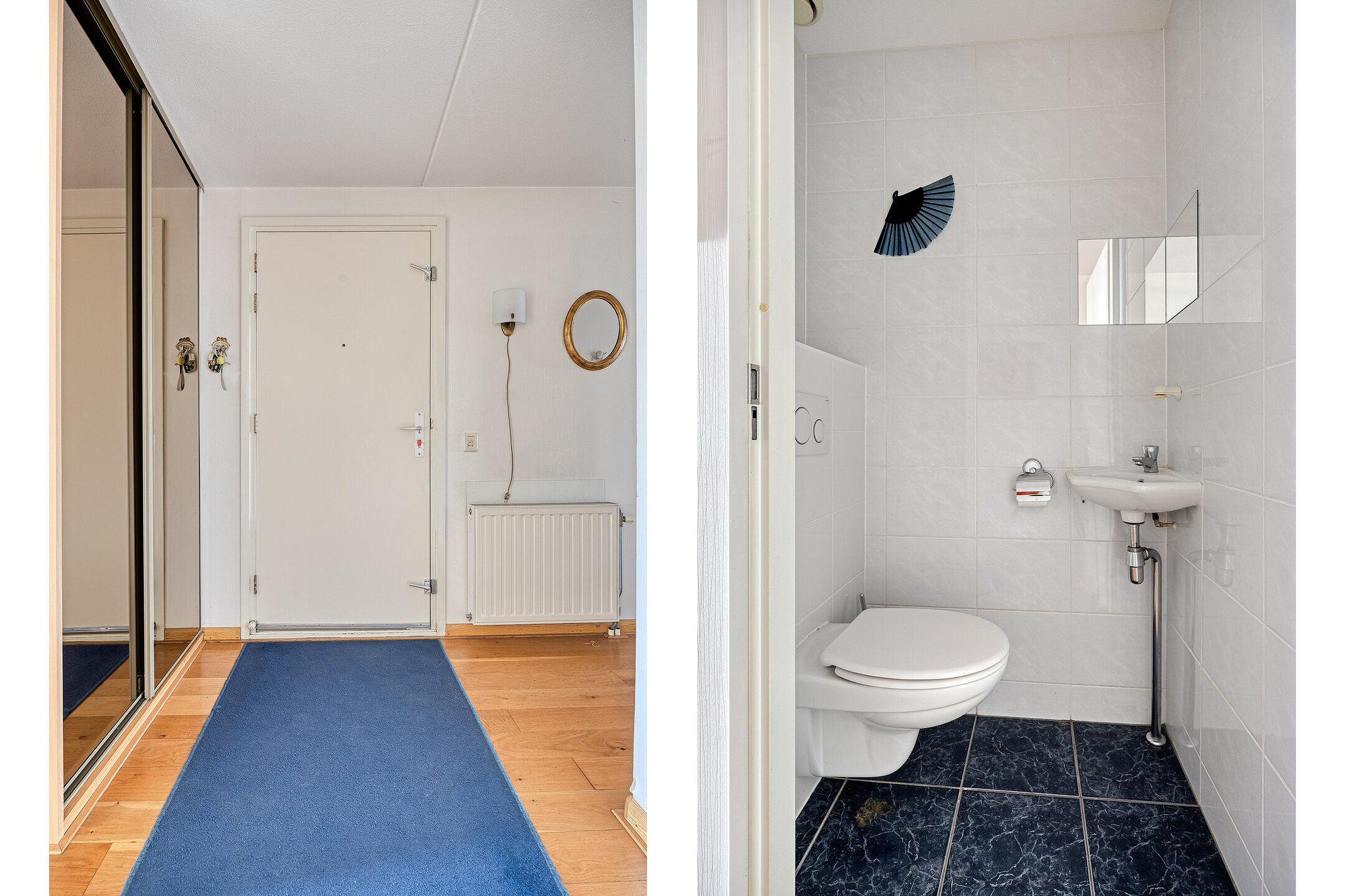 Entree, hal met toilet, CV ruimte en toegang de woonkamer, 2 slaapkamers en badkamer.