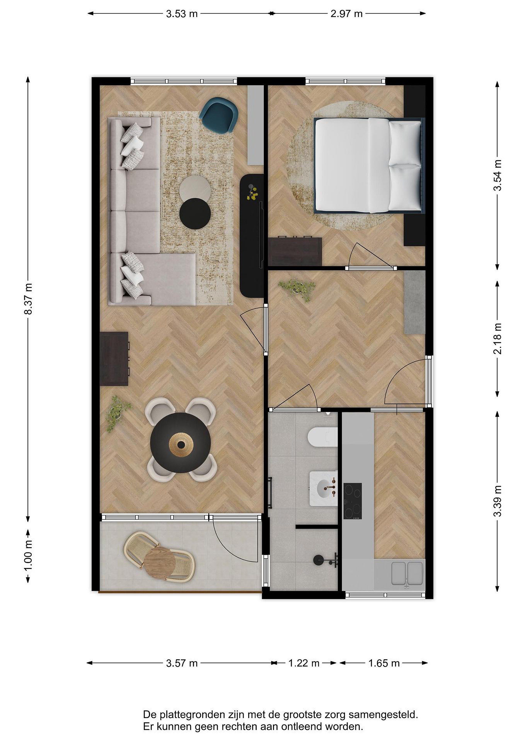 Alle verstrekte informatie moet beschouwd worden als een uitnodiging tot het doen van een bod of om in onderhandeling te treden. Er kunnen geen rechten worden ontleend aan deze woninginformatie.