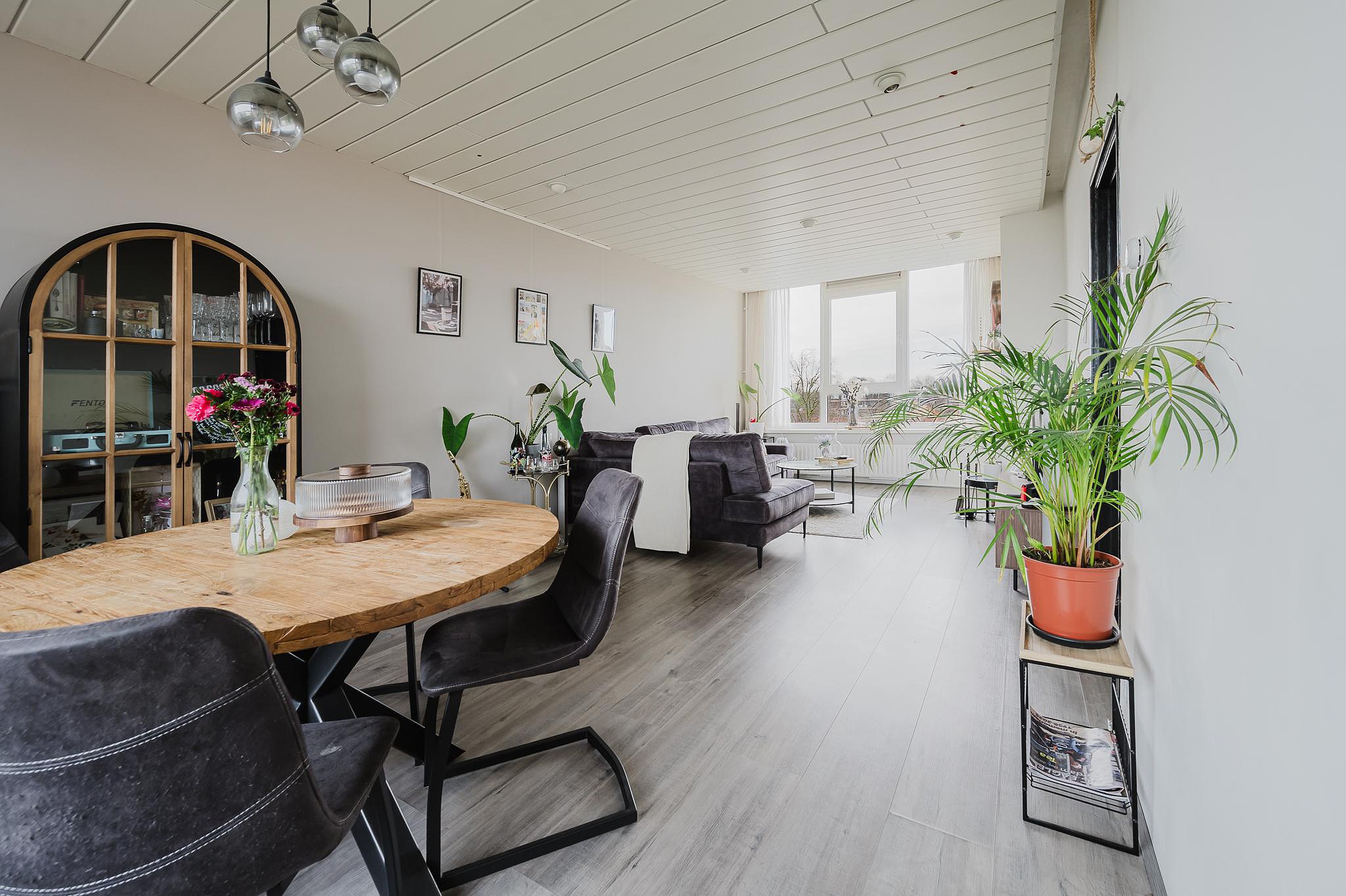 De woonkamer is licht en ruim dankzij de doorzon-indeling en grote raampartijen. Vanuit de woonkamer heb je toegang tot het overkapte balkon op het oosten.