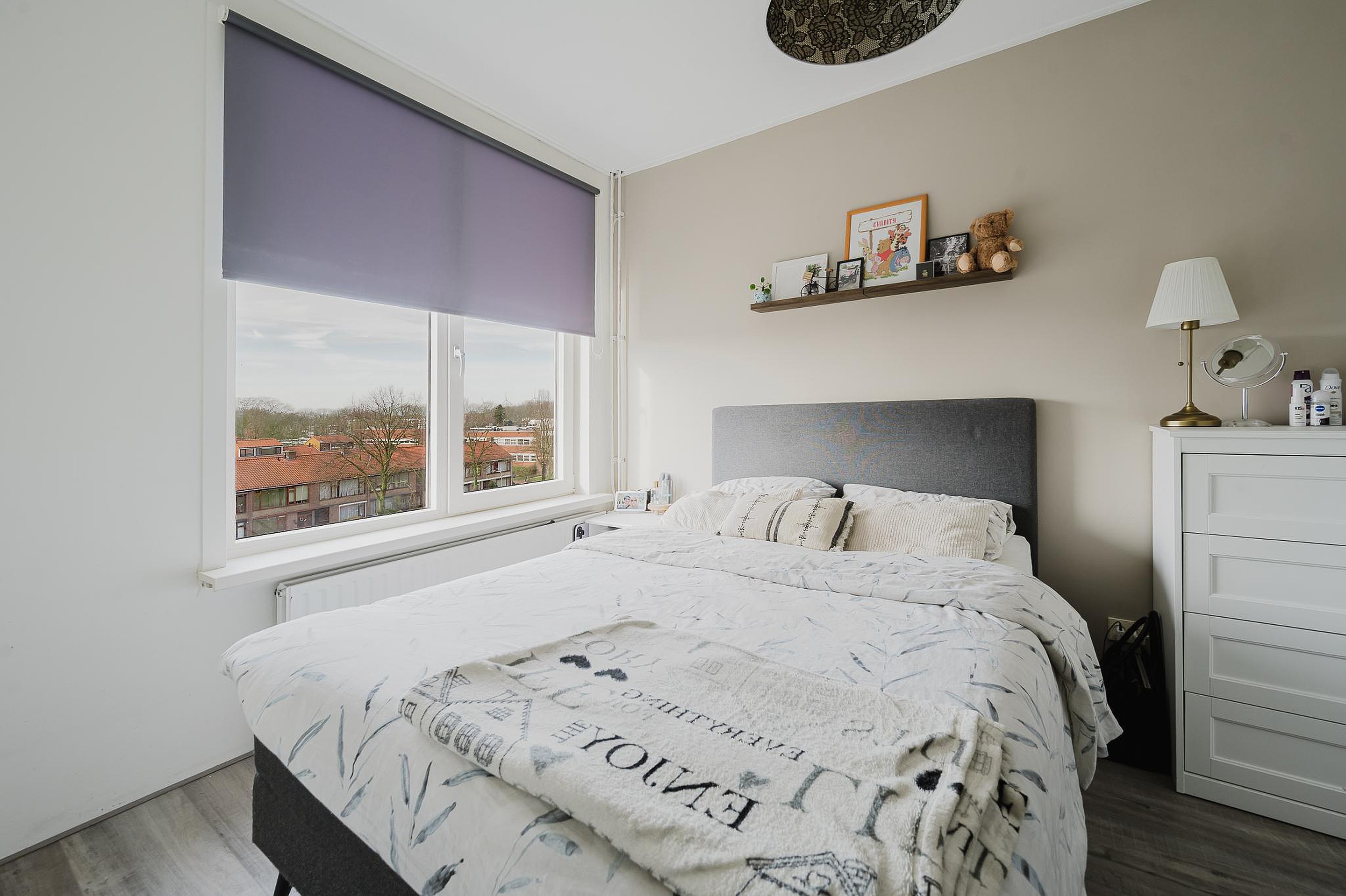 De slaapkamer is eveneens netjes afgewerkt en beschikt over een groot raam waardoor er veel daglicht binnenvalt. En er is mogelijkheid tot het creëren van een tweede slaapkamer. Daarnaast heb je de beschikking over een berging in de onderbouw.
