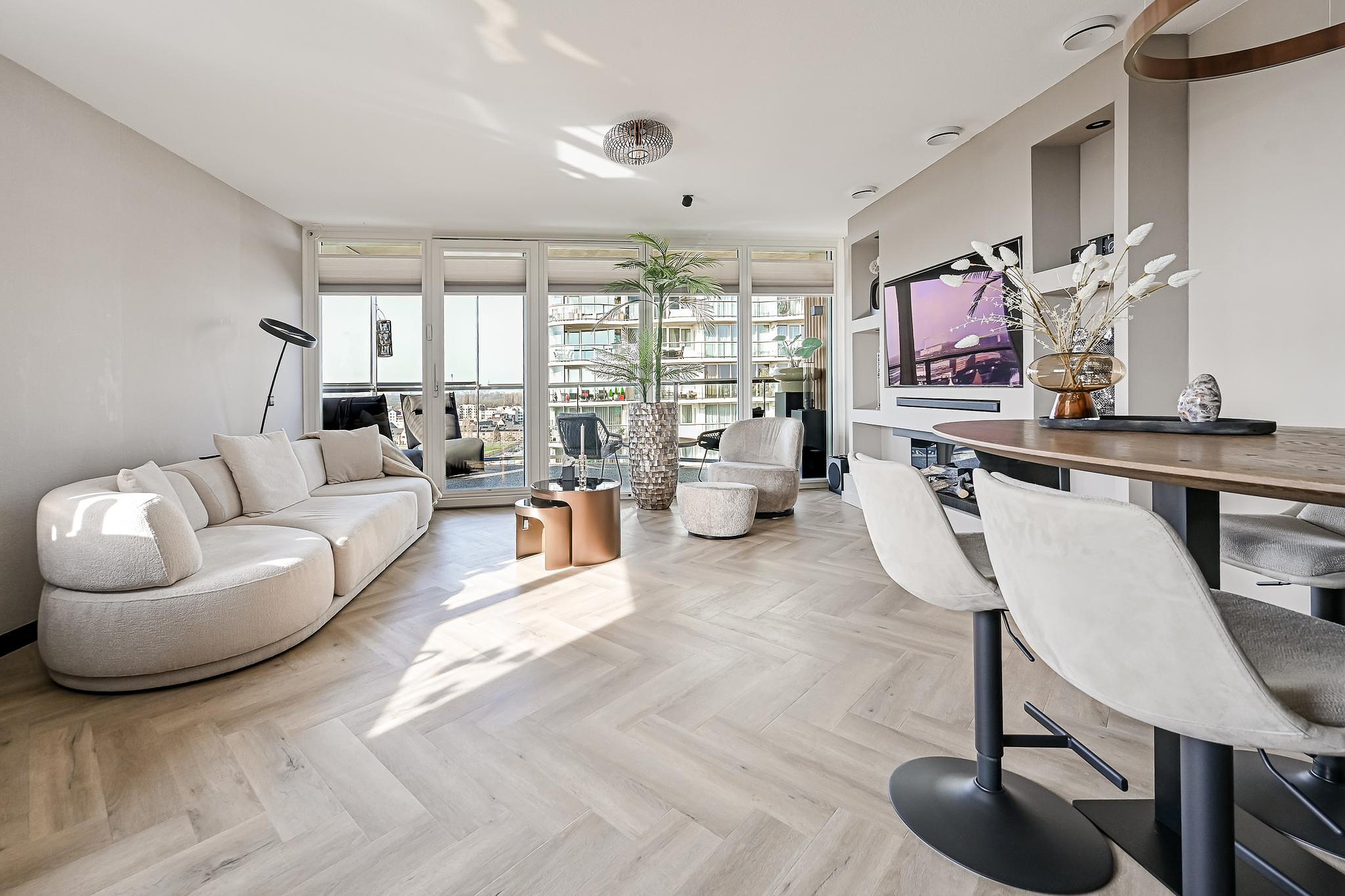 Het volledige appartement is afgewerkt met een luxe visgraat pvc-vloer voorzien van vloerverwarming én -koeling, wat zorgt voor optimaal comfort in zowel de winter als de zomer.