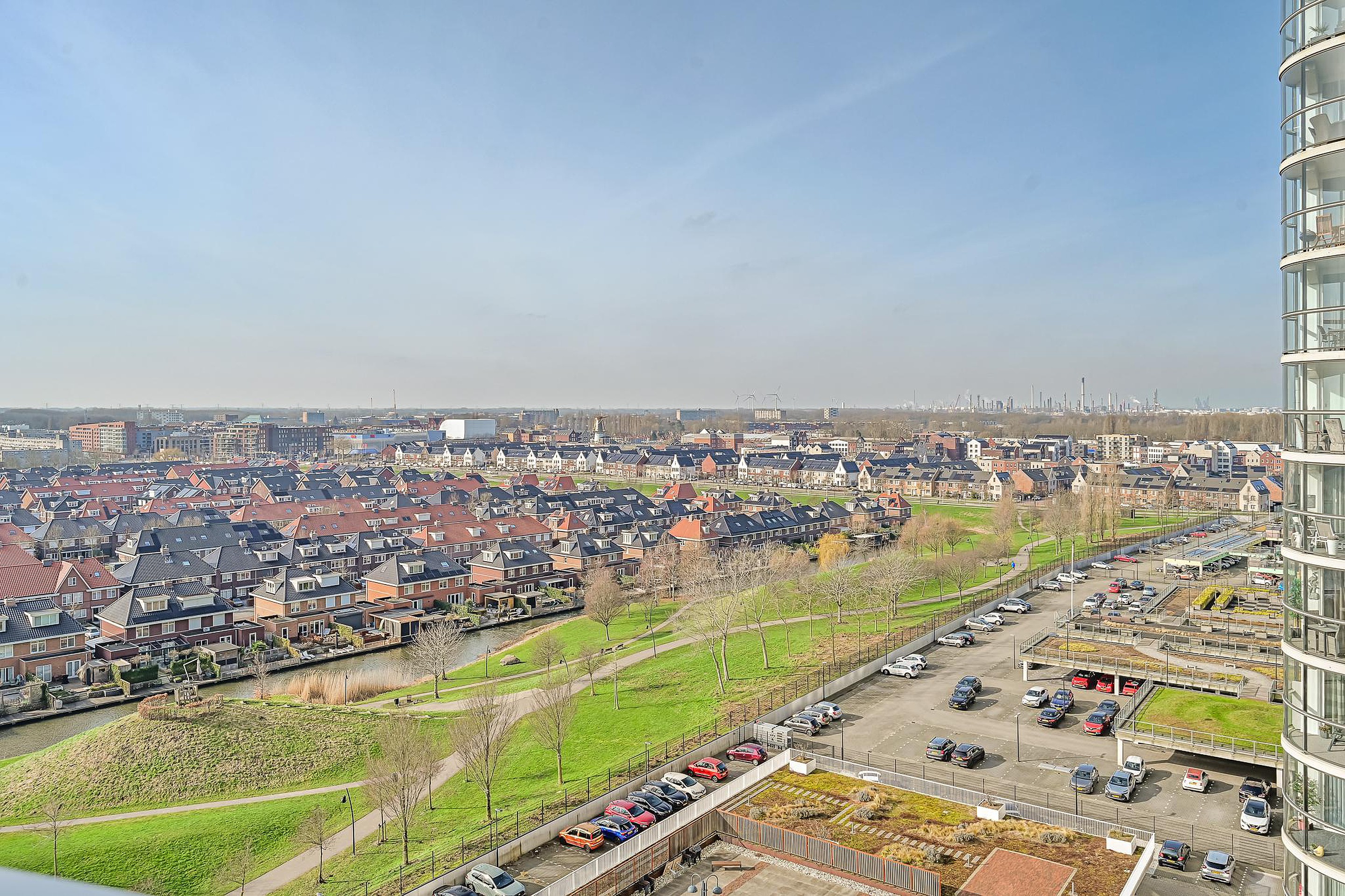 Word elke dag wakker met een panoramisch uitzicht over de skyline van Spijkenisse én de indrukwekkende Maas aan je voeten.